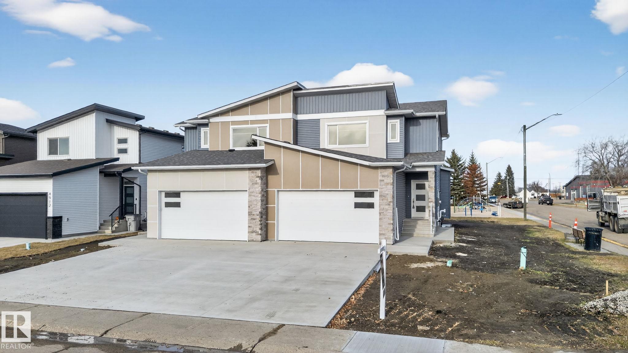 Welcome home to this beautiful new construction half duplex in Gibbons,the ideal place for first-time buyers or young families to put down roots.From the moment you walk in, you?ll love the bright, open-concept layout designed for real life.From family dinners in the modern kitchen to cozy movie nights by the gas fireplace.The kitchen features sleek finishes and plenty of space to cook and connect. Upstairs, you?ll find three generous bedrooms, including a dreamy primary suite with a spacious ensuite bathroom and the convenience of laundry right down the hall.No more trips up and down stairs! But the real showstopper? Step right off your back deck and into a brand new community part.It?s like having a playground in your backyard without the upkeep.The yard itself is a blank canvas, ready for you to create your perfect outdoor space for summer BBQs and playtime.With a double attached garage and a basement ready for your personal touch (or even a future suite!),this home is packed with value and opportunity