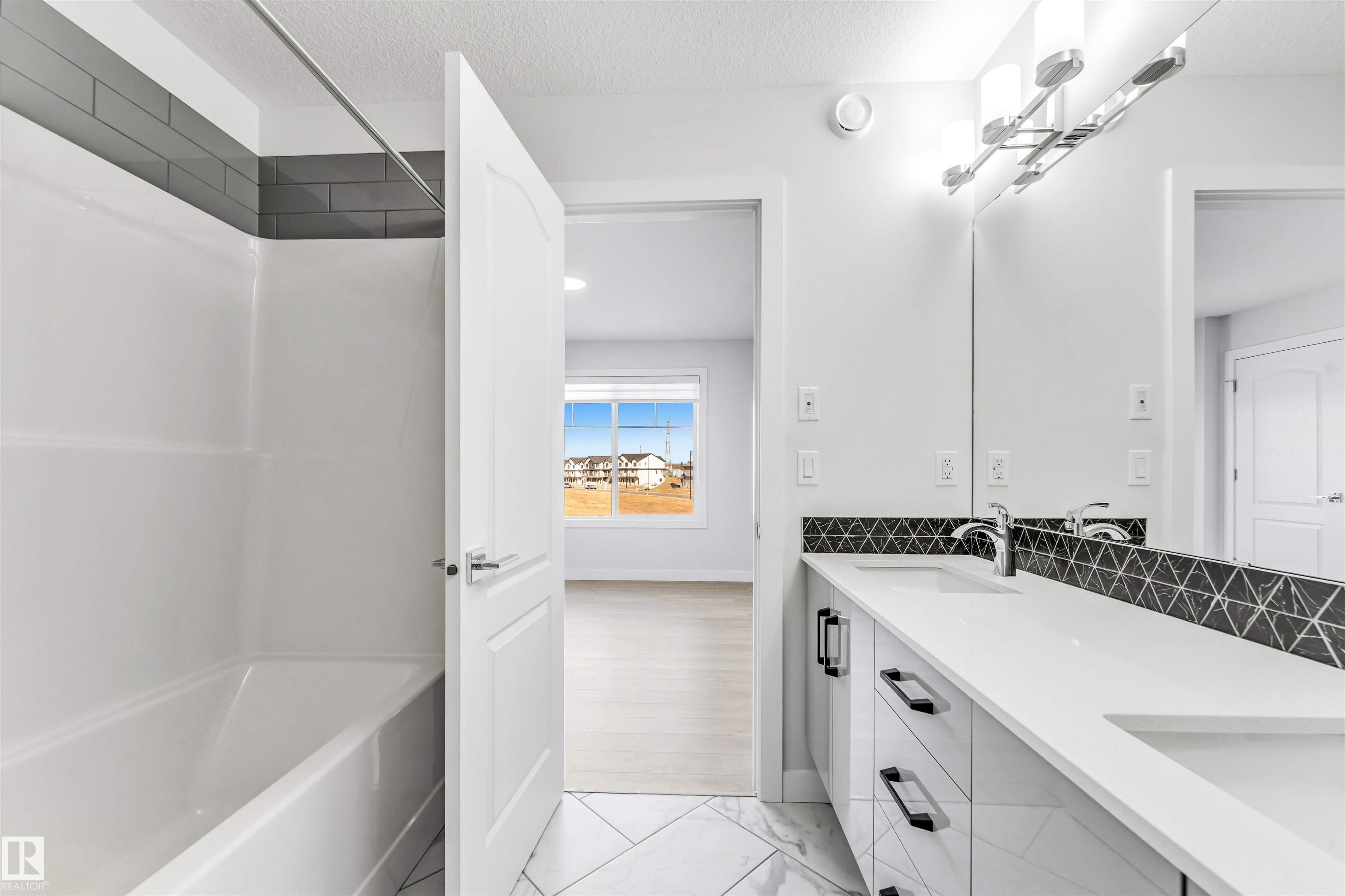 **ASTER** MAIN FLOOR FULL BED & BATH ** ALL APPLIANCES AND LANDSCAPING INCLUDED **where modern comfort meets functional elegance. Step inside to a spacious open-concept main floor that connects the living, dining, and kitchen areas seamlessly, creating the ideal space for everyday living and entertaining. Large windows invite plenty of natural light, highlighting the warmth and sophistication of every detail. The kitchen is designed with ample cabinetry, a convenient layout, and a welcoming flow that makes it the heart of the home. The main floor also features a comfortable bedroom and a full bathroom, perfect for guests or multigenerational living. Upstairs, the primary suite provides a peaceful retreat with a luxurious ensuite and a generous walk-in closet. Additional bedrooms are well-sized, offering versatility for family, work, or relaxation. Located in a family-friendly neighbourhood with access to parks, schools, and walking trails.