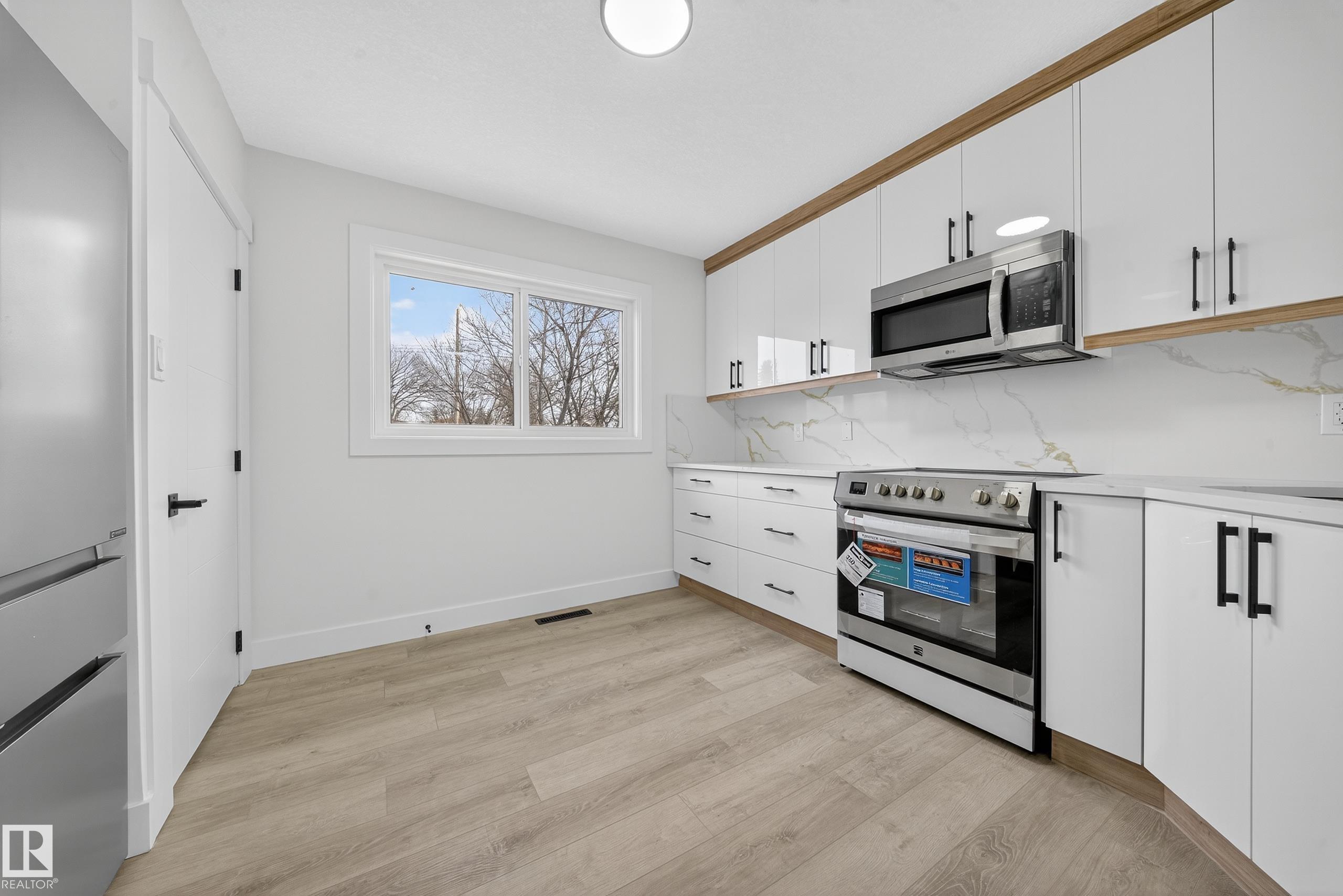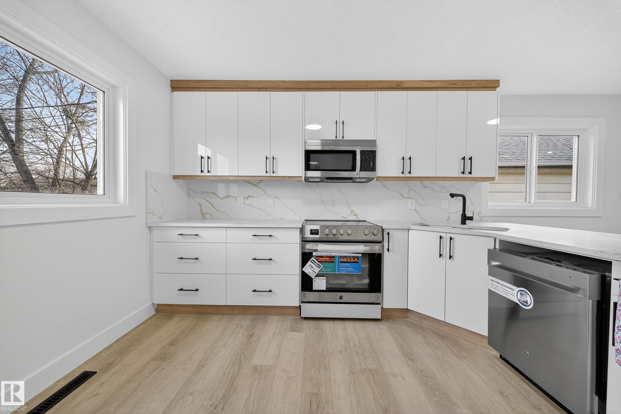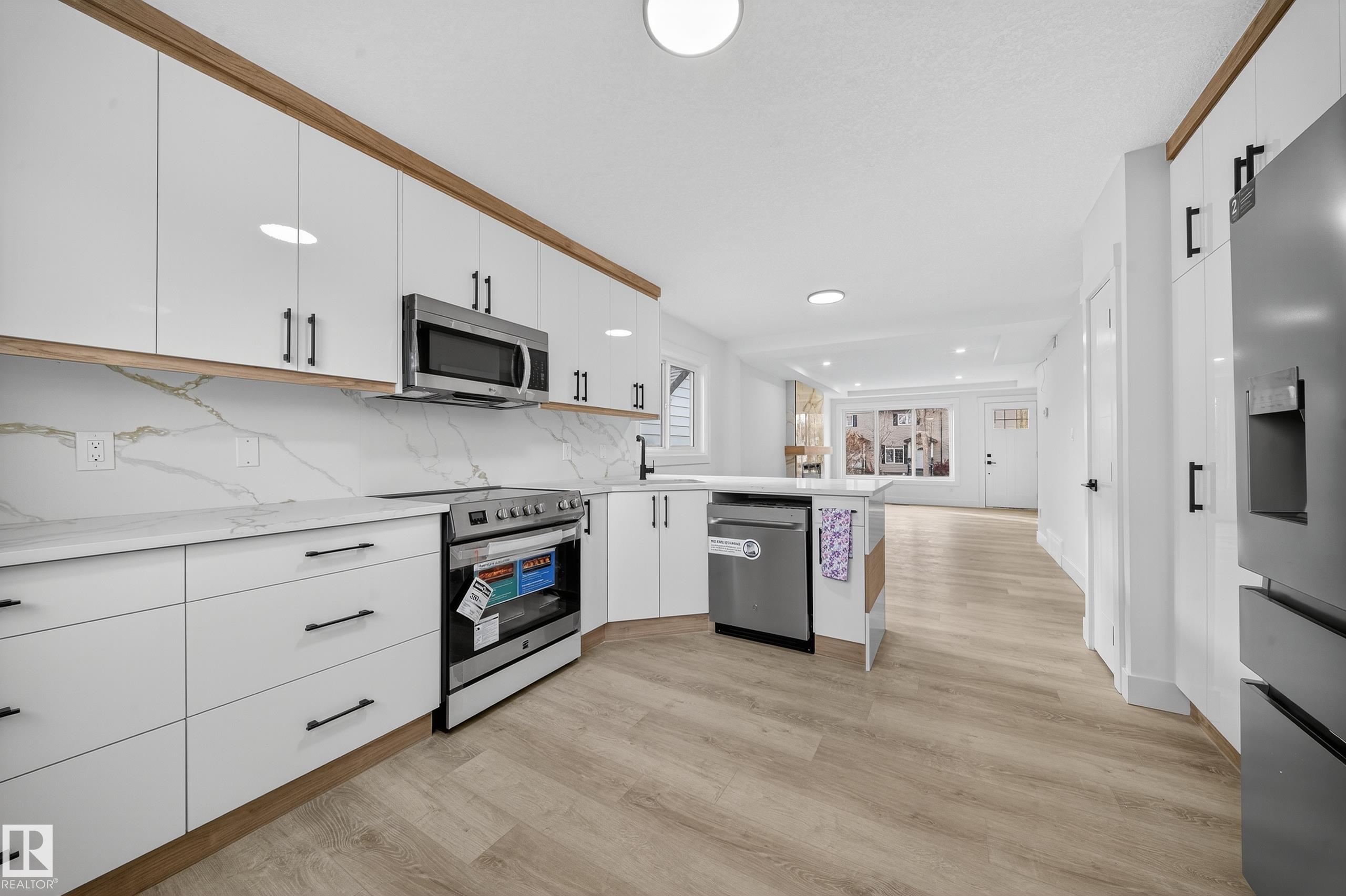 Welcome to this beautifully renovated bungalow in Eastwood! Situated on a regular lot, this home offers 6 bedrooms and 3 full bathrooms with a second kitchen and separate entrance?perfect for extended family or rental potential. The main floor features 3 bedrooms, 2 full baths, and a stunning new kitchen with modern cabinetry, quartz countertops with quartz backsplash, stainless steel appliances, and main-floor laundry. The fully finished basement includes 3 additional bedrooms, a full bath, a brand-new kitchen, and separate laundry. Recent upgrades include new shingles (home & garage), new furnace, new over sized windows, doors, baseboards, lighting, paint, MDF shelving, upgraded bathrooms, new concrete walkways, driveway, plumbing, electrical, upgraded insulation and a new hot water tank. An oversized double detached garage offers ample parking and storage. Close to schools, parks, shopping, and public transit, this move-in-ready home shines with quality upgrades inside and out!