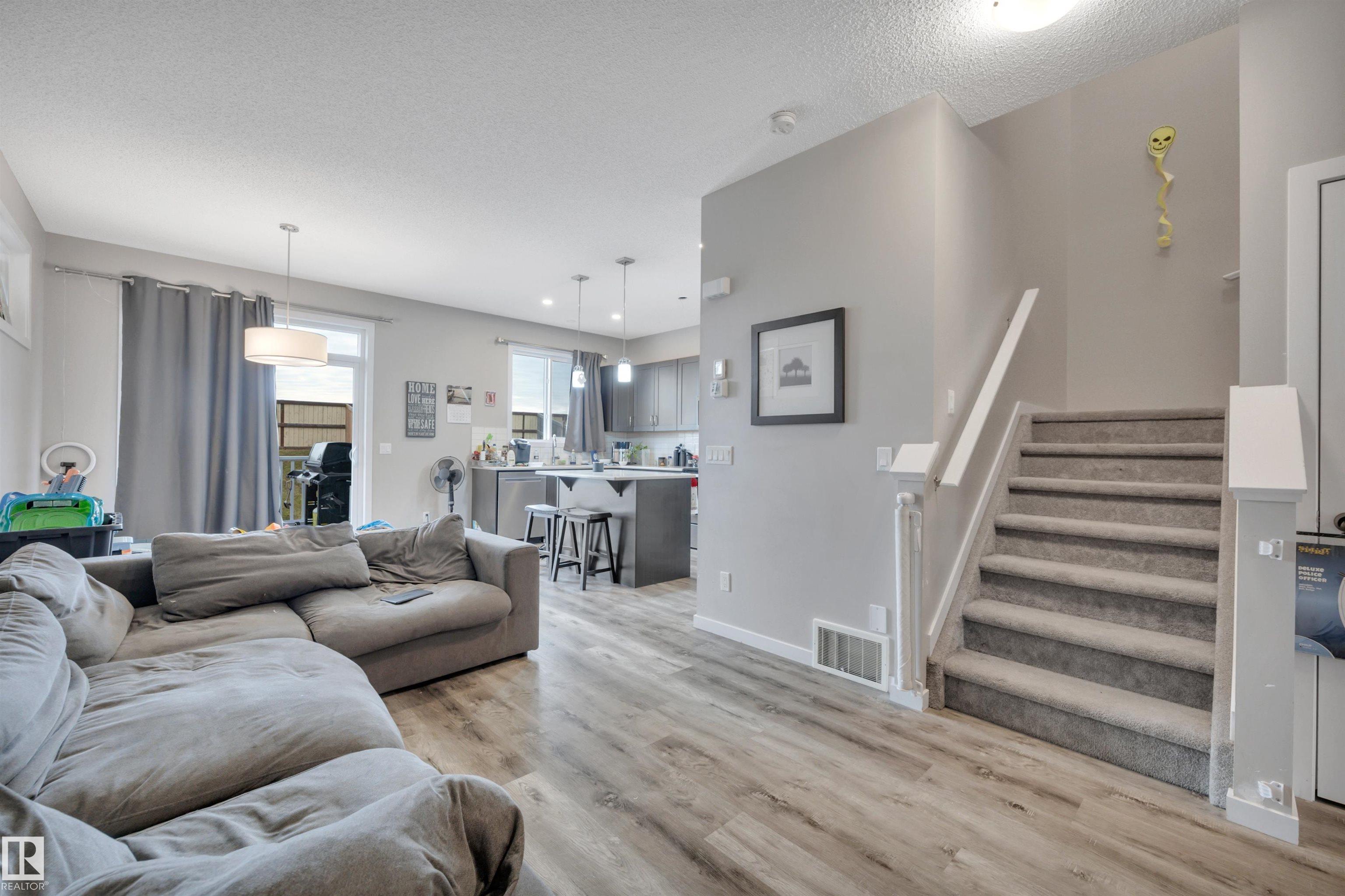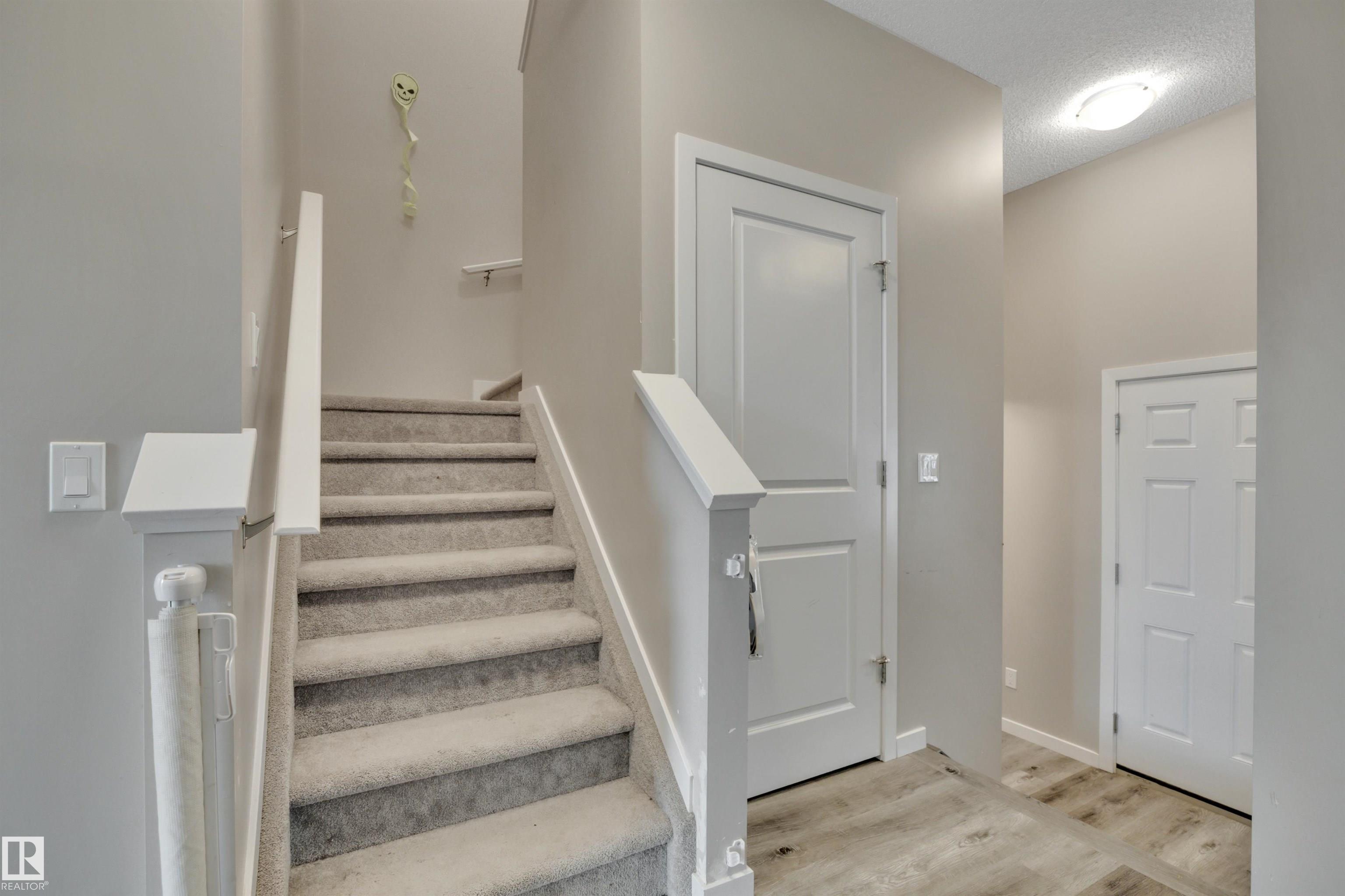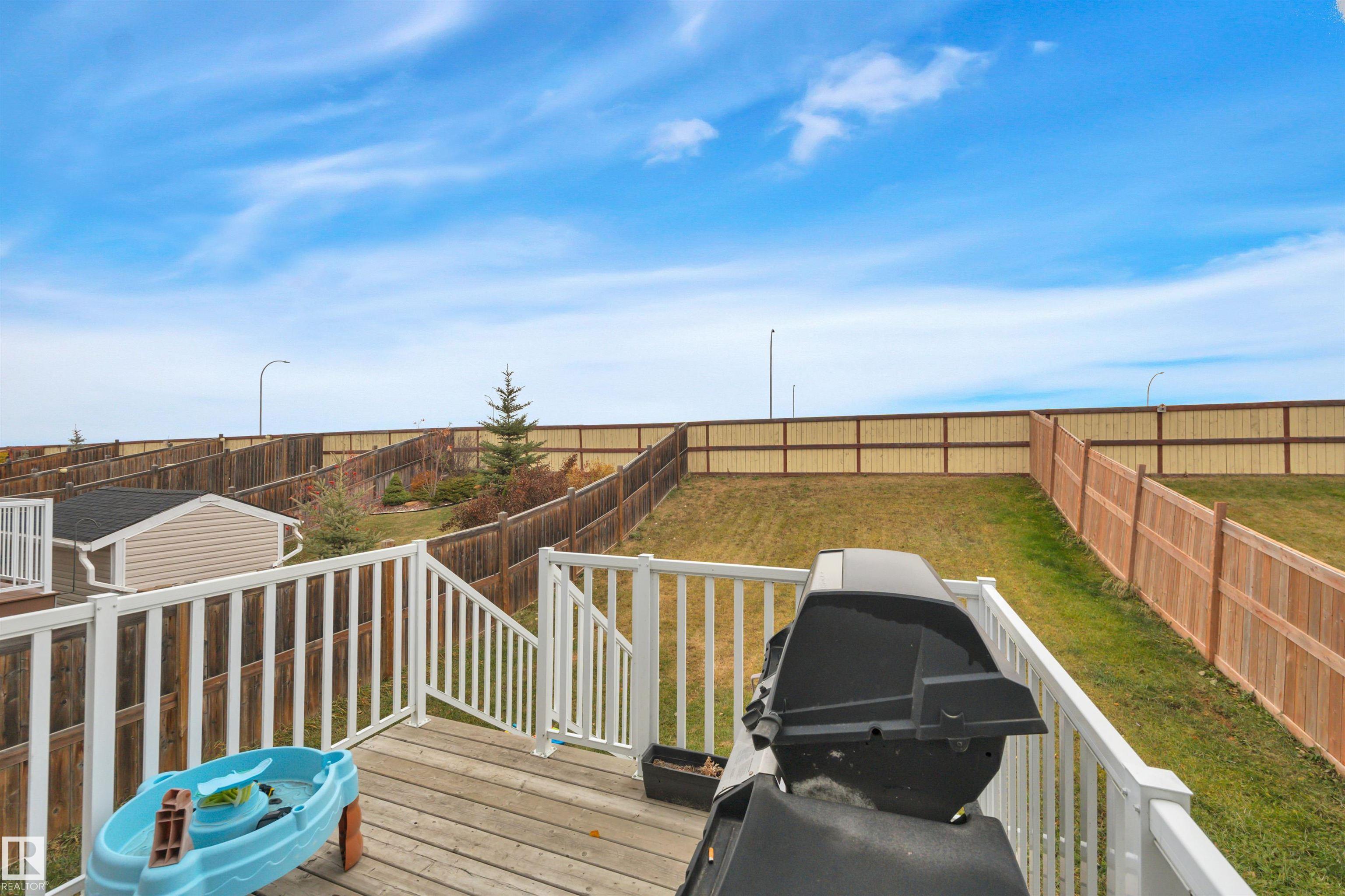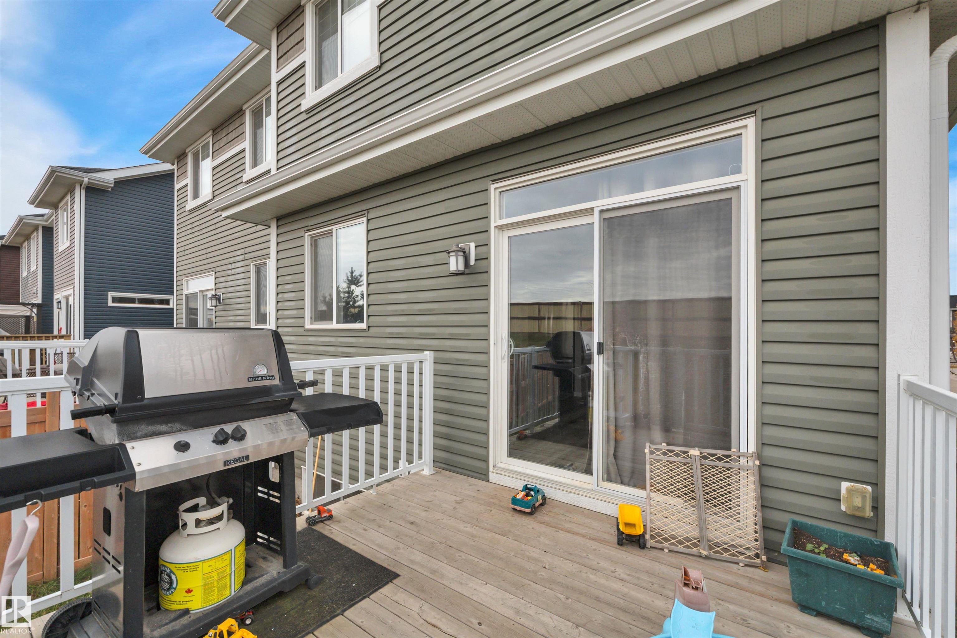 Searching for the ideal investment property or first home to call your own? This 1375 sq ft 3 bed, 2.5 bath Jayman single garage duplex provides a functional layout with room to build equity! Spacious entryway w/ adjacent 2 pce bath leads up into the open concept living / dining / kitchen space w/ 9 foot ceilings; great for gatherings & cooking up a storm! Generous kitchen w/ island, corner pantry, & stainless steel appliances. Upstairs brings 3 good sized bedrooms, including the primary bedroom w/ beautiful 5 pce ensuite & walk in closet. Additional 4 pce bath, upper laundry, & linen storage. The basement is partially finished, w/ nicely sized rec room / play space for the kids or movie night! Basement bathroom framed in, and massive storage space completes the floor. East facing backyard, wood deck, fully fenced & landscaped to let your dog or kids roam. Room for adding a firepit too! Quick access to playgrounds, parks, & Hwy 2 & EIA. Great value for a nice package; welcome to Southfork!