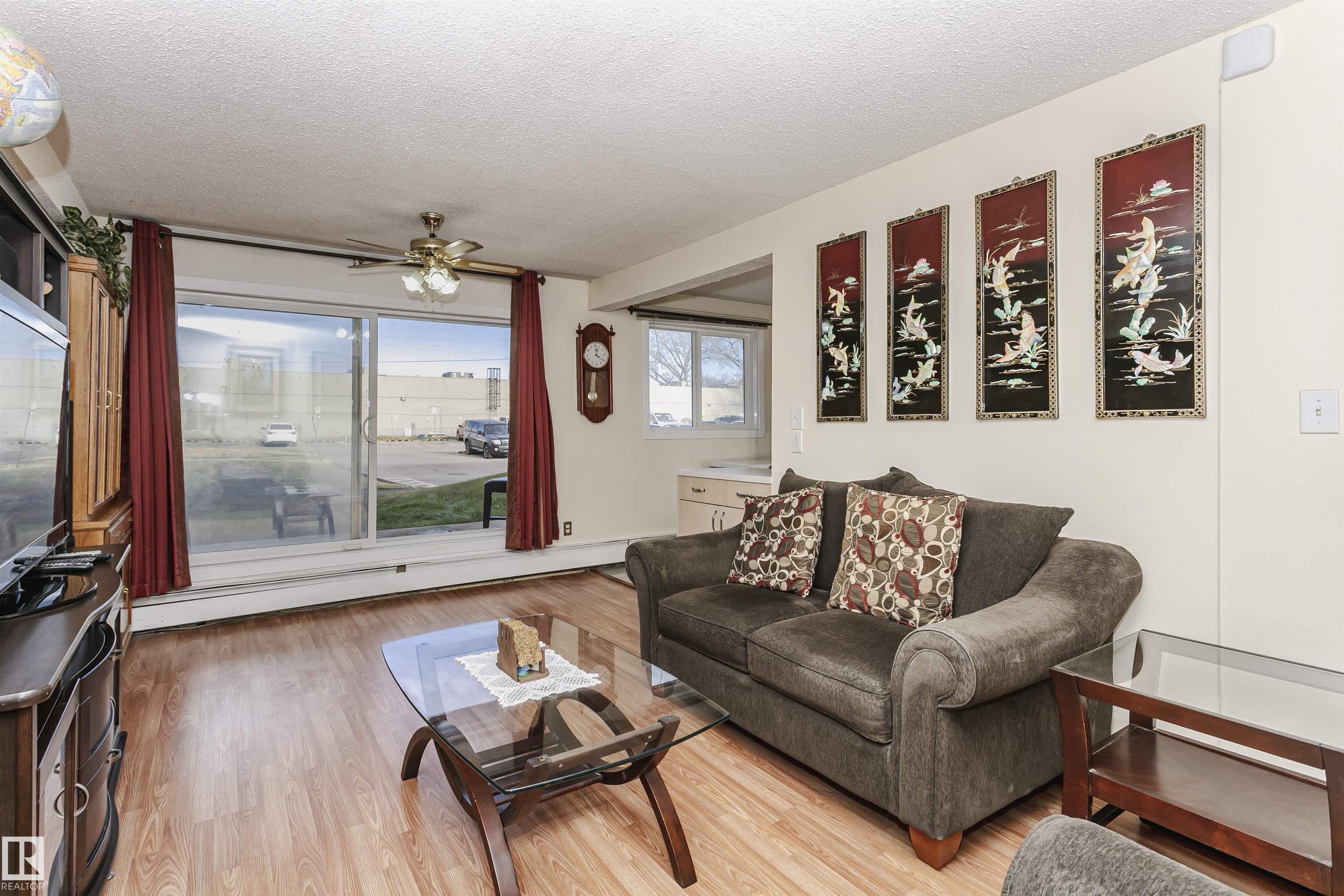 Welcome to this functional and inviting two-bedroom main floor condo! Whether you're looking to invest or downsize, this home offers terrific value and comfort. The renovated kitchen features plenty of storage and modern finishes. The spacious living room provides a comfortable area to relax or entertain. Both bedrooms are generously sized, and the four-piece bathroom features a lower tub used as a shower that?s easy to step into for added convenience. You?ll also appreciate the large in-suite storage room for all your extras. Electricity is included in the condo fees?one less bill to worry about! The unit also comes with a dedicated parking stall, and there?s plenty of visitor parking available for your guests. Ground floor exit/entry through the patio door allows easy access for visitors. Convenient for them to go to adjacent strip mall to get snacks and cold drinks during warm weather. Shopping centers nearby Enjoy the ease and peace of mind that comes with adult living in this well-maintained complex.