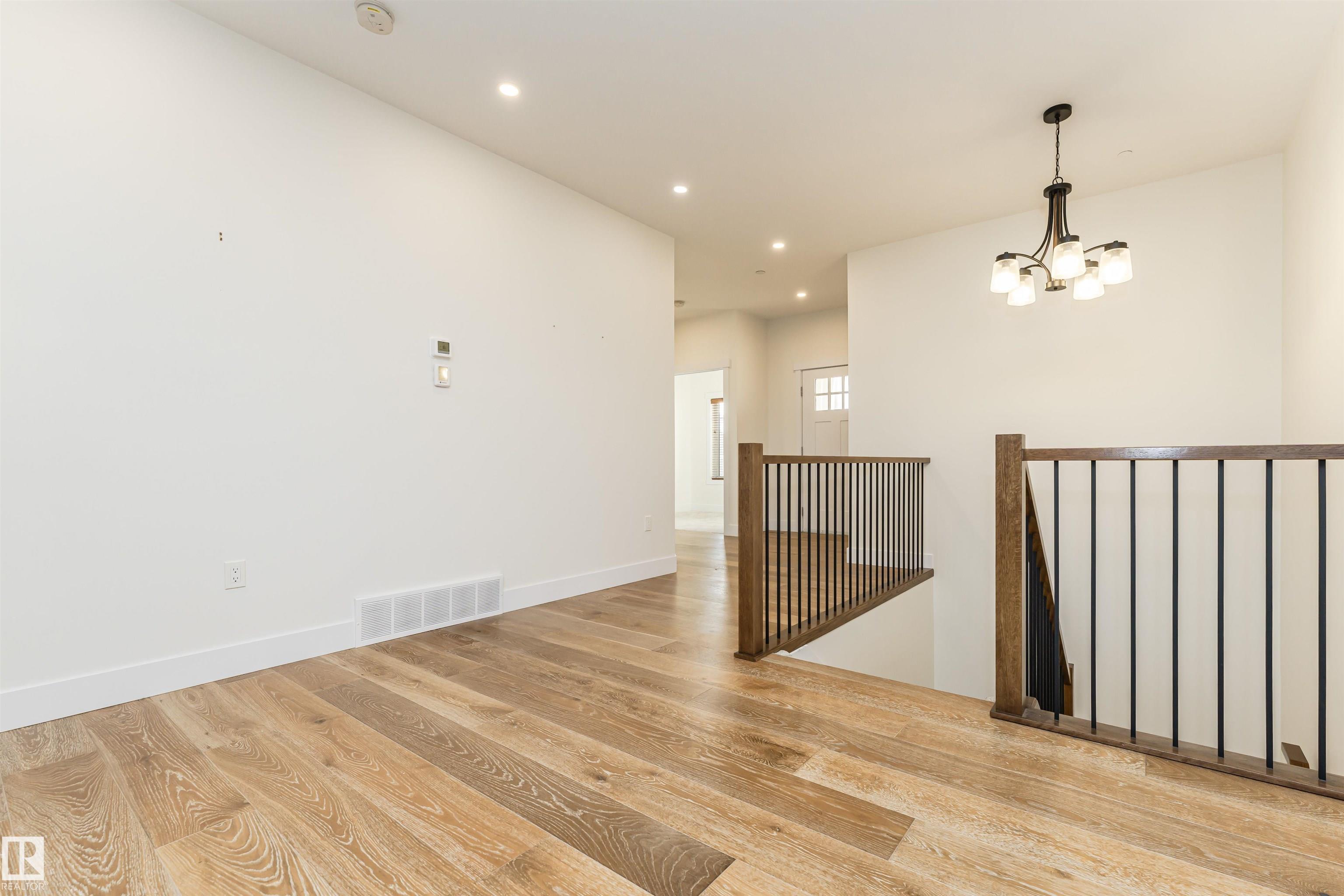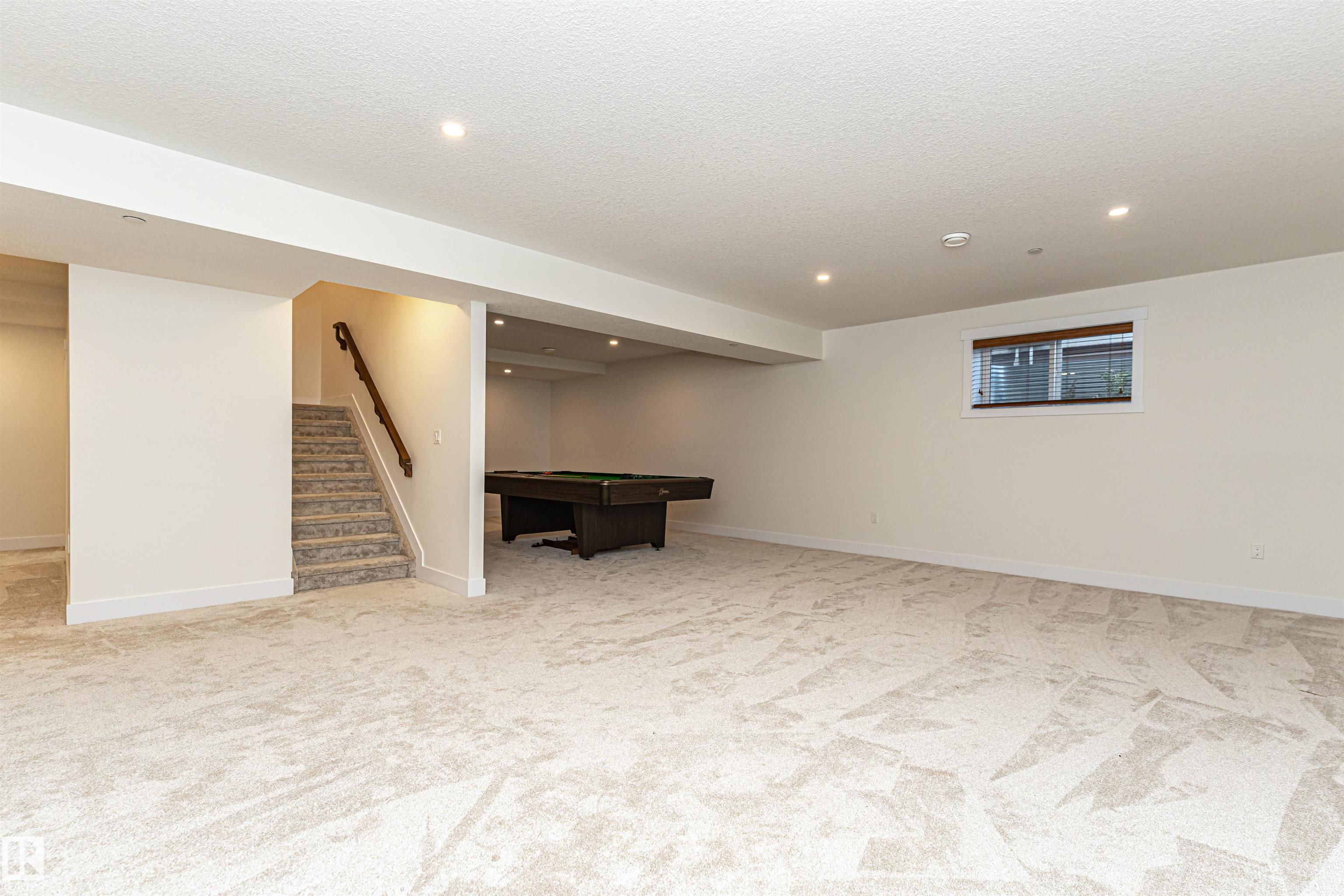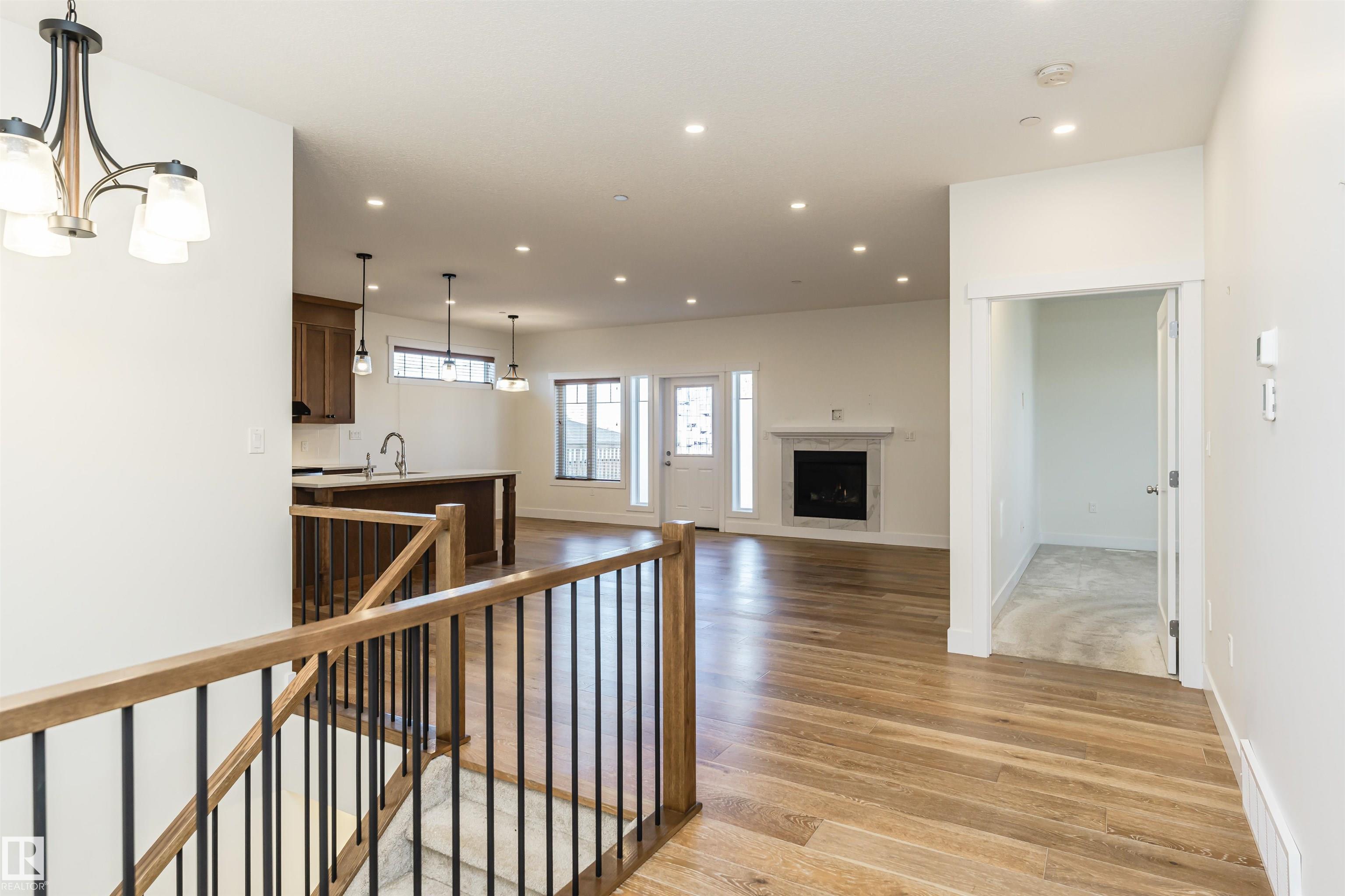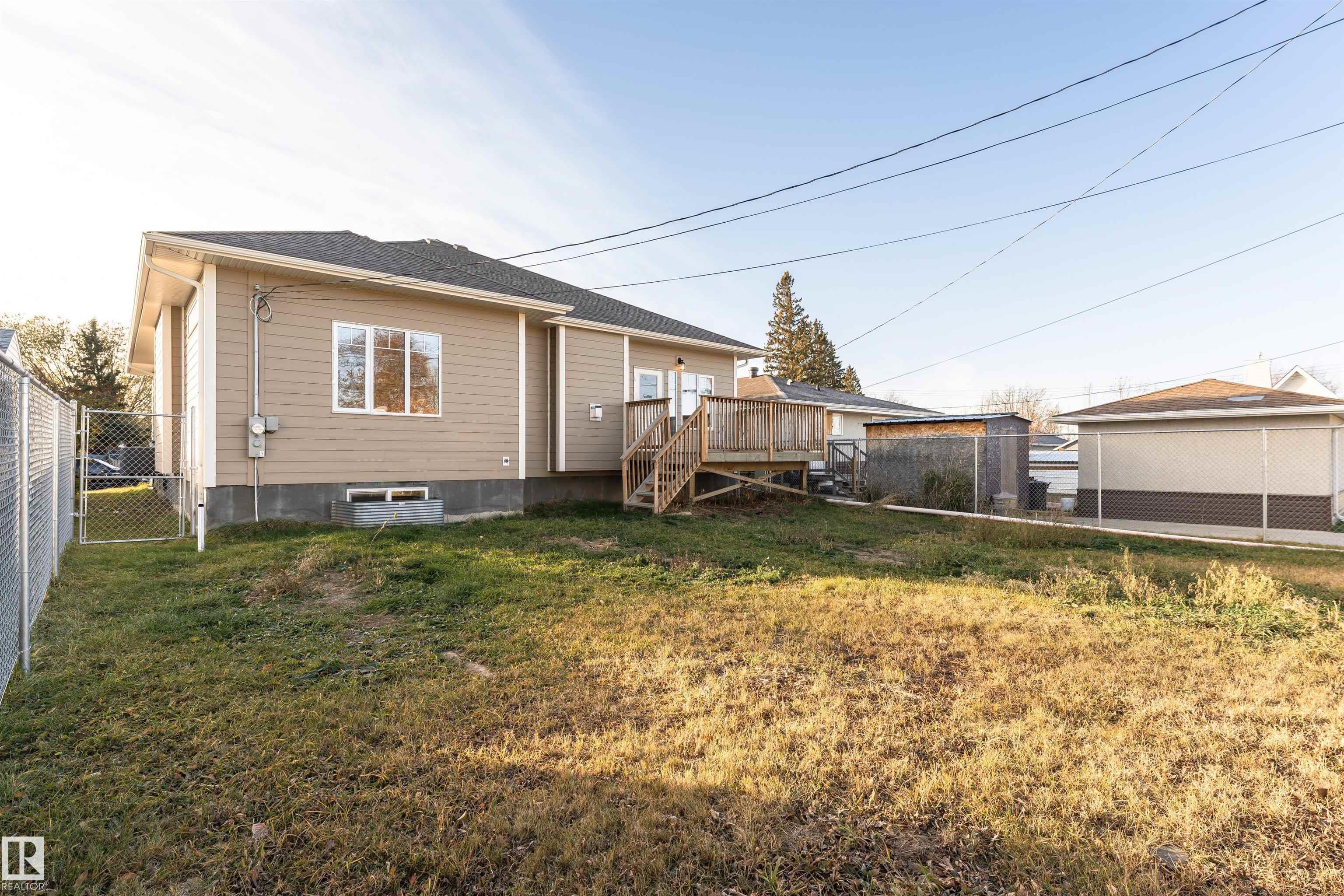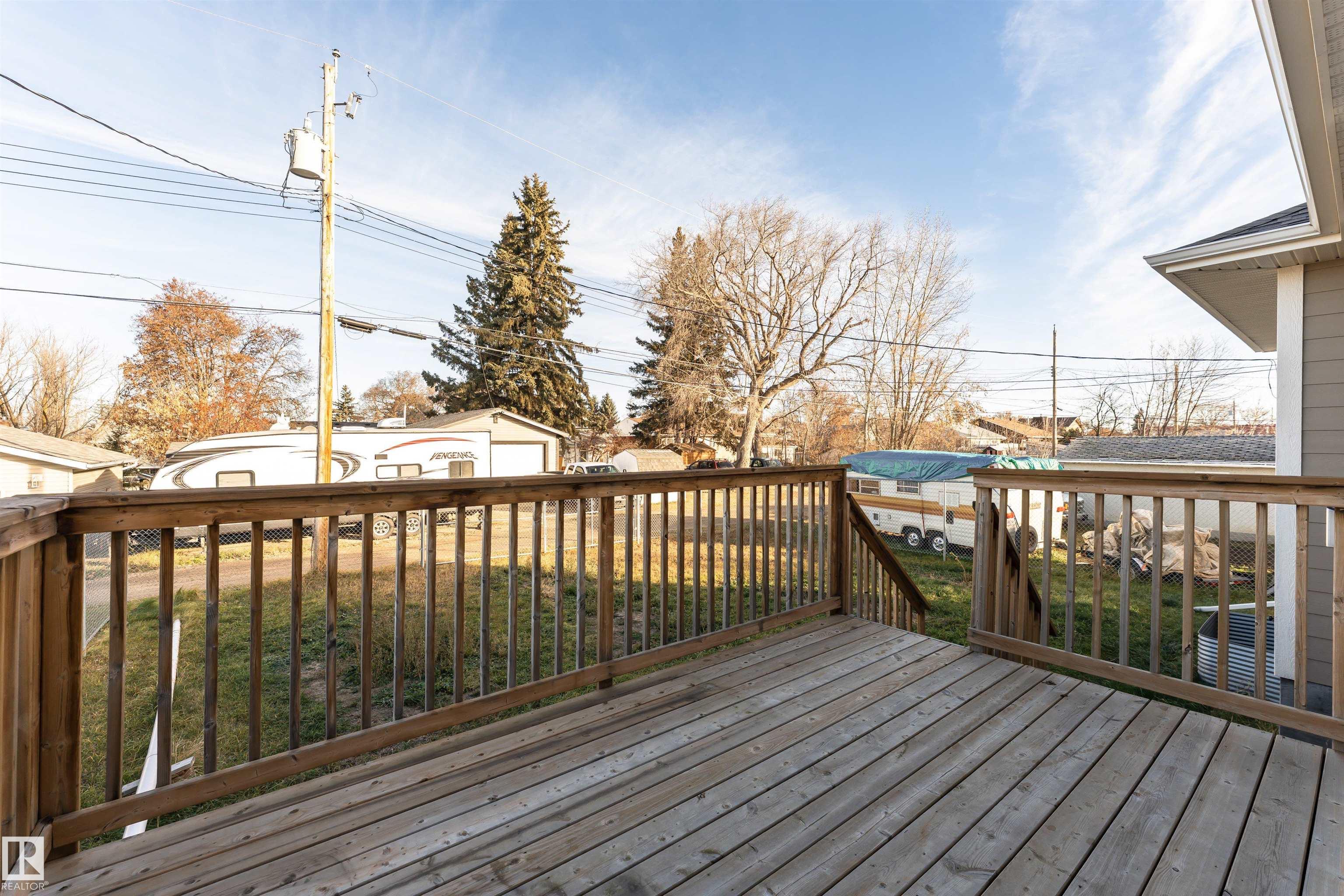 Pleased to present this 1566 sqft, 3 bed plus den fully finished bungalow in the heart of Stony Plain. All the bells and whistles on this one including hardwood floors, maple cabinets, quartz countertops, dark stainless, a/c, heated oversized garage, in-floor heat, fire sprinkler system and wheel chair lift included. Main floor features kitchen with large island, dining with garden door to deck, living room with gas f/p, den and primary bedroom with walk-in and 4 piece ensuite/jetted tub/shower. Main floor is also host to 2nd bedroom, 4 piece bathroom and huge laundry room/garage entrance area. Downstairs you will find massive family/rec room complete with pool table (incl) and a huge 3rd bedroom along with yet another 4 piece bathroom. The attached garage is oversized and extra high, plenty of room for a car lift. It also has a wheel chair lift for easy access to the house. The yard is fenced and there is back ally access. Some photos virtually staged.