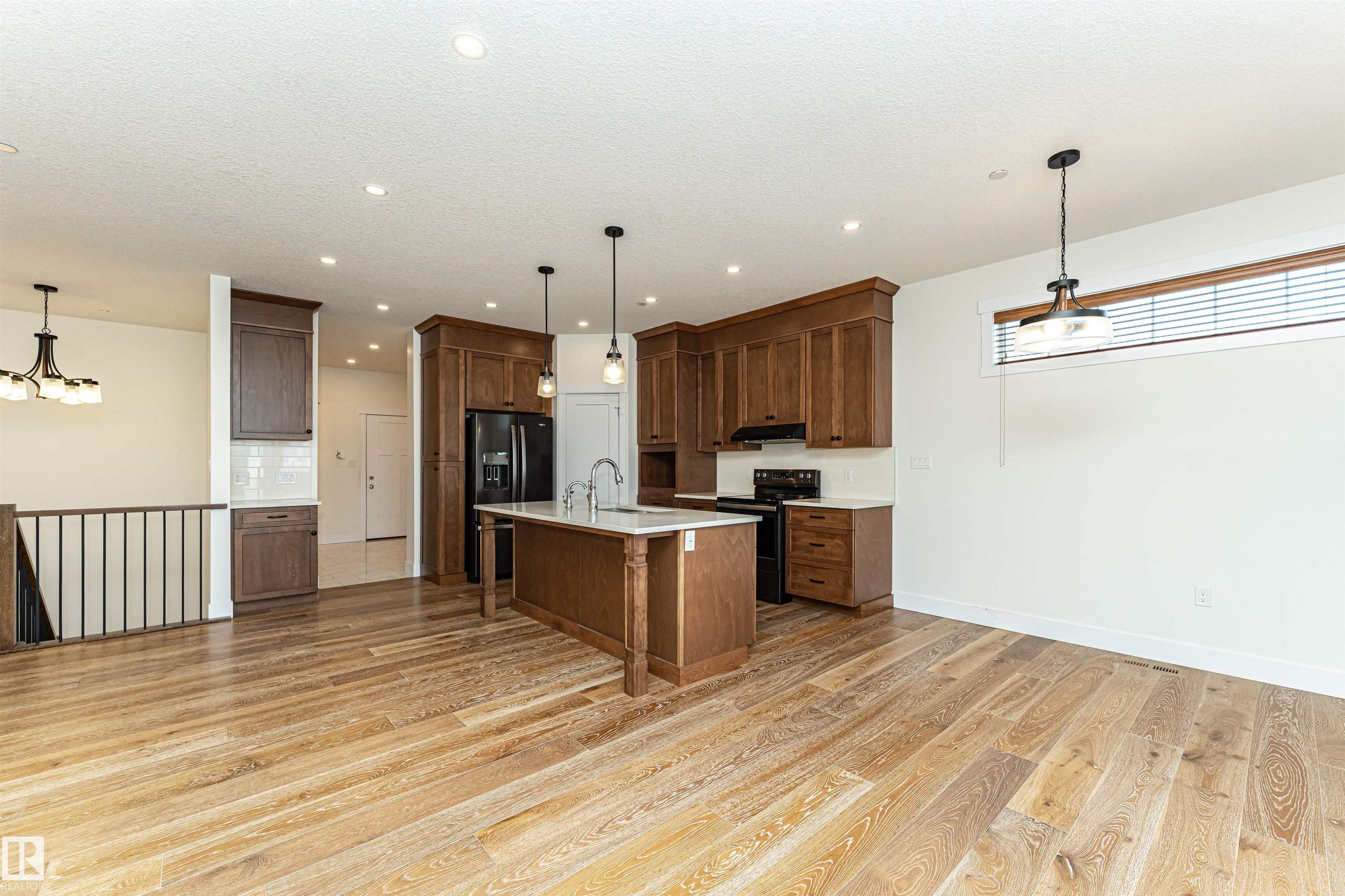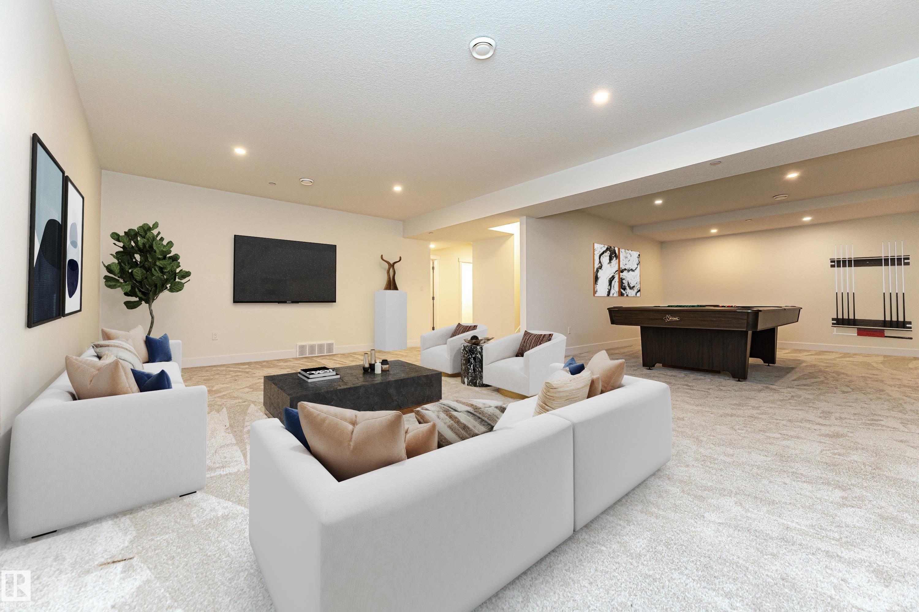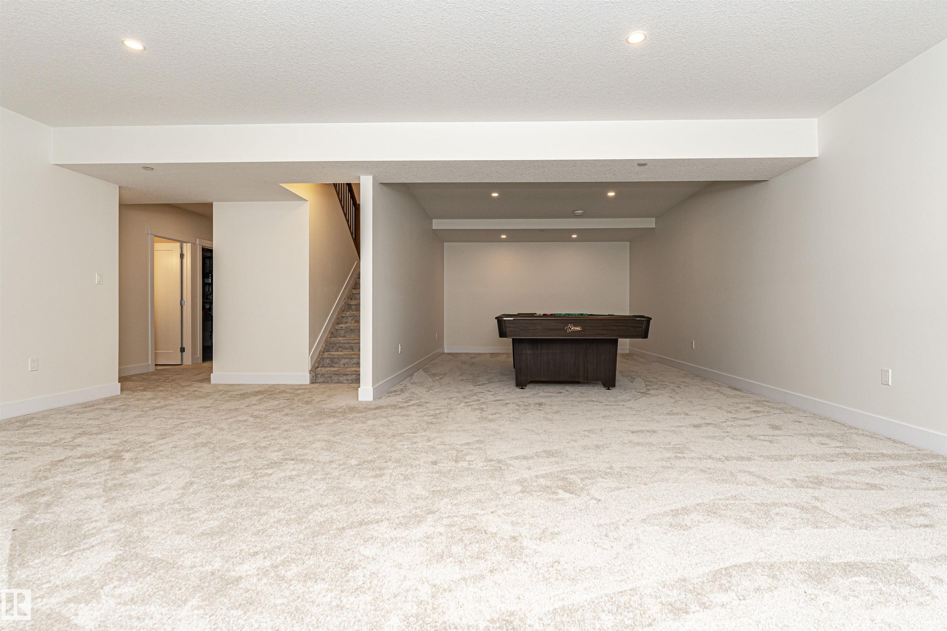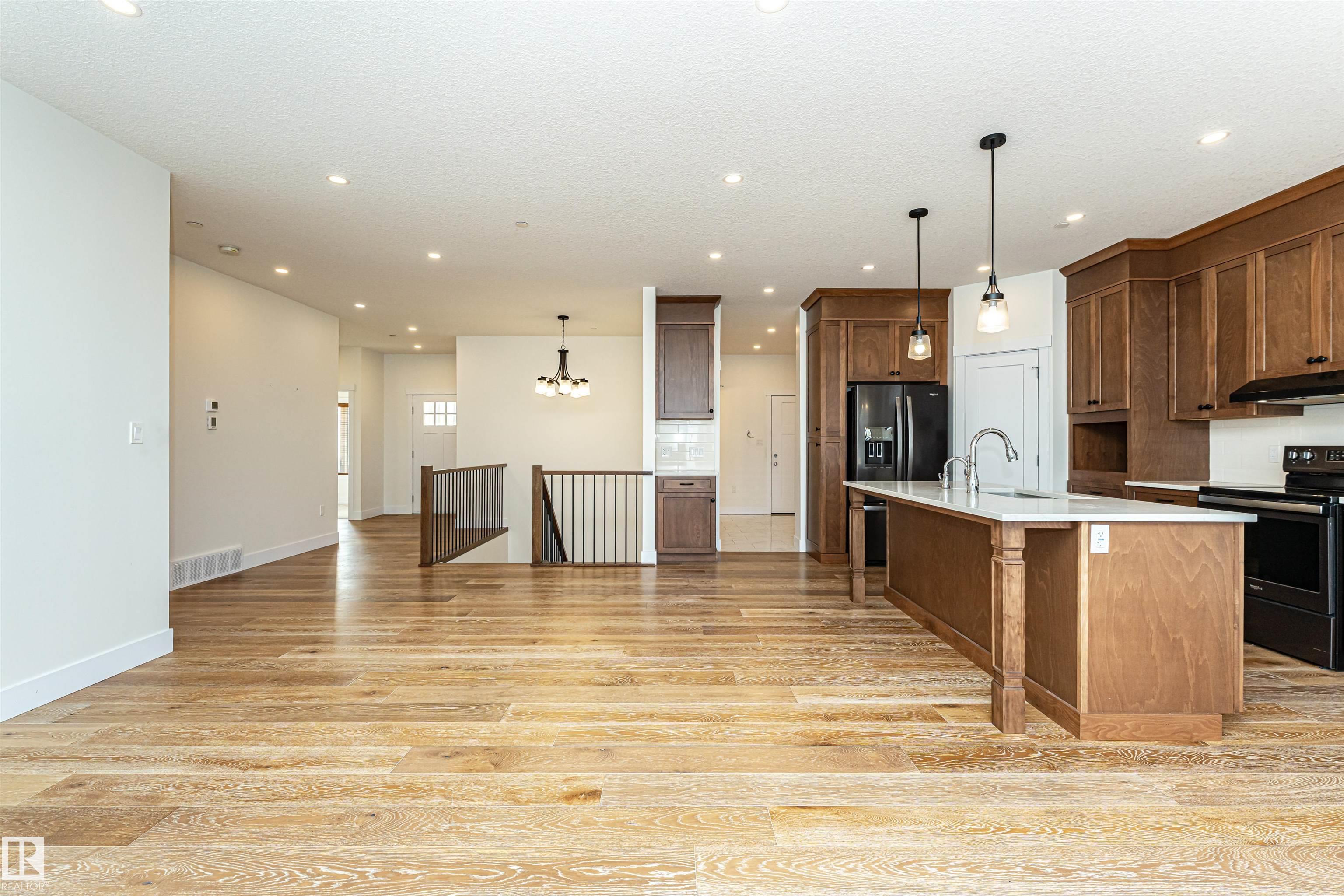 Pleased to present this 1566 sqft, 3 bed plus den fully finished bungalow in the heart of Stony Plain. All the bells and whistles on this one including hardwood floors, maple cabinets, quartz countertops, dark stainless, a/c, heated oversized garage, in-floor heat, fire sprinkler system and wheel chair lift included. Main floor features kitchen with large island, dining with garden door to deck, living room with gas f/p, den and primary bedroom with walk-in and 4 piece ensuite/jetted tub/shower. Main floor is also host to 2nd bedroom, 4 piece bathroom and huge laundry room/garage entrance area. Downstairs you will find massive family/rec room complete with pool table (incl) and a huge 3rd bedroom along with yet another 4 piece bathroom. The attached garage is oversized and extra high, plenty of room for a car lift. It also has a wheel chair lift for easy access to the house. The yard is fenced and there is back ally access. Some photos virtually staged.