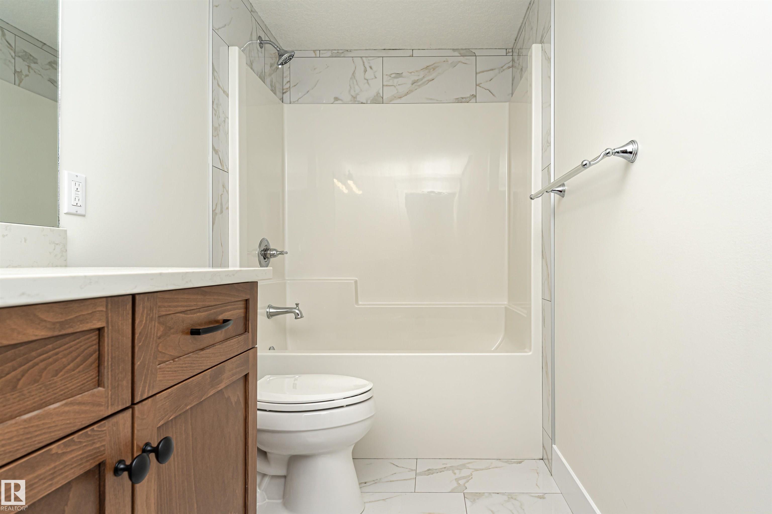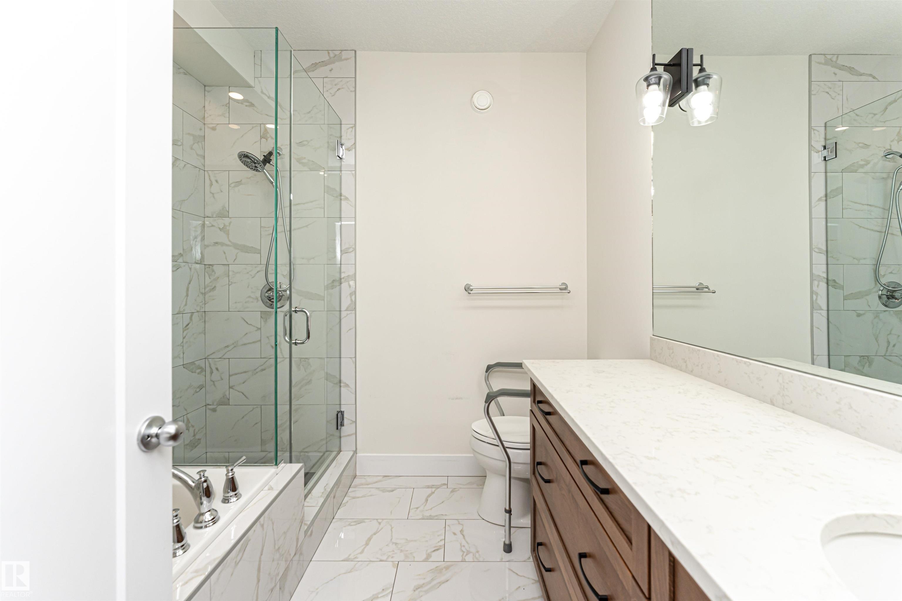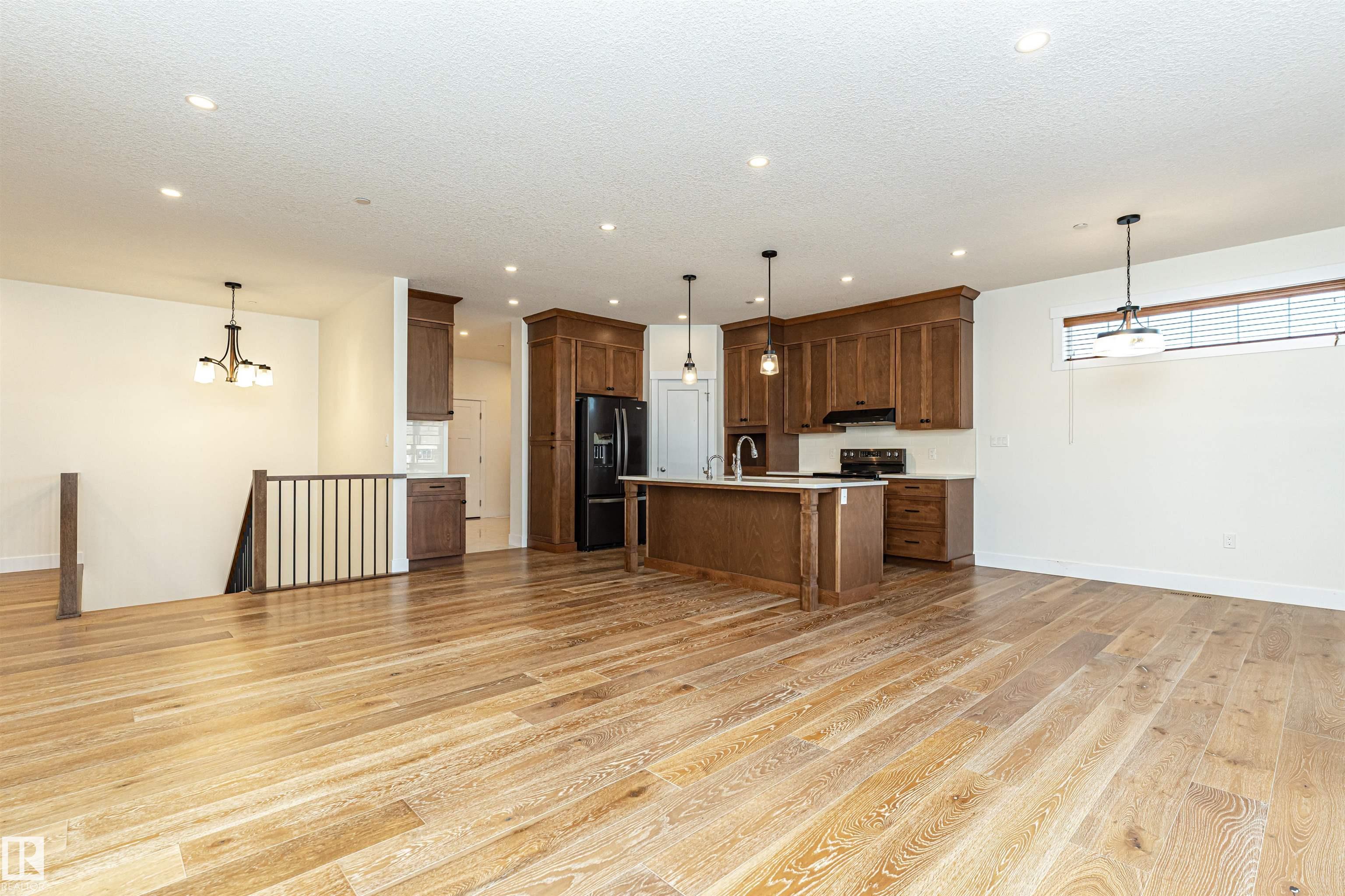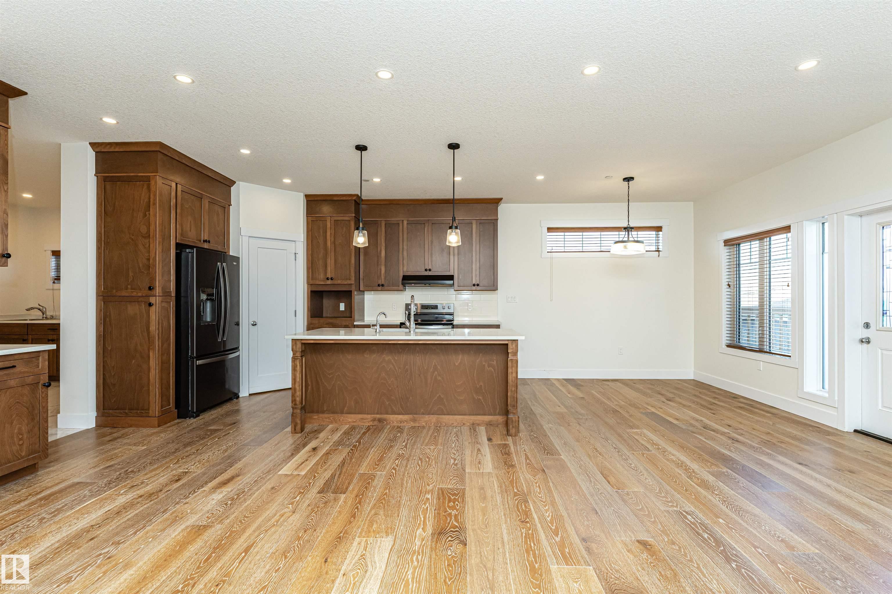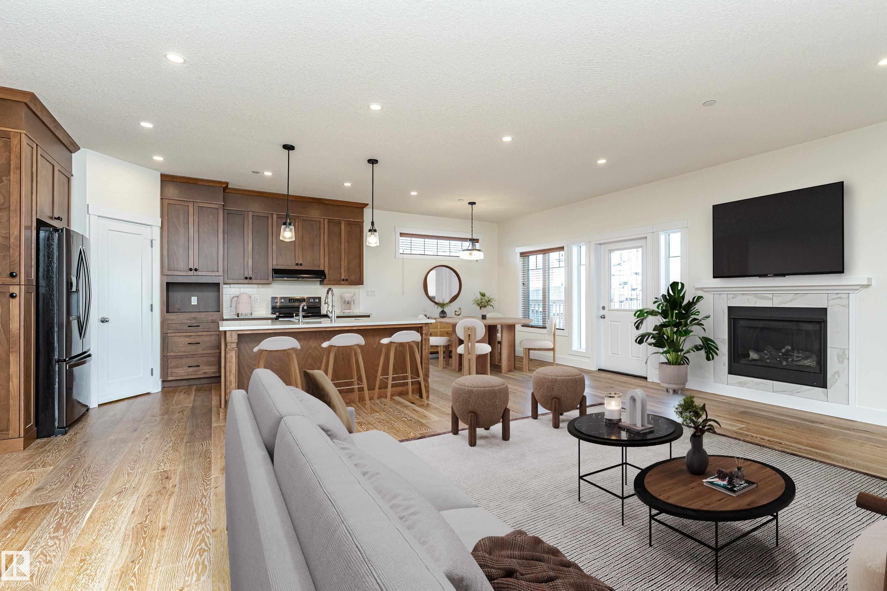 Pleased to present this 1566 sqft, 3 bed plus den fully finished bungalow in the heart of Stony Plain. All the bells and whistles on this one including hardwood floors, maple cabinets, quartz countertops, dark stainless, a/c, heated oversized garage, in-floor heat, fire sprinkler system and wheel chair lift included. Main floor features kitchen with large island, dining with garden door to deck, living room with gas f/p, den and primary bedroom with walk-in and 4 piece ensuite/jetted tub/shower. Main floor is also host to 2nd bedroom, 4 piece bathroom and huge laundry room/garage entrance area. Downstairs you will find massive family/rec room complete with pool table (incl) and a huge 3rd bedroom along with yet another 4 piece bathroom. The attached garage is oversized and extra high, plenty of room for a car lift. It also has a wheel chair lift for easy access to the house. The yard is fenced and there is back ally access. Some photos virtually staged.