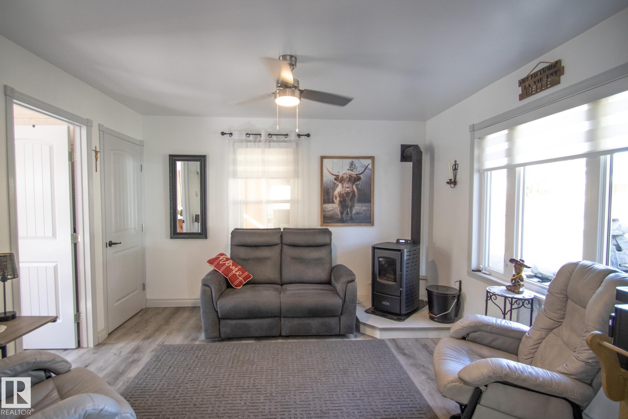 Charming Renovated 1-Bedroom Home Backing Onto Ravine 570 sq ft | Extensively Updated | Peaceful Natural Setting Welcome to this beautifully renovated 1-bedroom home, offering 570 sq ft of thoughtfully designed living space. Nestled against a serene ravine, this cozy retreat combines modern updates with natural charm. Recent extensive renovations include a stylish new kitchen, updated bathroom, contemporary flooring, energy-efficient windows and doors, and upgraded electrical throughout. Stay warm and cozy with the inviting pellet stove, adding both ambiance and cost-effective heat. Enjoy the convenience of a covered carport and incredibly affordable utilities. Whether you're looking for your first home, a downsized lifestyle, or a peaceful getaway, this property offers exceptional value in a tranquil setting.
