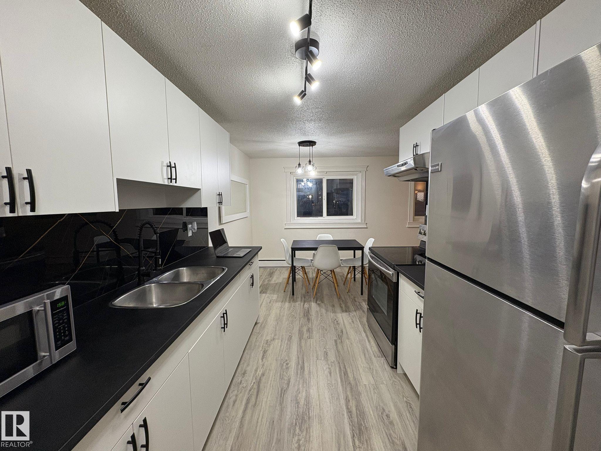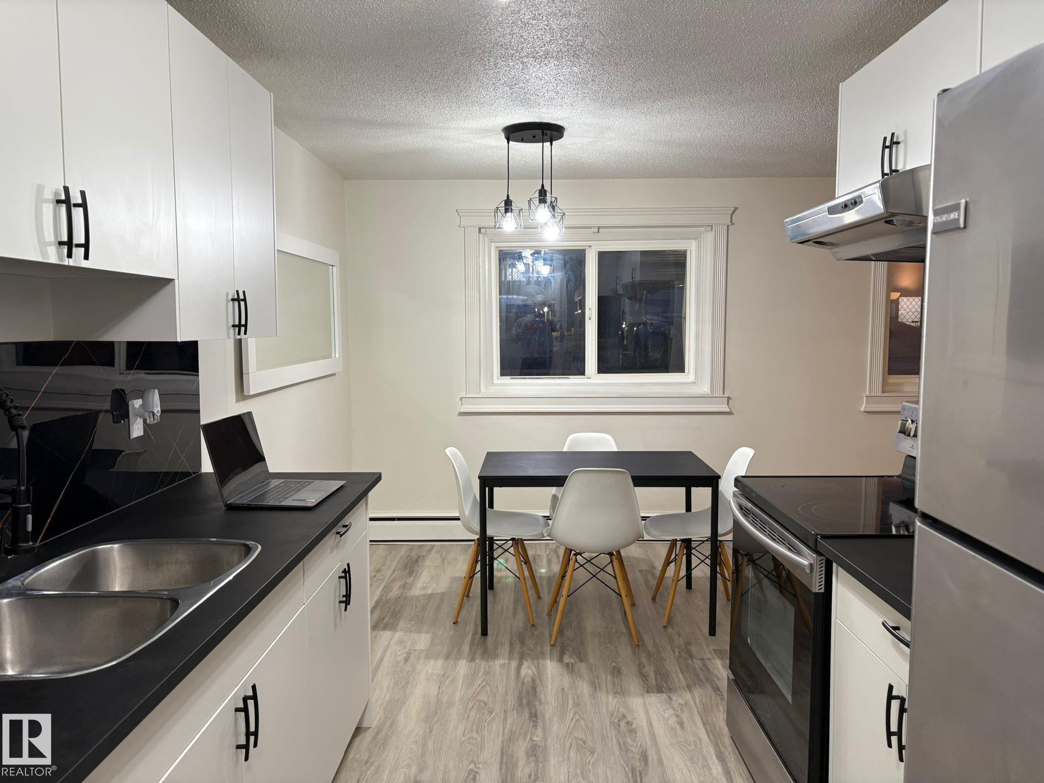 FULLY FURNISHED, RENOVATED AND WITH IMMEDIATE POSSESSION !!!!! Why rent when you can OWN FOR LESS. This newly renovated 2 BEDROOM apartment is 5 minutes drive to Whyte Ave, Concordia University, King's University, 10-15 minutes drive to U of Alberta and Downtown Edmonton. Recent Upgrades includes: NEW FLOORING THROUGHOUT THE HOUSE, new KITCHEN, New PAINT, New BASEBOARDS, new LIGHTING , new VANITY in Toilet and new TOILET SEAT. To top that seller is also offering following in the sale: Dining Table and 4 chairs, bed and mattress (2), couch (2), TV, TV stand, Coffee table, Lamps (4), microwave, large work table, shower curtain and a painting. With 2 large bedrooms you won't run out of space in this almost 900 square feet apartment. Potential rent for the area is $1650 . Don't miss this one out.