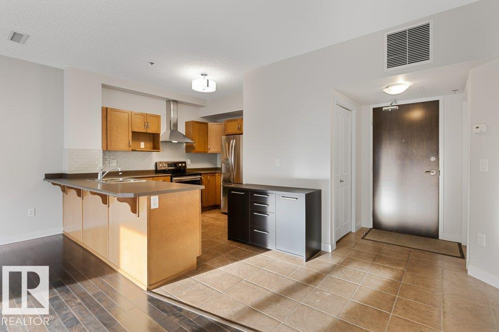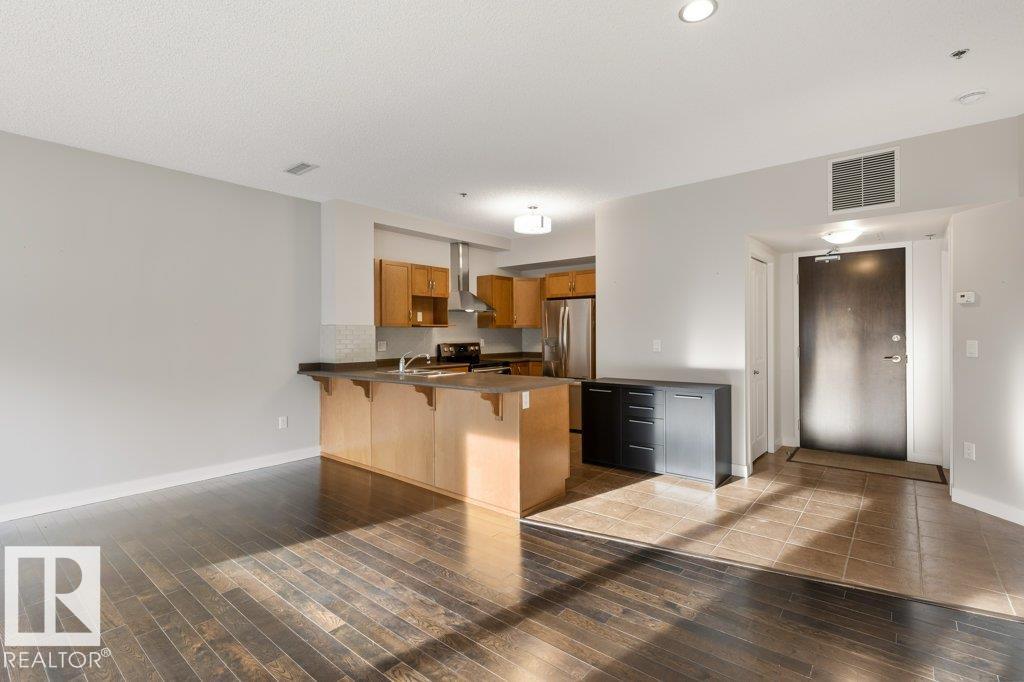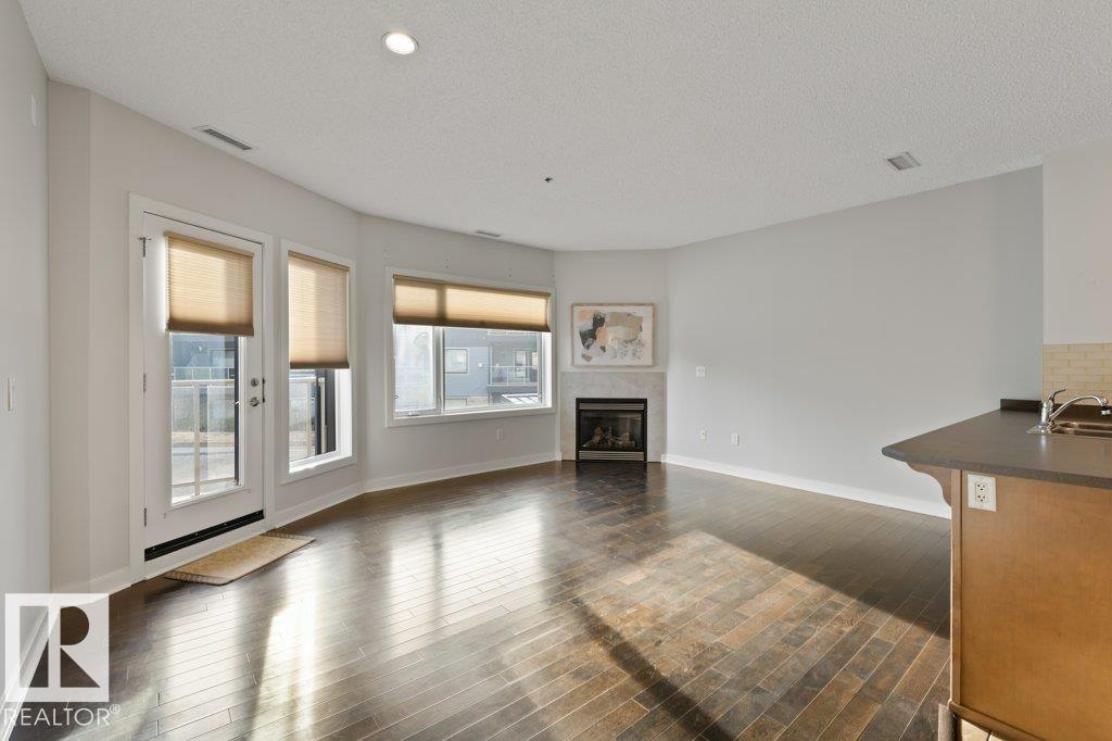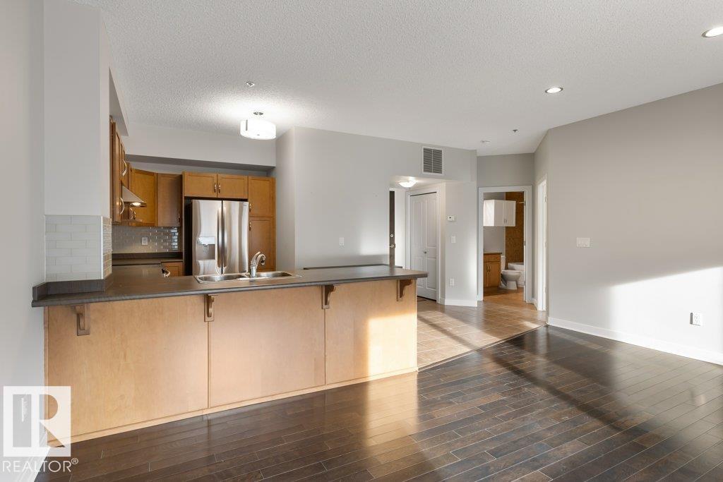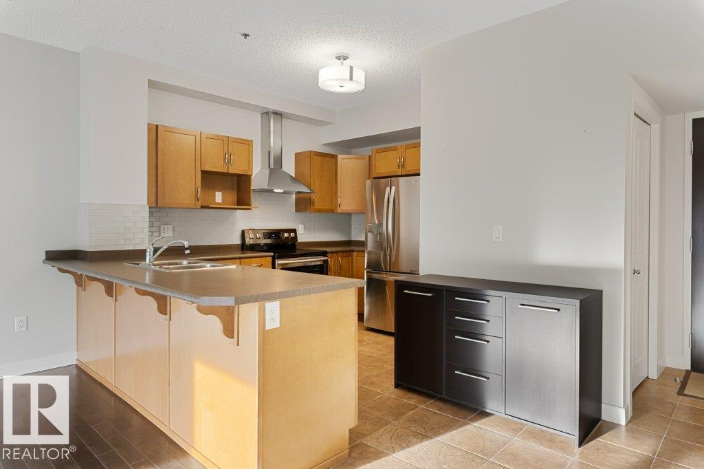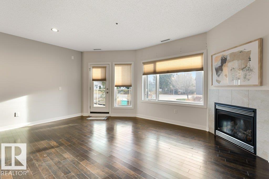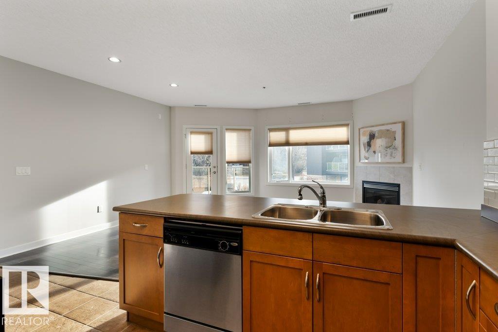 SIMPLY SENSATIONAL! Unbelievable Value in the desirable Tenor on the River! Yes, luxury living is within your reach! Opportunity to be the second owner of this beautiful condo featuring an open concept design with ultra modern decor, large kitchen with glass tile backsplash, stainless steel appliances and abundance of cupboards, Large Living Room with Fireplace, over sized Master Bedroom, spacious 4 piece bath, in-suite laundry, 9 foot ceilings, Central Air Conditioning, Covered Patio with Gas Hookup for BBQ. Titled underground, parking stall and assigned storage cage. Building amenities include a state of the art Gym, Owners Lounge, Owners balcony to enjoy the River View - Hotel Style Lobby. Concrete and Steel Construction. Even underground visitor parking for your guests! Fabulous location only steps to Red Willow Trails, Downtown St. Albert-Enjoy all the seasonal festivals, shopping & restaurants and more. This home will not disappoint, pride of ownership evident throughout! A must to see!