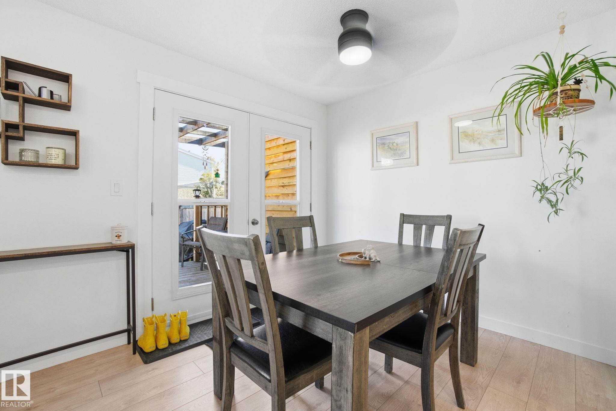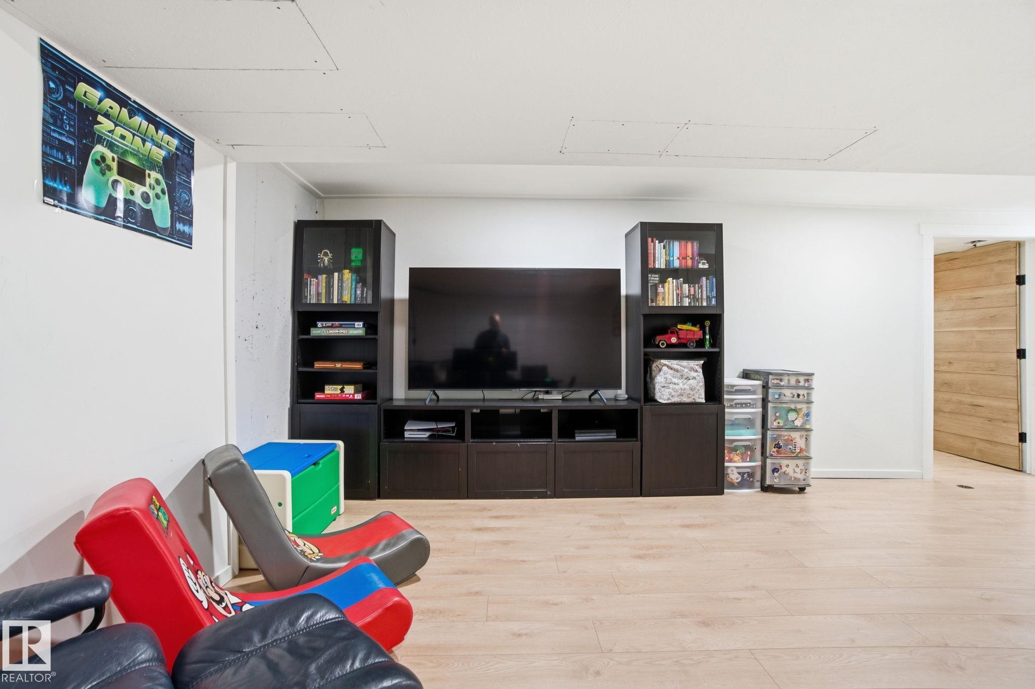 Welcome to your new 3 bedroom + Den, 1 1/2 bathroom home in the convenient and desirable neighbourhood of Grandin (The Gardens) - known for the beautiful parkland, trails and super easy and quick access to the Anthony Henday & Edmonton. This beautifully renovated and modern 2-storey townhome in Grandin Village features A/C, 100 AMP electrical, modern OPEN KITCHEN with gorgeous centre island, two-tone cabinets, extra storage space, sparkling backsplash & feature shelving. The adjoining living/dining rooms feature built-in shelving & a built-in electric fireplace to cozy up to during those chilly winter nights. Large windows & patio doors invite ample natural light and lead into the backyard that features a private deck with pergola, and yard space to play in. Upstairs, there are 3 bedrooms & an updated 4-piece bathroom. The basement is fully finished giving you the perfect movie room, games room and Den! Enjoy a snow free vehicle with your very own 12' X 22' single attached garage PLUS driveway parking.