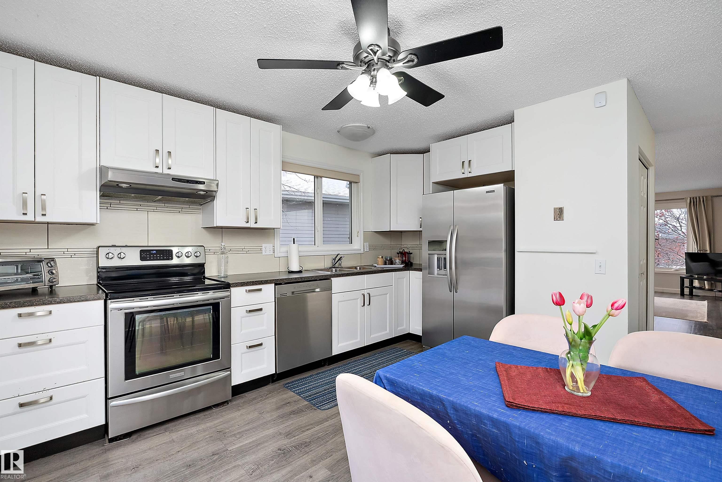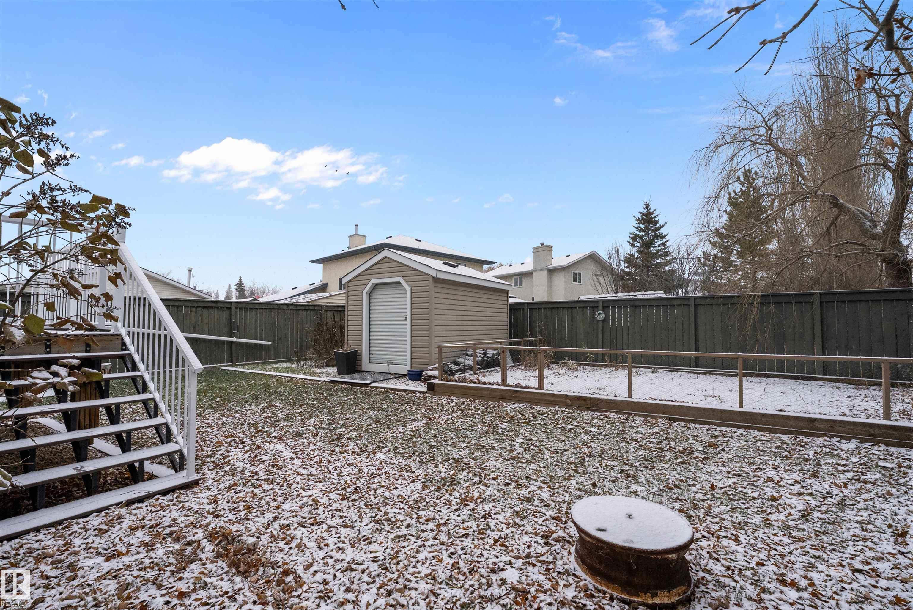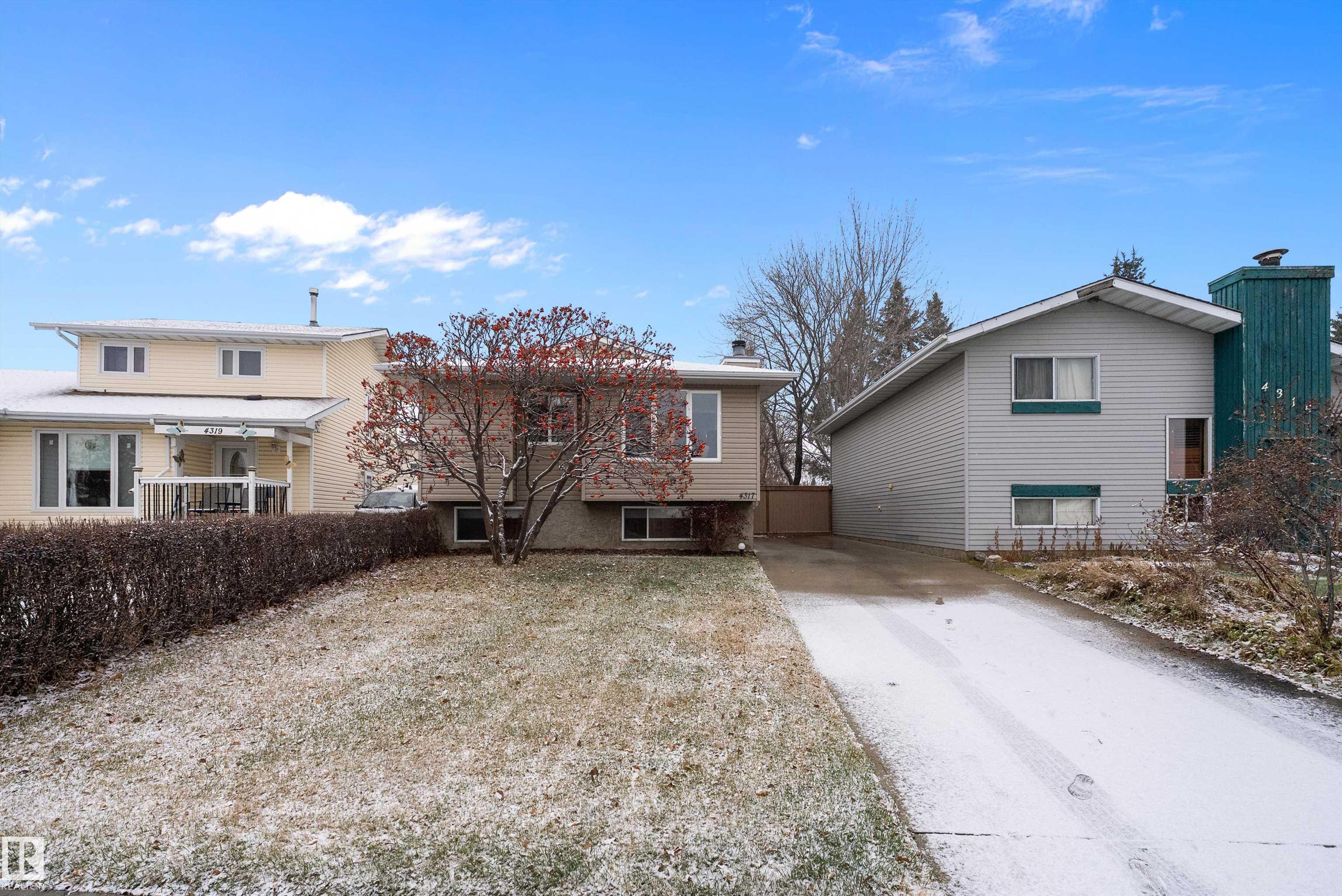 This is the PERFECT START or REVENUE PROPERTY that has been UPDATED & UPGRADED throughout & is perfectly located across from the SCHOOL, PARKS & PLAYGROUND on a OVERSIZED PIE SHAPED LOT! Just move in and enjoy this IMMACULATE HOME featuring a spacious living room, oversized windows, a modern eat-in kitchen that offers PATIO DOORS to the LARGE MAINTENANCE FREE DECK & YARD with GARDEN SPACE. Two GENEROUS BEDROOMS and a 4 piece bathroom complete the main floor. The central staircase takes you down to a brightly lit FAMILY/GAMES ROOM with LARGE WINDOWS, newer carpet & feature wall with a WOODBURNING FIREPLACE. A handy 2 piece bath, 3 rd. bedroom or den plus the laundry has its own sunlit space in the furnace /storage room. WOW! Upgrades in the past few years include, large concrete parking pad, 30 YR. shingles, LVP FLOORING, baseboards, doors, plumbing, PVC windows, CUSTOM WINDOW COVERINGS, bathrooms, STAINLESS APPLIANCES, FURNACE, HOT WATER TANK & CENTRAL AIR plus a SHED with an OVERHEAD DOOR! IT'S PERFECT!
