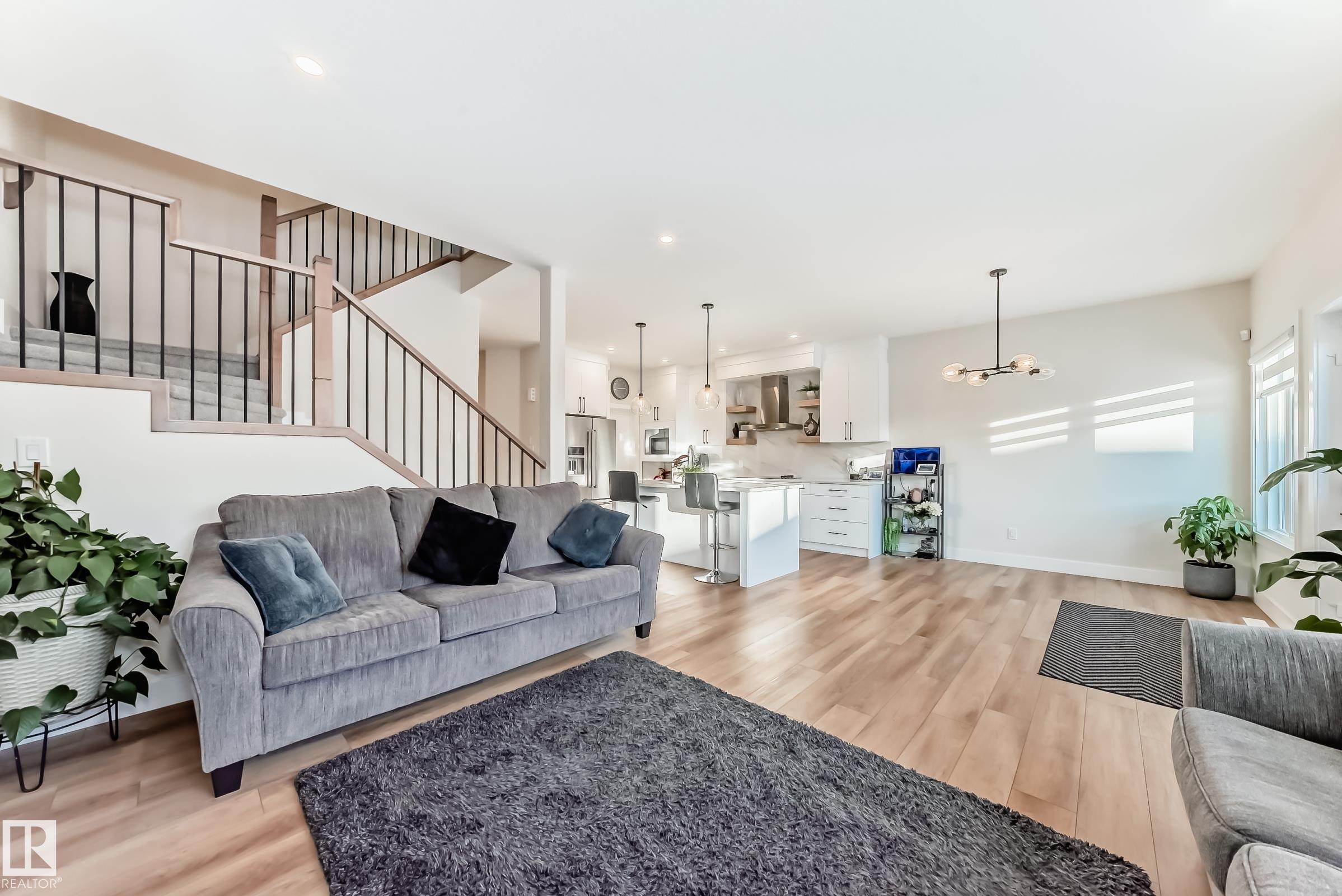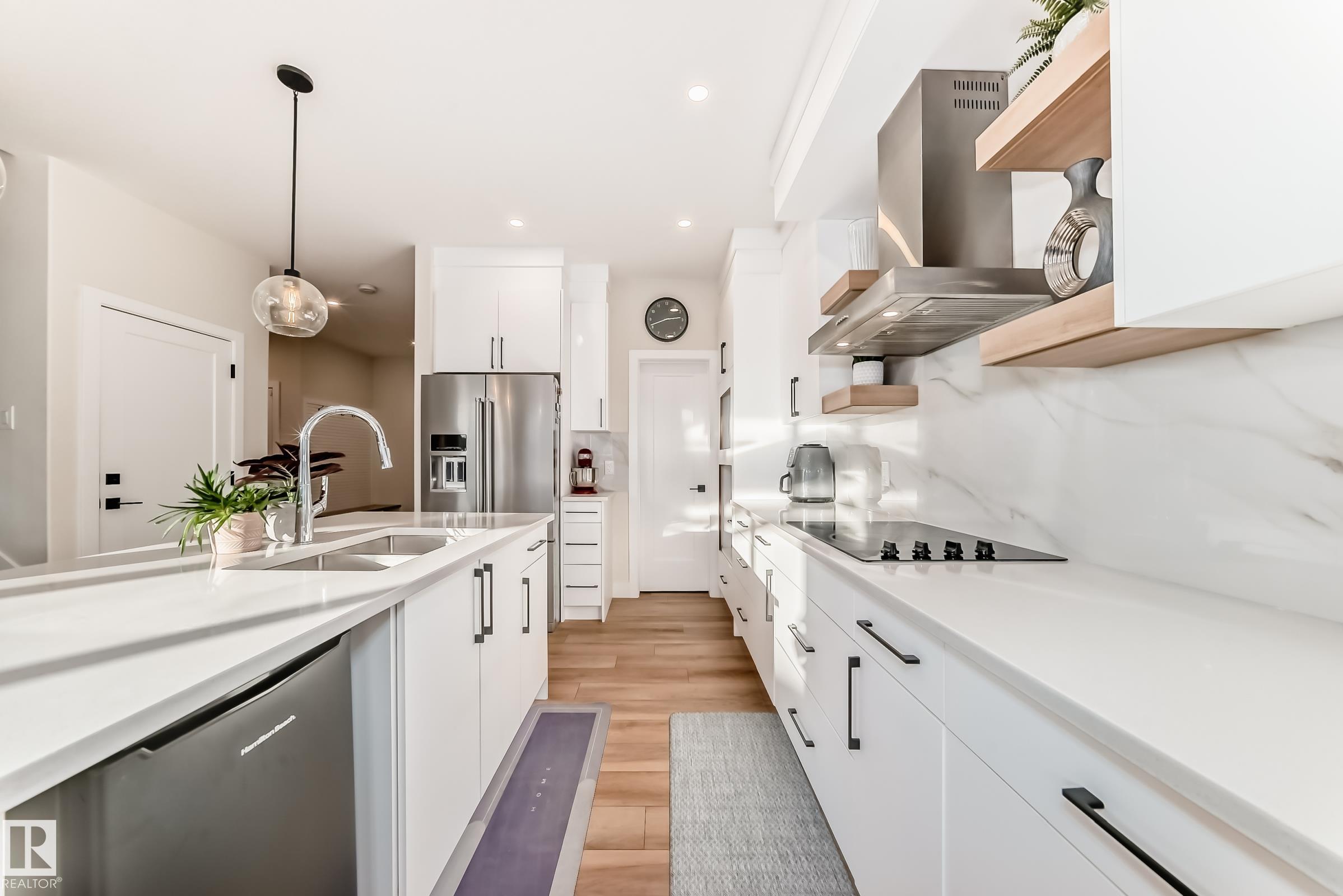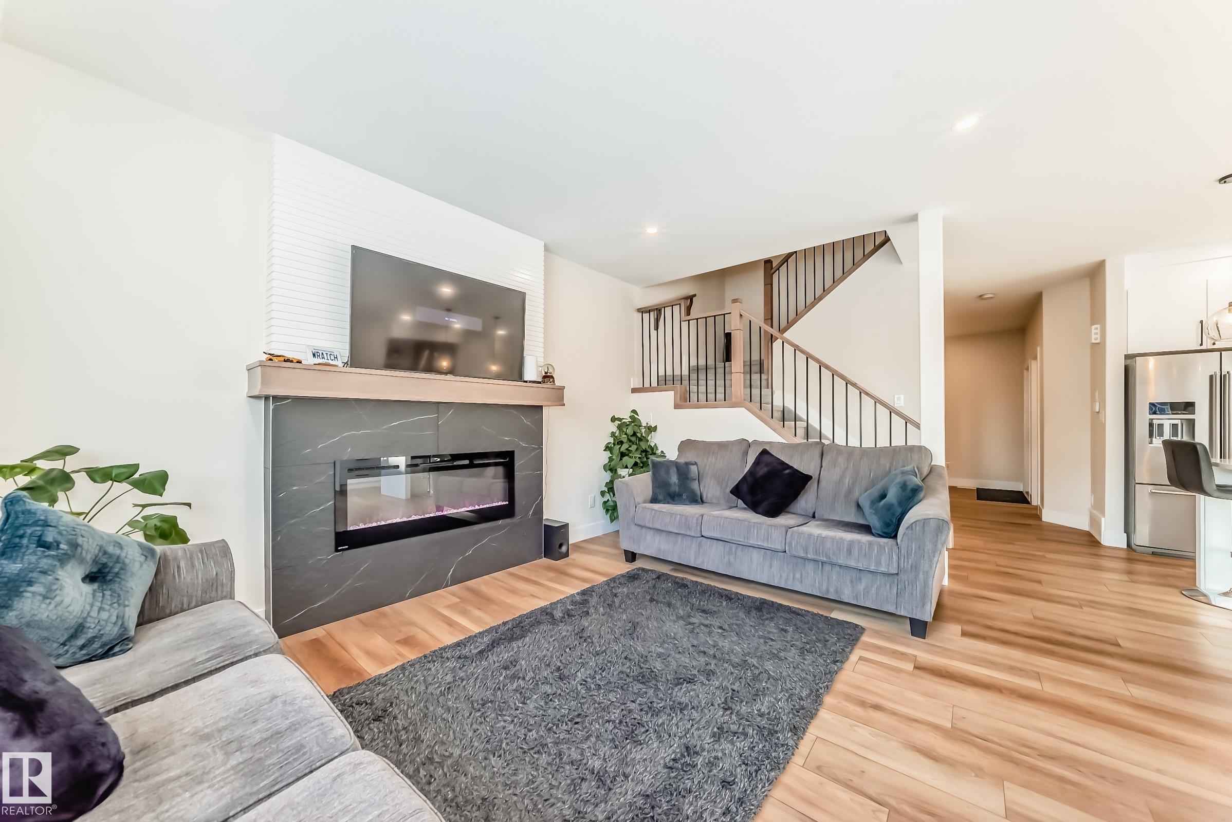 Welcome to this beautifully built home by a master builder in the sought-after community of Blackstone, located close to all major amenities. This well-designed floor plan offers 4 bedrooms, 3 bathrooms, a bonus room, and an upper-floor laundry. The south-facing backyard allows for plenty of natural light throughout the day.Upgrades include: ceiling-height cabinets, a large walk-in pantry, built-in appliance package setup, luxury vinyl plank flooring on the main level, quartz countertops throughout, maple railing with spindles, MDF shelving, premium zebra blinds, and an indent ceiling in the primary bedroom. The primary suite features a 5-piece ensuite with double sinks, a soaker tub, and an upgraded standing shower. Additional features: garage drain, side entrance to the basement, fully fenced and landscaped yard, fridge with water dispenser, and BBQ gas line for your future deck. Situated on a rare lot offering extra road parking right in front. A must-see home combining quality craftsmanship and modern