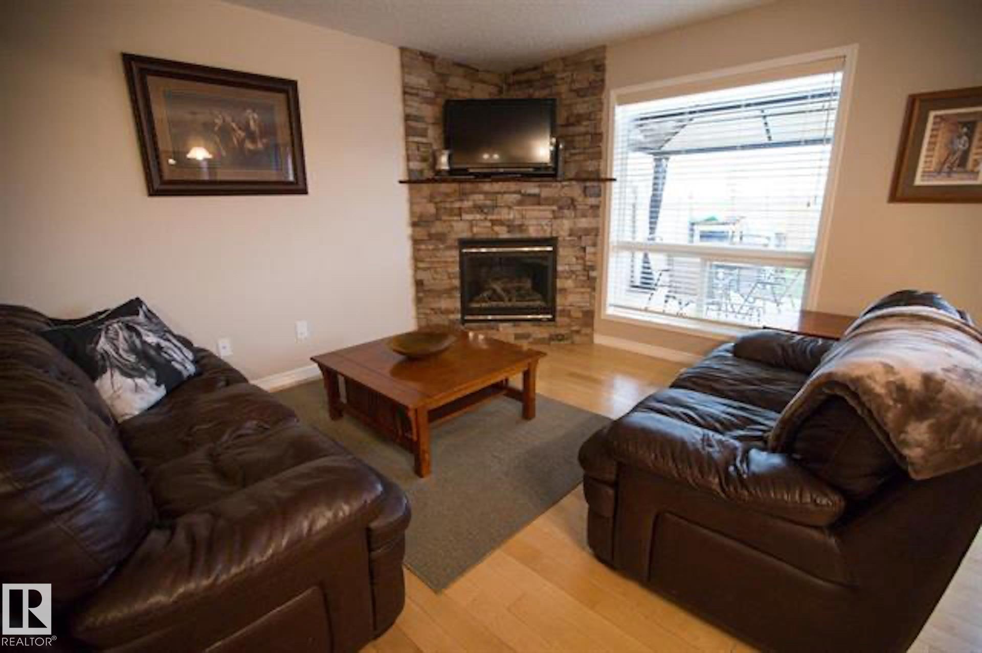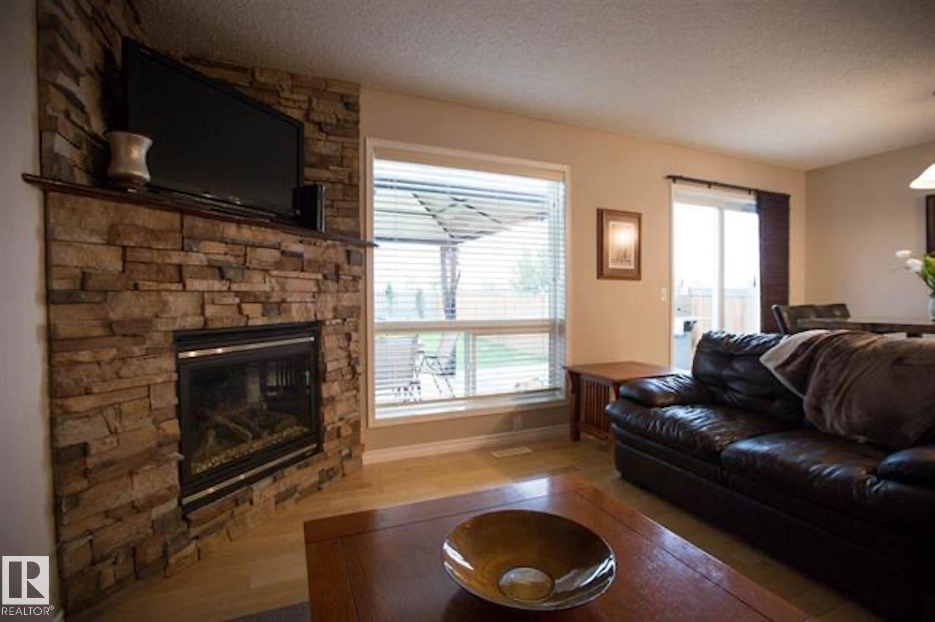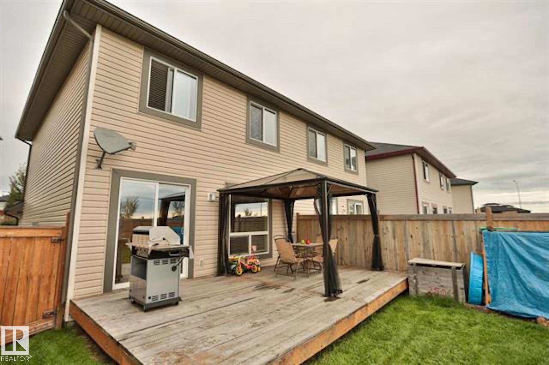 Welcome Home! This beautiful 3 bedroom 2.5 bathroom duplex in South Fort, Fort Saskatchewan is perfect for families. Located in a family friendly neighborhood close to schools, bus stops, and the recreation centre, with quick access to the highway. Enjoy an open concept main floor featuring a spacious kitchen with island overlooking the living room with a corner stone gas fireplace. Patio doors lead to a large deck with a gazebo and a landscaped private backyard with a fire pit perfect for relaxing or entertaining. The unfinished basement offers plenty of storage and laundry facilities. Upstairs, you'll find 3 bedrooms and a full bathroom, including a master suite with ensuite shower. Additional highlights include a single garage and extra on-street parking, plus a convenient half bathroom on the main floor. Tenant responsible for utilities. Pets considered with approval.