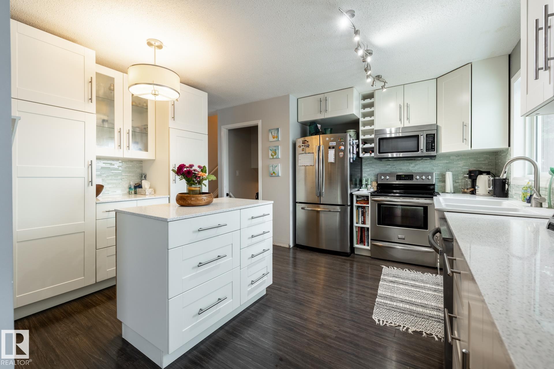 Welcome to the family-friendly community of Dunluce! This well-loved 4-level split backs directly onto a beautiful park, offering privacy, views, and unbeatable walkability. The home features an open, bright kitchen overlooking the south-facing backyard, plus patio doors off the dining room leading to the deck?perfect for summer hosting. Inside, you?ll find three separate living spaces to spread out and enjoy, welcoming main-floor living room off the dining area, bright, spacious lower-level family room with a cozy brick wood-burning fireplace and a media/rec room in the basement for movie nights or play space! This home includes 3 bedrooms and 2 full bathrooms + an additional half bath, offering excellent functionality for families. Updates include newer vinyl windows throughout, GreenFox front door, and an upgraded patio door. The oversized double attached garage provides plenty of parking and storage. With a south-facing yard and park access right out your back gate!