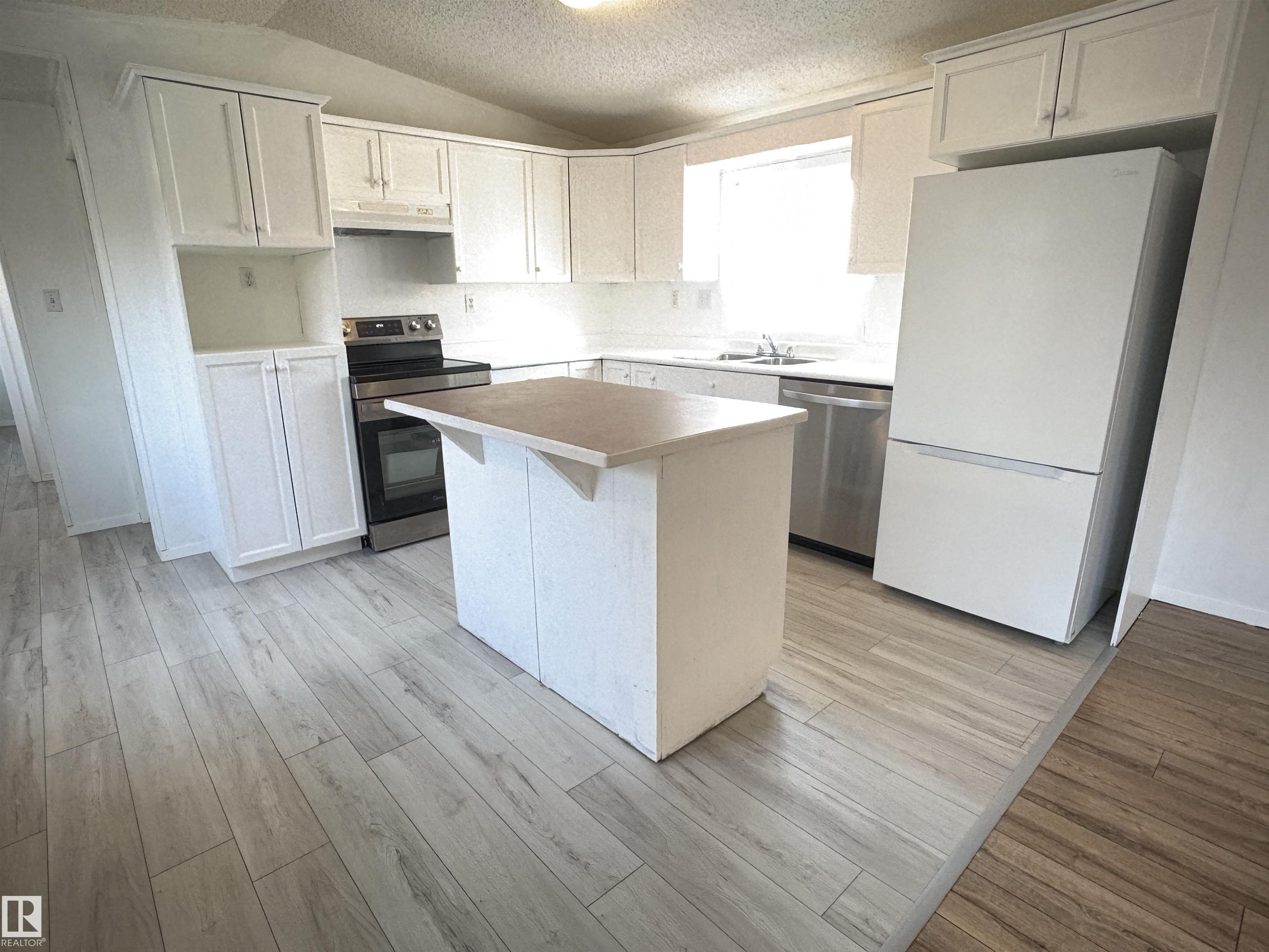 Get into home ownership in this renovated 3 bedroom, 2 bathroom home in one of the best locations BACKING A POND in Parkland Village! This 1100 sq ft bungalow will feel like home as you walk in the front door. Large entry for people to remove coats and boots! Open concept floorplan with large living room complete with bay window. Move into the kitchen with the move-able island & decent storage space! The dining area is easy to expand to host family & friends. Master suite features a large window, big wall of closets and a 4pc ensuite. 2 more bedrooms are a great size for kids or guests or to use as a home office. Great outdoor space with large deck complete with gazebo for watching nature across the pond. Even a very private garden spot too! Parking pad for 2-3 vehicles! Central A/C (2019) Roof (2019) Paint (2025) Flooring (2025) Appliances (2025) Toilets & Faucets (2025) and more! Easy access to Yellowhead to lead you anywhere you want to go!