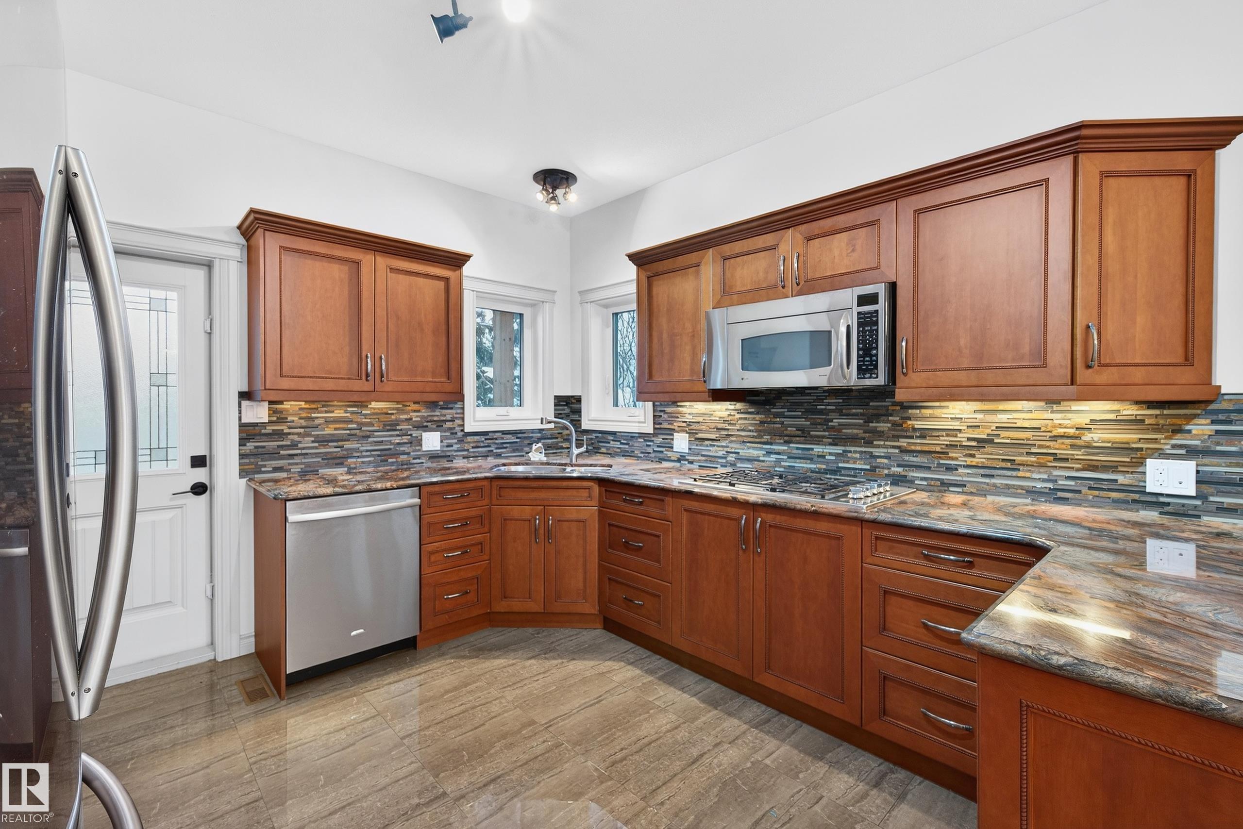 Newer bungalows of this scale, so close to all central amenities are RARE - but here it is - 4,000 sq. ft. of living space with a fully finished in-law suite. This home showcases superior craftsmanship and a layout ideal for multi-generational living. The main level features vaulted ceilings, abundant windows, and a stunning custom kitchen with loads of cabinetry, granite countertops. peninsula island/double ovens/gas stove and a large pantry. With 5 bedrooms, 3 full baths and a huge mudroom/main laundry area this home is ideal for large or multi-generational families. Enjoy year-round comfort with in-floor heating on both levels and AC in the summer. The lower level includes a spacious in-law suite with its own fully equipped kitchen, large living area, washer/dryer, tons of storage and private bedrooms?perfect for extended family or guests. Custom built by the owner for his family, this home offers exceptional quality in a quiet, family-friendly neighborhood on a 50' x 148' lot with a TRIPLE GARAGE!
