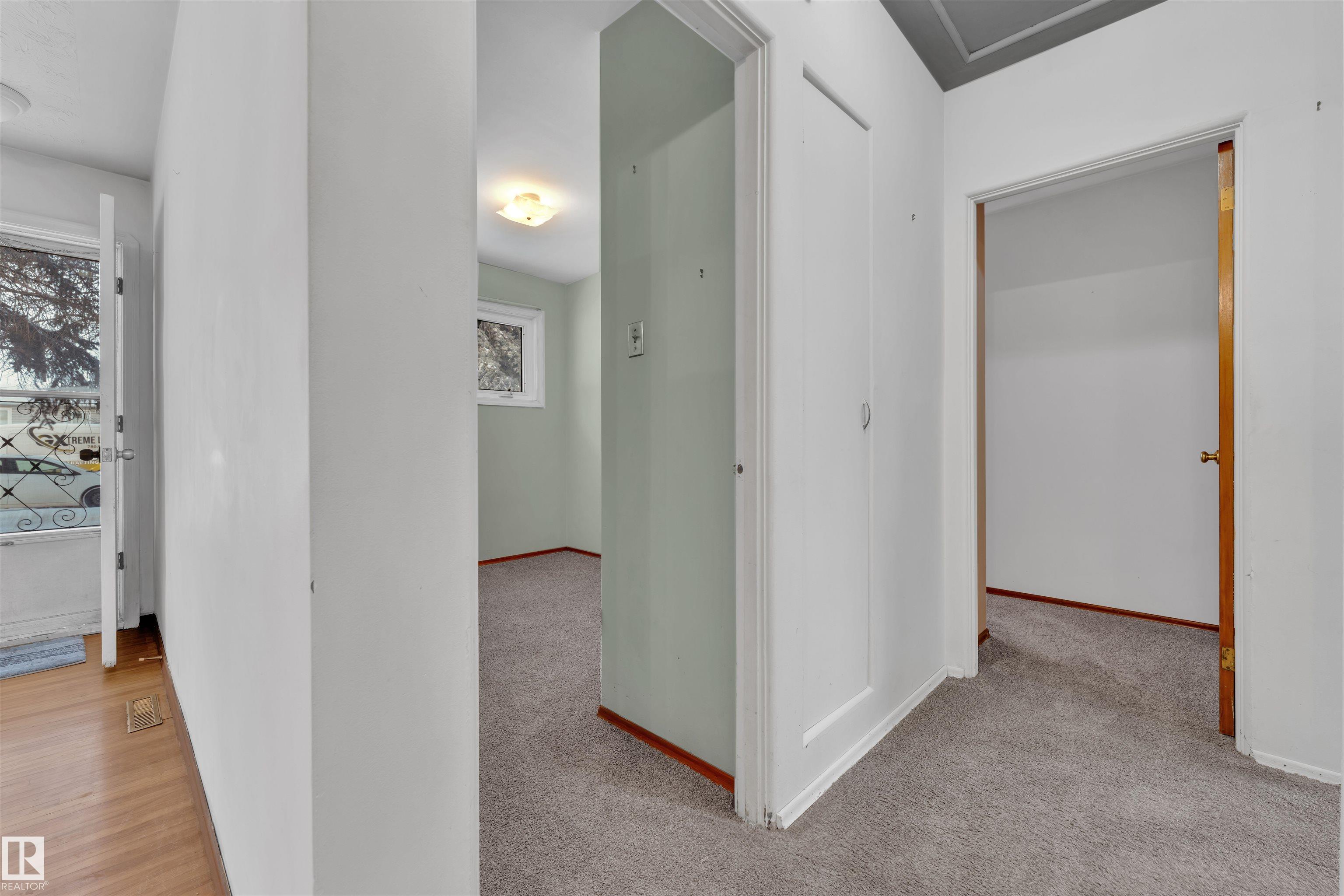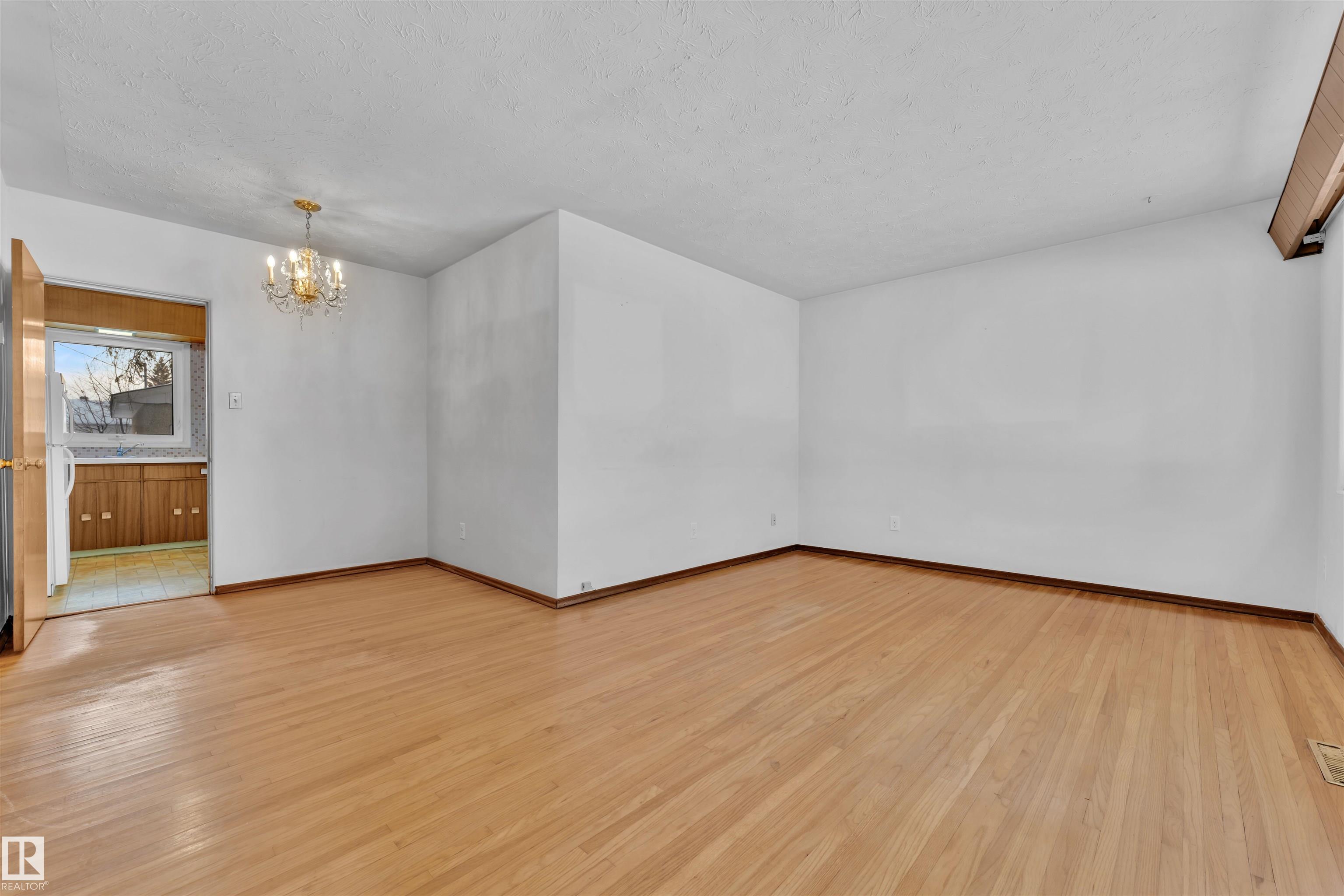 Located at charming neighbourhood of Mayfield Area ! This 3 bed bungalow offers an open floor plan all on one level-NO BASEMENT. The Large eat-in kitchen features custom solid red cedar cabinets.The Living/dining room features a large picture window, oak red hardwood floors & a crystal chandelier. All three bedrooms are decent sized & feature large built in closets. Renovated 4pc bath features a porcelain tile surround. A Very private backyard with mature trees & access to oversized DOUBLE garage. Upgraded features include electrical 100 AMP house/garage, newer shingles house/garage and maintenance free fencing. In 2021 painted throughout, new flooring (in kitchen, closets & bath), new carpeting, new attic insulation. Quick access to highway, parks, schools, buses, DOWNTOWN & WEM. Don't miss this opportunity.