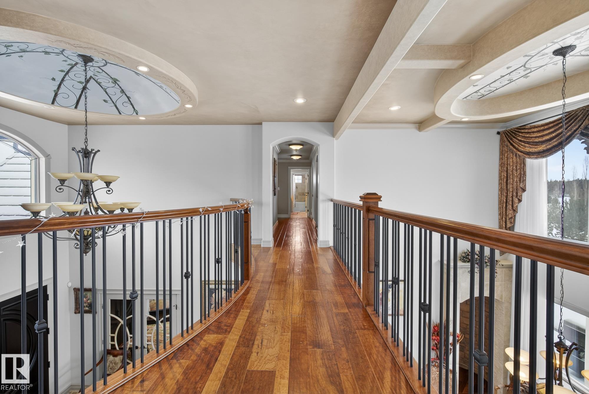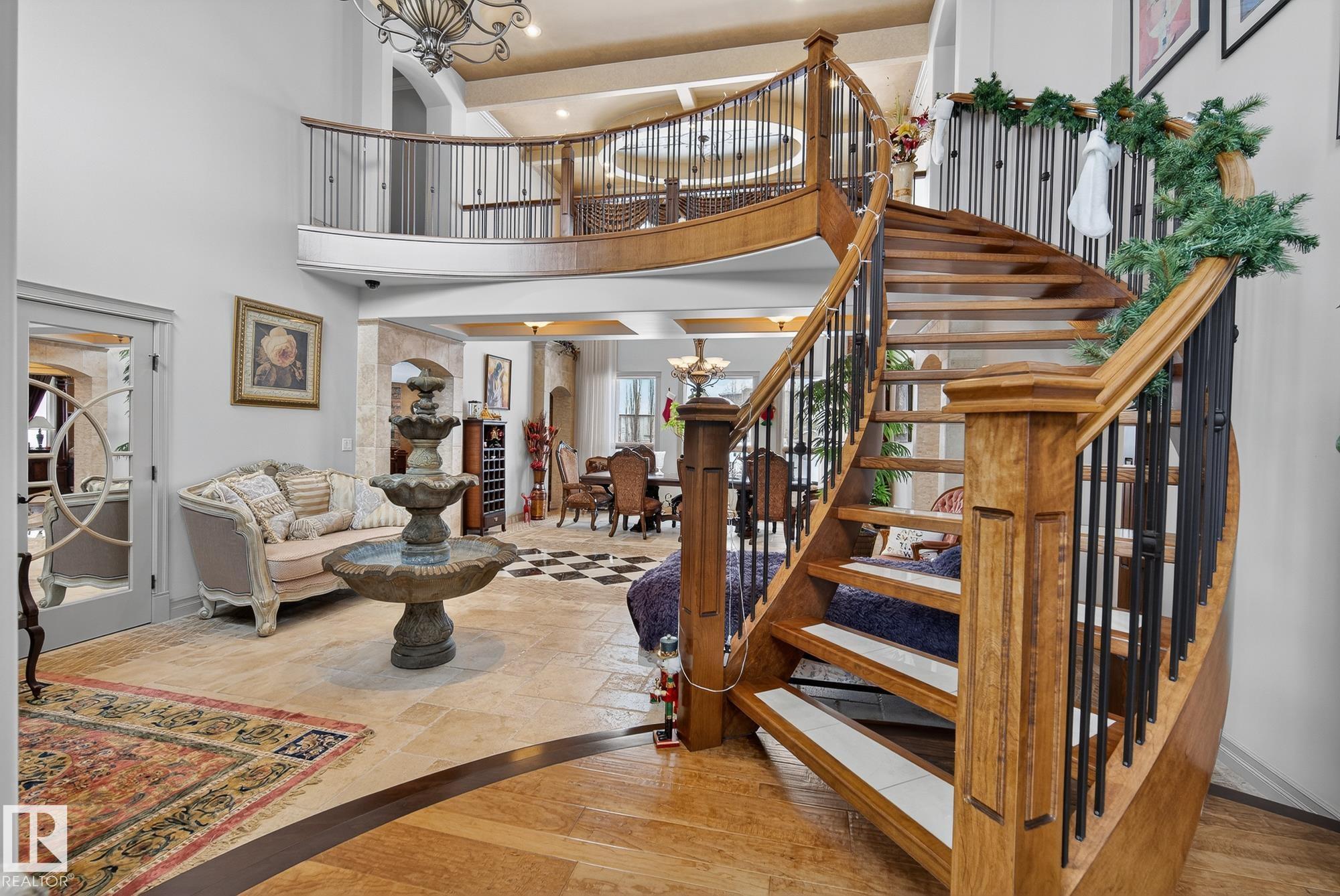 Welcome to this stunning Sturgeon County home, just under 10 minutes from St. Albert. Situated on a half-acre lot, this property offers over 3600 sq. ft. above grade across three beautifully finished levels. With six spacious bedrooms, including two with their own en suites, this home is dedicated to accommodate families of all sizes. The layout features hardwood finishes, cozy fireplaces, and a bright kitchen with stainless steel appliances. Enjoy movie nights in the dedicated theatre room and take advantage of countless additional upgrades throughout. A rare opportunity to own a home that blends space, comfort, and convenience.