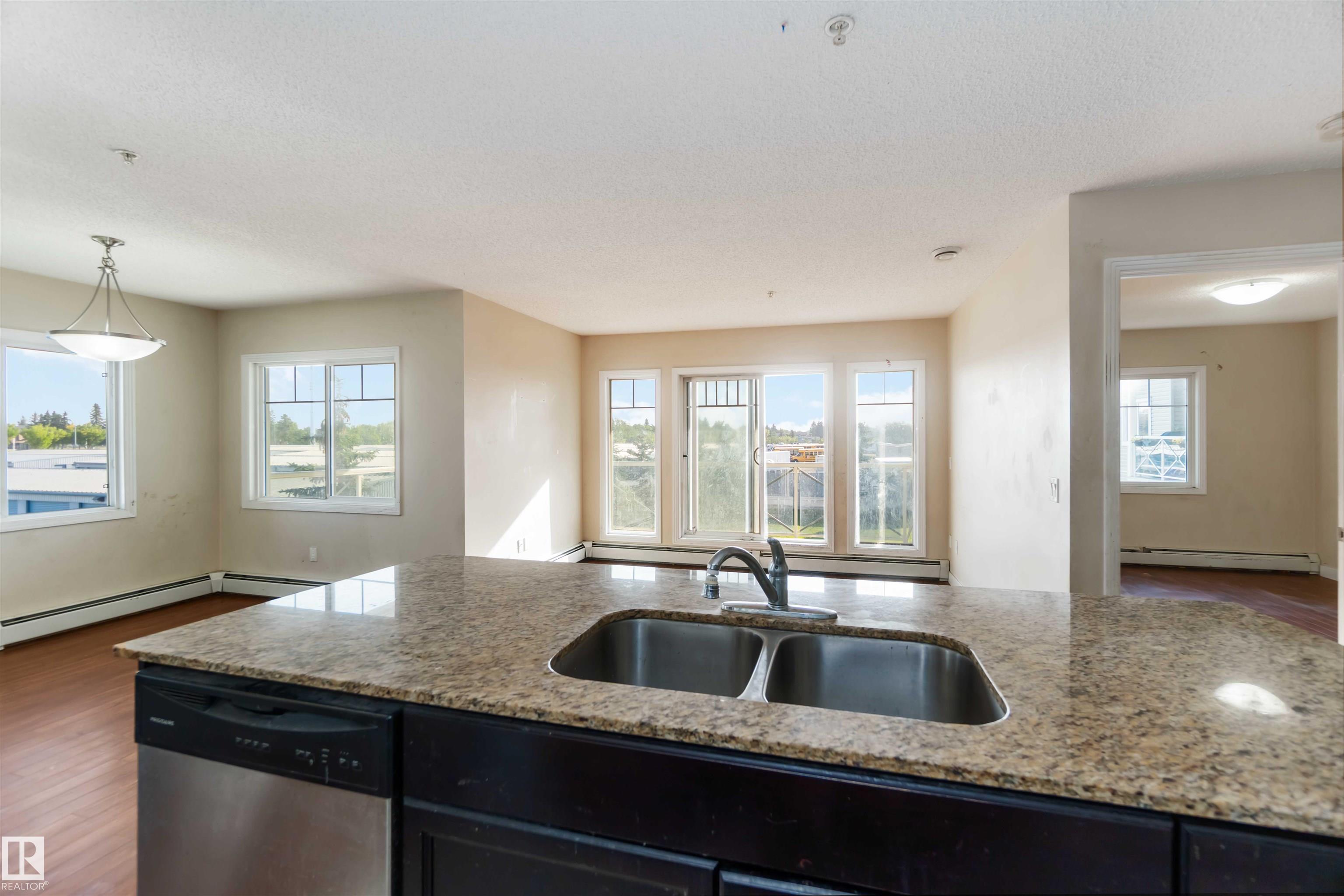 If you love bright, open spaces & easy living, this corner-unit condo delivers. Inside, you?ll find stone counters, a large island, stainless steel appliances & an open-concept layout that truly lives like a bungalow?complete with a pantry, great storage & a separate dining space for family dinners. Large windows make the home warm & inviting, while the primary offers a walk-through closet & 3pc ensuite. The 2nd bedroom works for kids, guests or a roommate. It could use a coat of paint, but at foreclosure pricing, a weekend of effort means INSTANT EQUITY & your personal touch. Enjoy plenty of sun on your wrap-around balcony, perfect for morning coffee or relaxing BBQ nights. n-suite laundry, titled underground parking & a walkable location near shopping, schools, transit & quick Henday access complete the package. Parks, playgrounds & daily amenities are steps away. A smart pick for first-time buyers, down sizers or investors wanting affordability, convenience & opportunity.