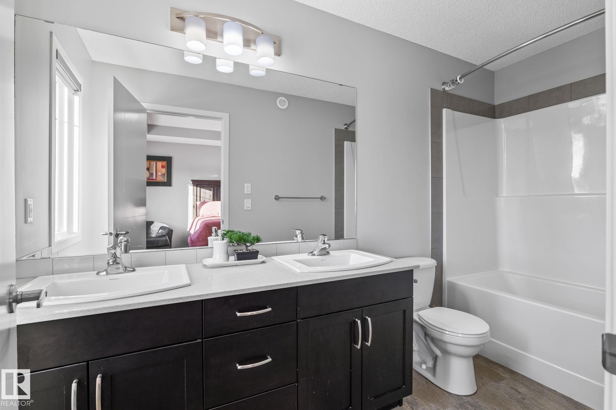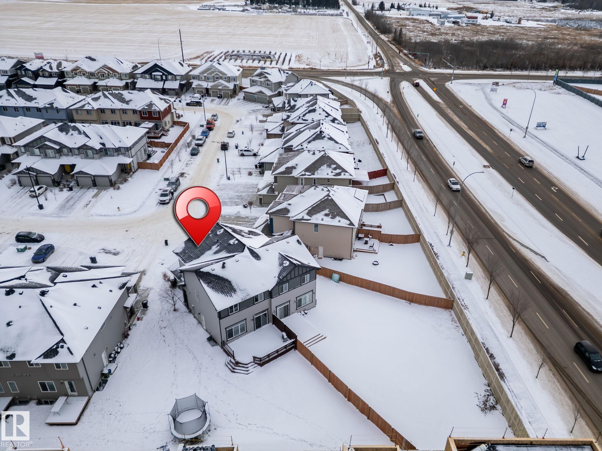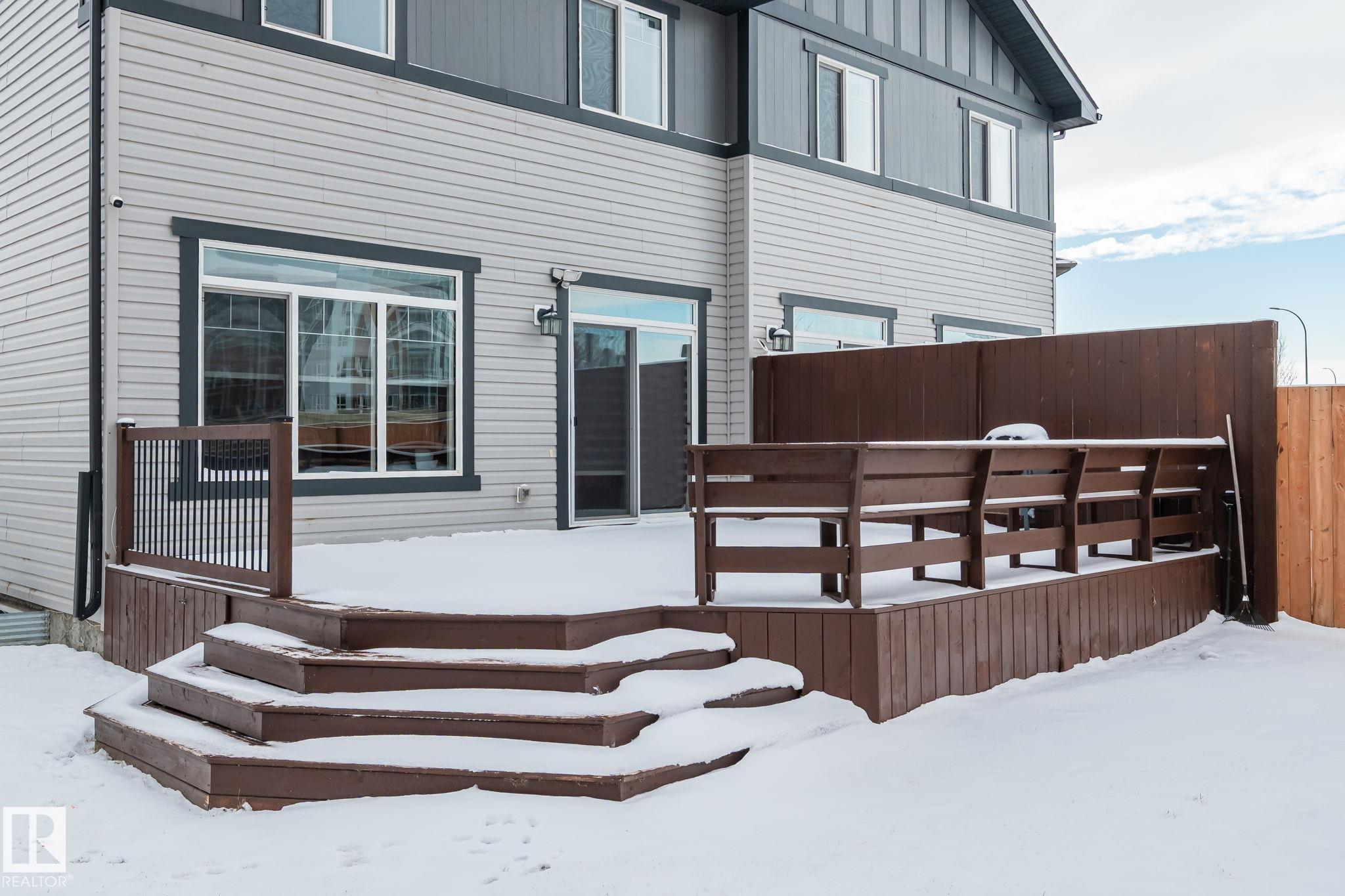Welcome to Allard ? one of the most prestigious communities in Southwest Edmonton, where convenience meets comfort. This beautifully maintained half-duplex offers a DOUBLE GHARAGE, a separate SIDE ENTRENCE to the basement, and a generous PIE -LOT featuring a premium-finished, oversized deck. Inside, the upgraded kitchen complements the open-concept layout, seamlessly connecting the living and dining areas with views of the expansive backyard. The upper level includes three spacious bedrooms, including a master suite with its own ensuite, along with a versatile bonus room perfect for a home office or loft. The unfinished basement comes with a separate side entrance, providing an excellent opportunity to develop a future legal suite. Located close to schools and just 15 minutes from the airport, this home offers both comfort and convenience. A must-see property!