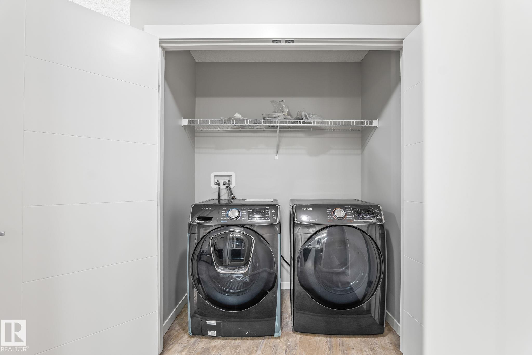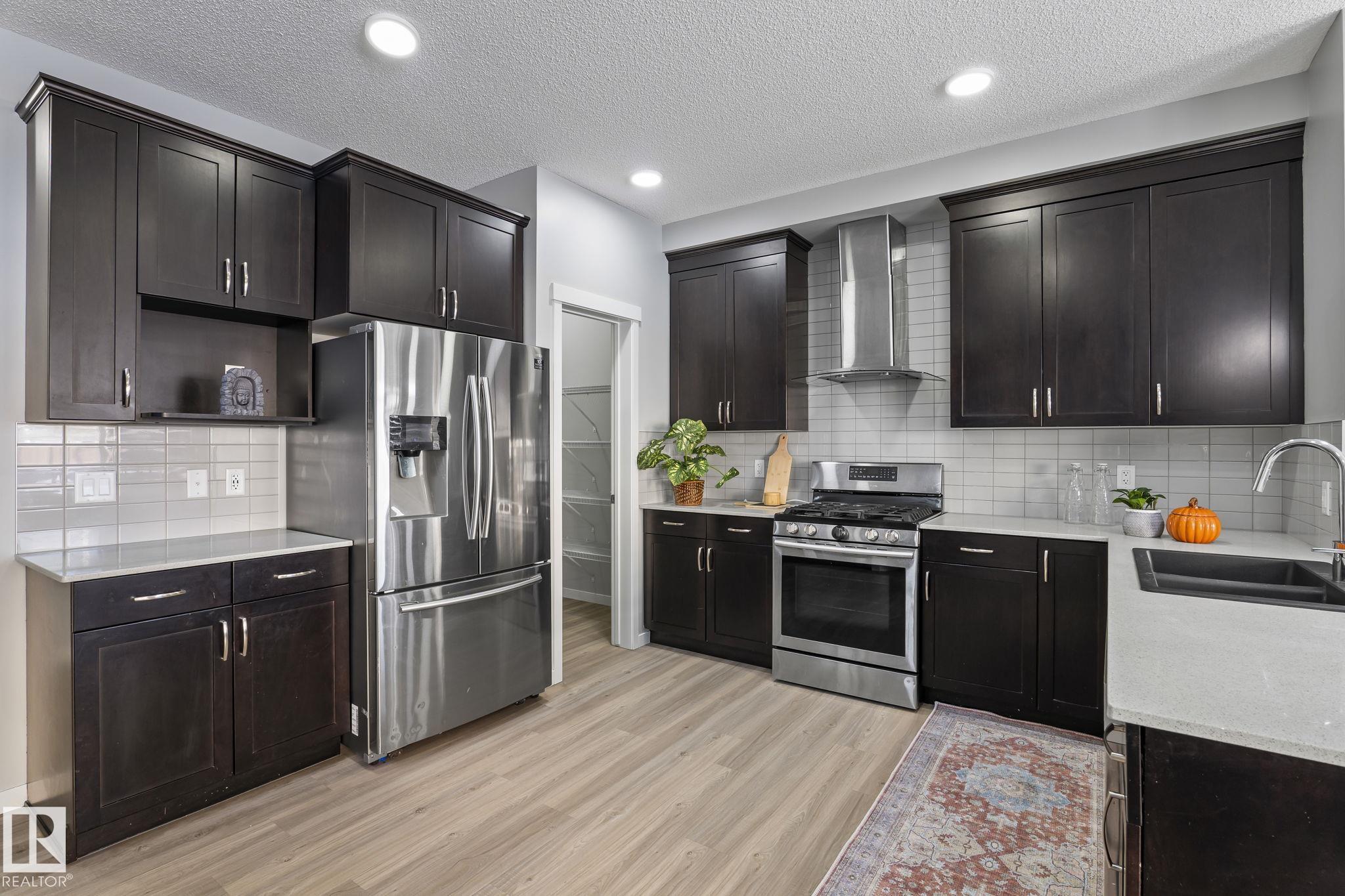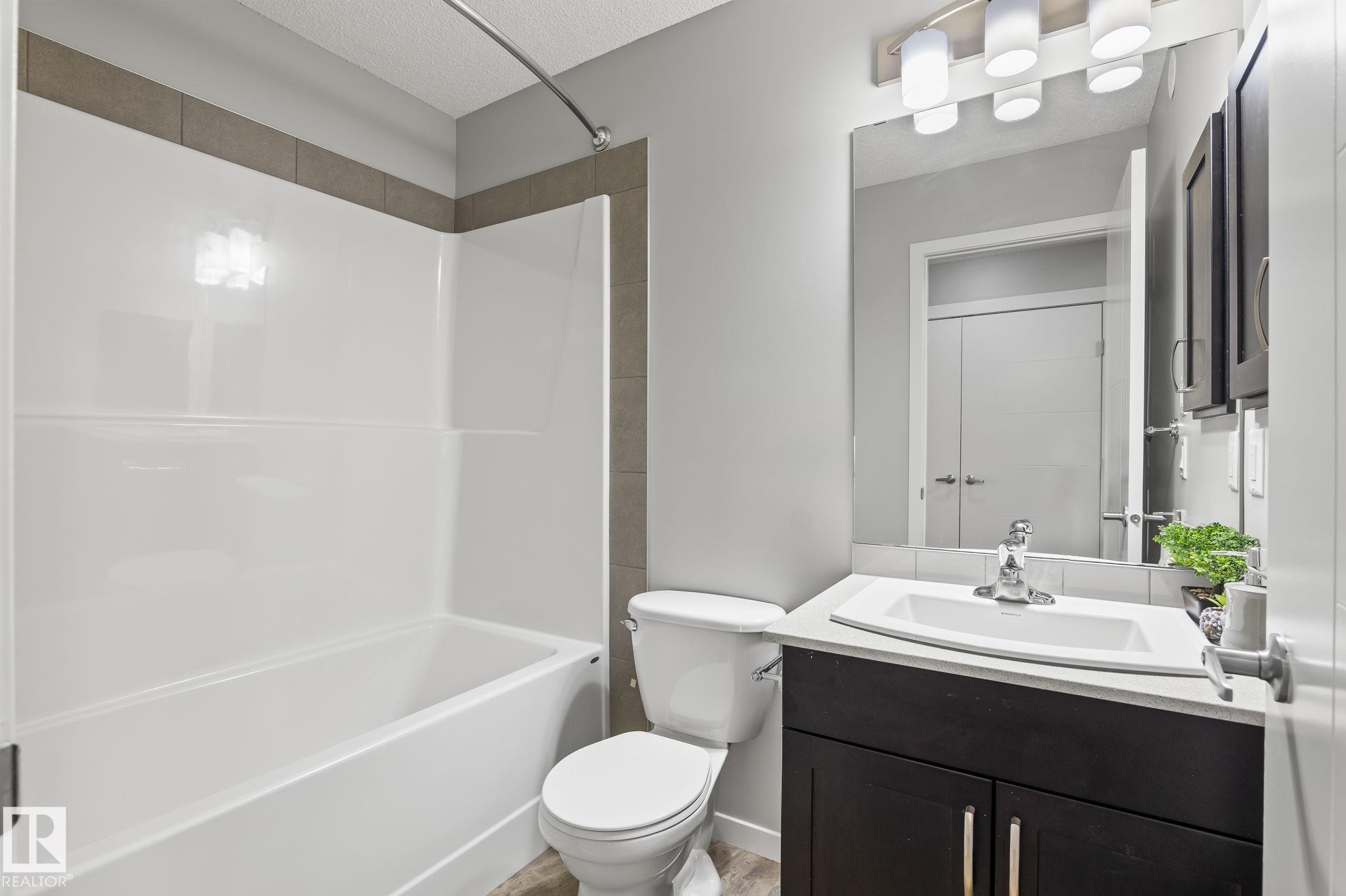 Welcome to Allard ? one of the most prestigious communities in Southwest Edmonton, where convenience meets comfort. This beautifully maintained half-duplex offers a DOUBLE GHARAGE, a separate SIDE ENTRENCE to the basement, and a generous PIE -LOT featuring a premium-finished, oversized deck. Inside, the upgraded kitchen complements the open-concept layout, seamlessly connecting the living and dining areas with views of the expansive backyard. The upper level includes three spacious bedrooms, including a master suite with its own ensuite, along with a versatile bonus room perfect for a home office or loft. The unfinished basement comes with a separate side entrance, providing an excellent opportunity to develop a future legal suite. Located close to schools and just 15 minutes from the airport, this home offers both comfort and convenience. A must-see property!