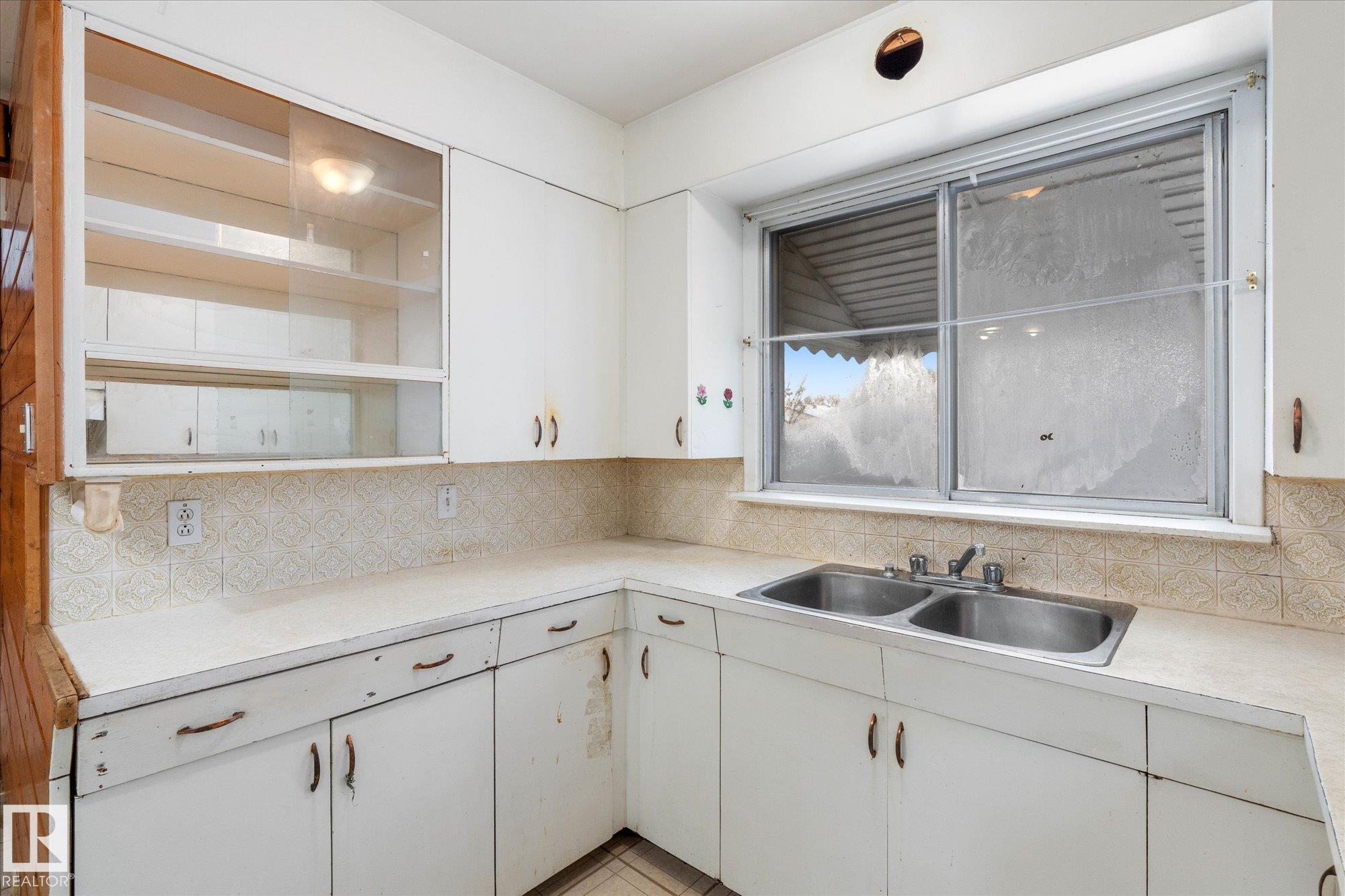 HUGE POTENTIAL in this 4 bedroom, 1.5 bath home centrally located in the neighborhood of Balwin. Close to Princeton School and many amenities. Raised bungalow with 3 bedrooms up and 1 bedroom down - HUGE basement windows all above ground level! Separate side entrance. Full 4-pc bath upstairs with a 1/2 bath down (potential to add shower). TONS of storage space! Double detached garage with SEPARATE garage doors, back alley access and extra parking spaces. Fully fenced yard with mature apple trees. Property is zoned RMS. Update this property for affordable family living, add a suite below and rent top & bottom or develop a multi-family unit. The possibilities are all here!