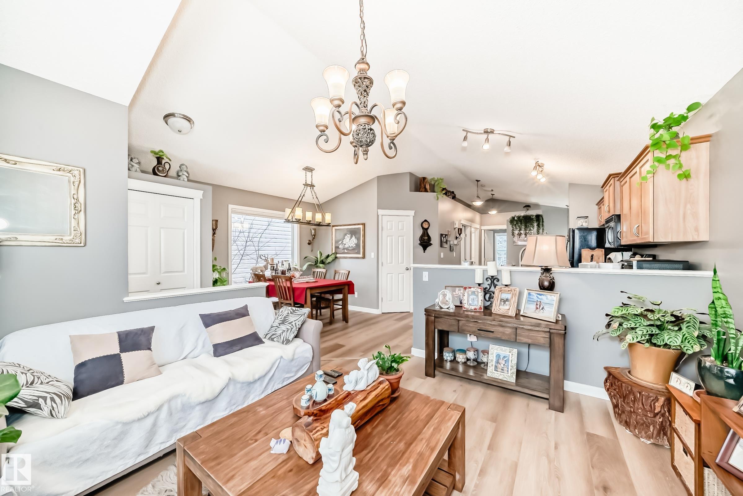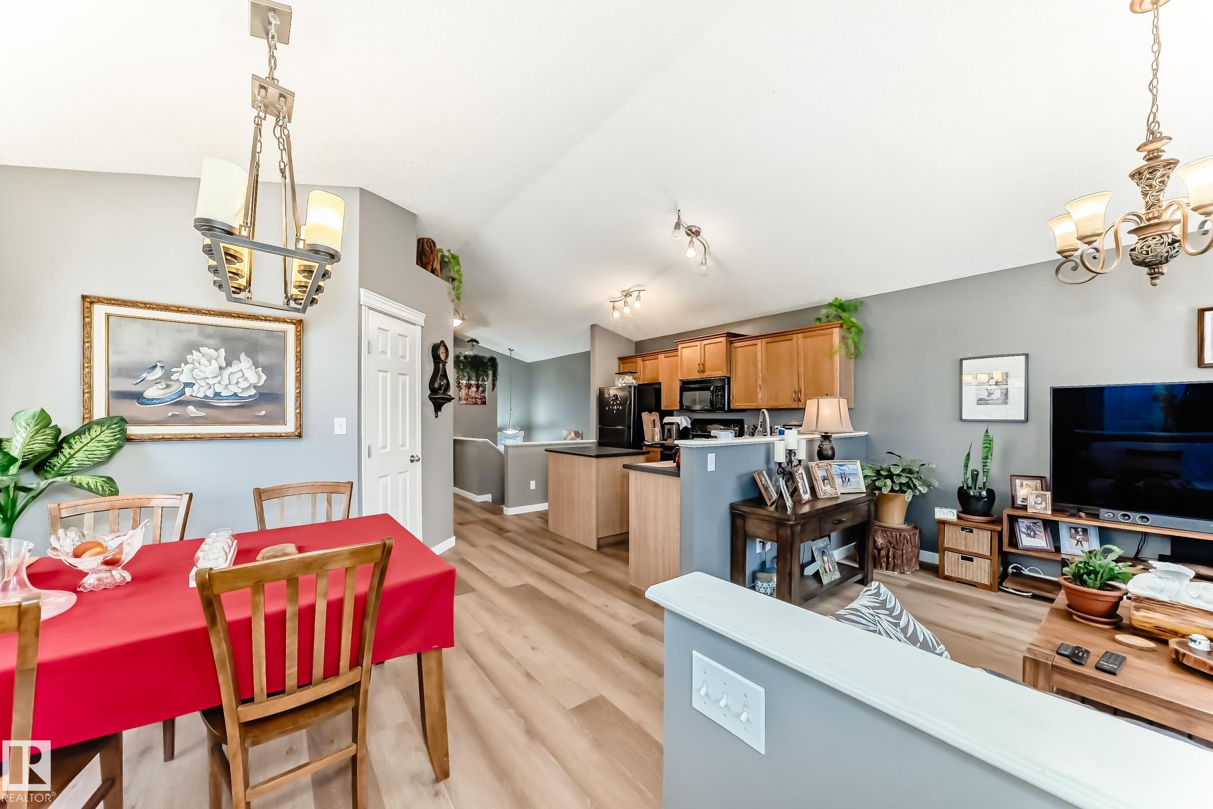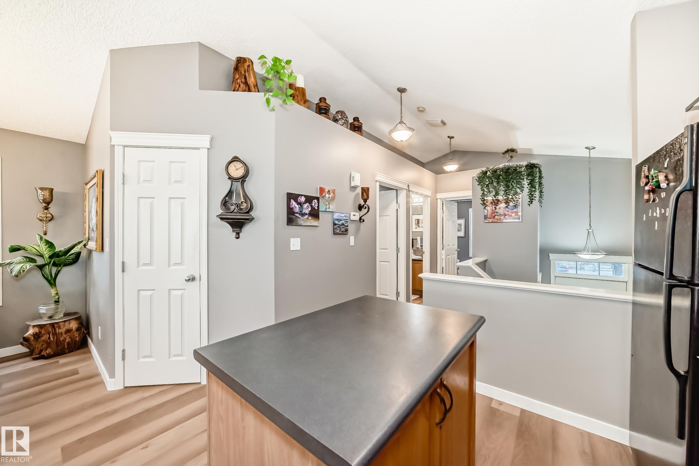 Beautifully upgraded and meticulously maintained 2+1 bedroom, 2 bathroom bi-level in the heart of Terwillegar, steps from the Rec Centre and Leger Transit Station. The main floor features vaulted ceilings, open-concept living, and luxury high-end flooring throughout the kitchen, dining, and living areas. Two comfortable bedrooms and a 4-pc bath complete the upper level. The bright lower level offers full-size windows, a large rec room with wet bar, an additional bedroom with walk-in closet, another 4-pc bath, and generous storage with a separate laundry room. Recent major upgrades include a new 2025 roof shingles on the house, new vinyl flooring and new hot water tank. Exterior features include low-maintenance landscaping with artificial turf, a large brick patio, tiered retaining wall, and a spacious double garage. A move-in-ready home offering comfort, quality, and unbeatable location.