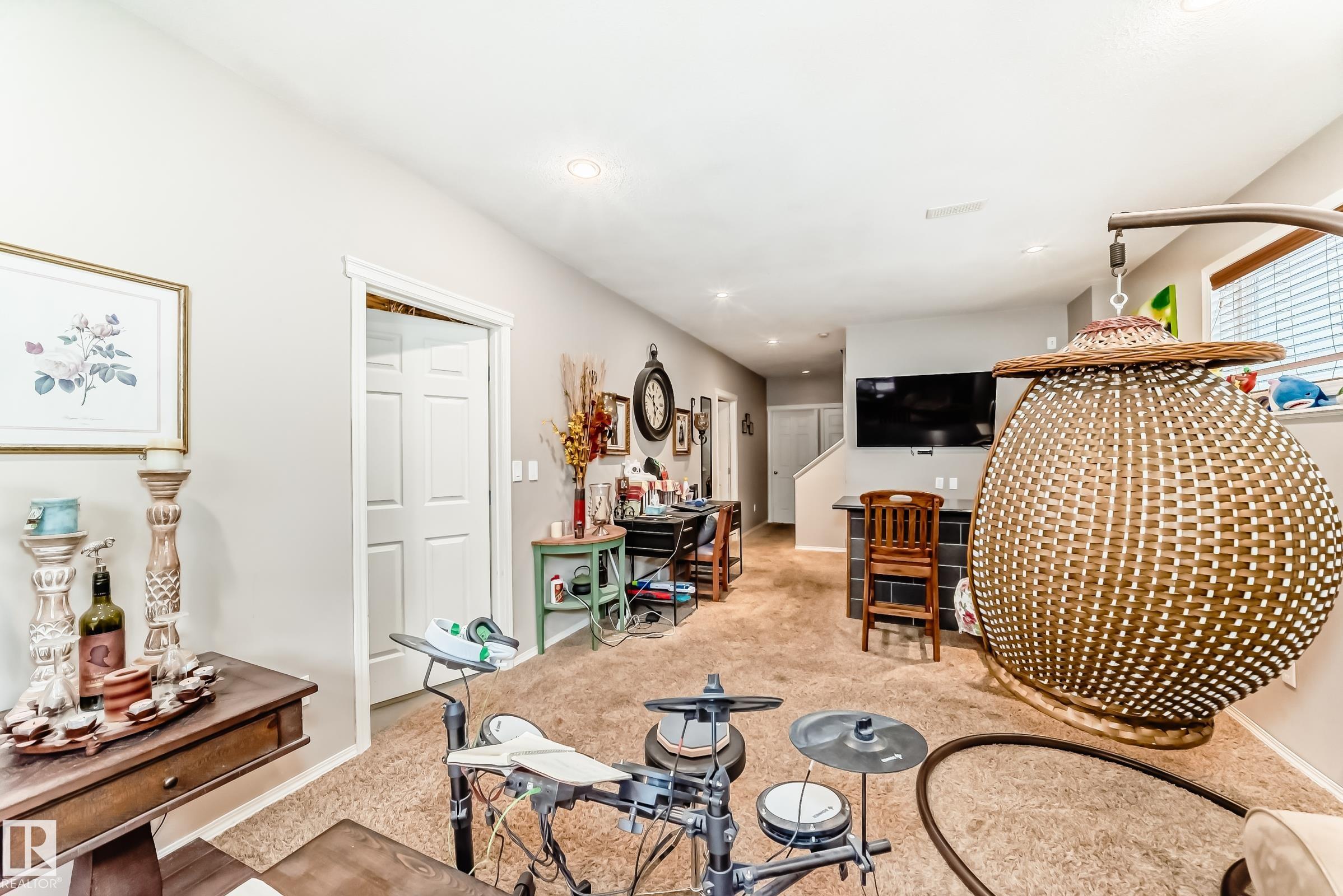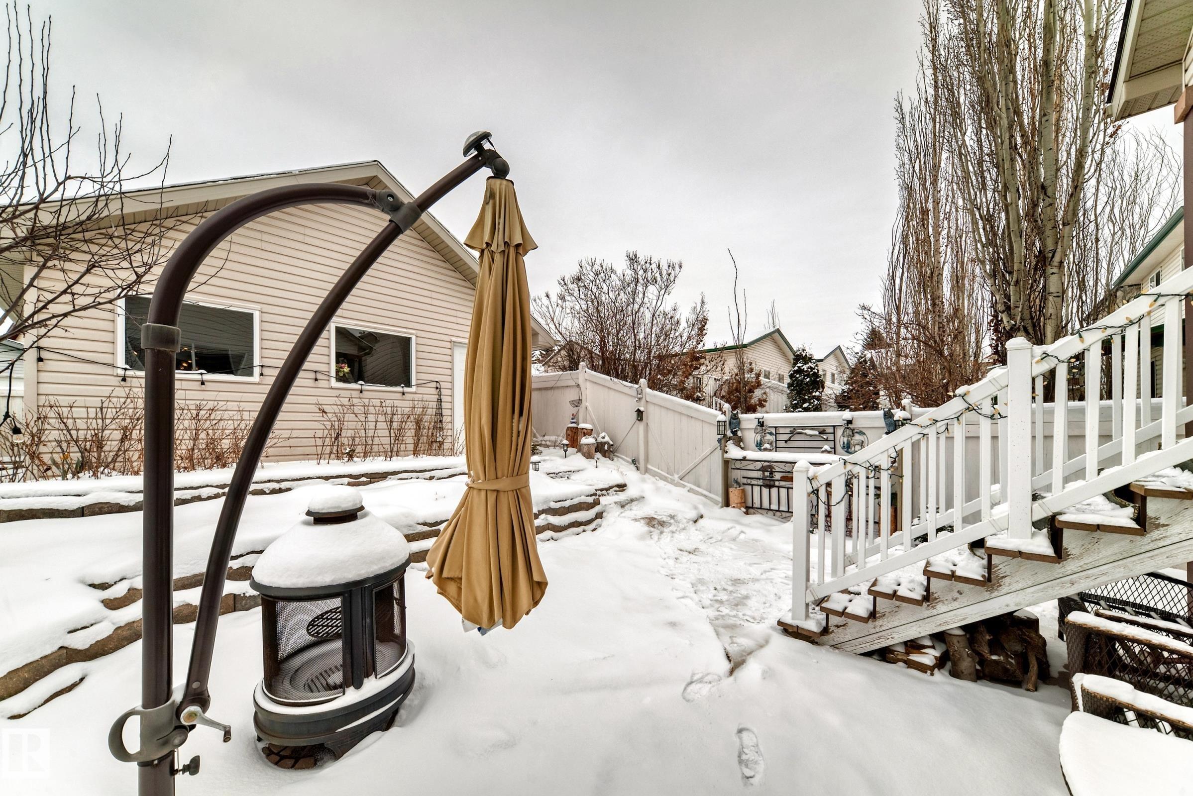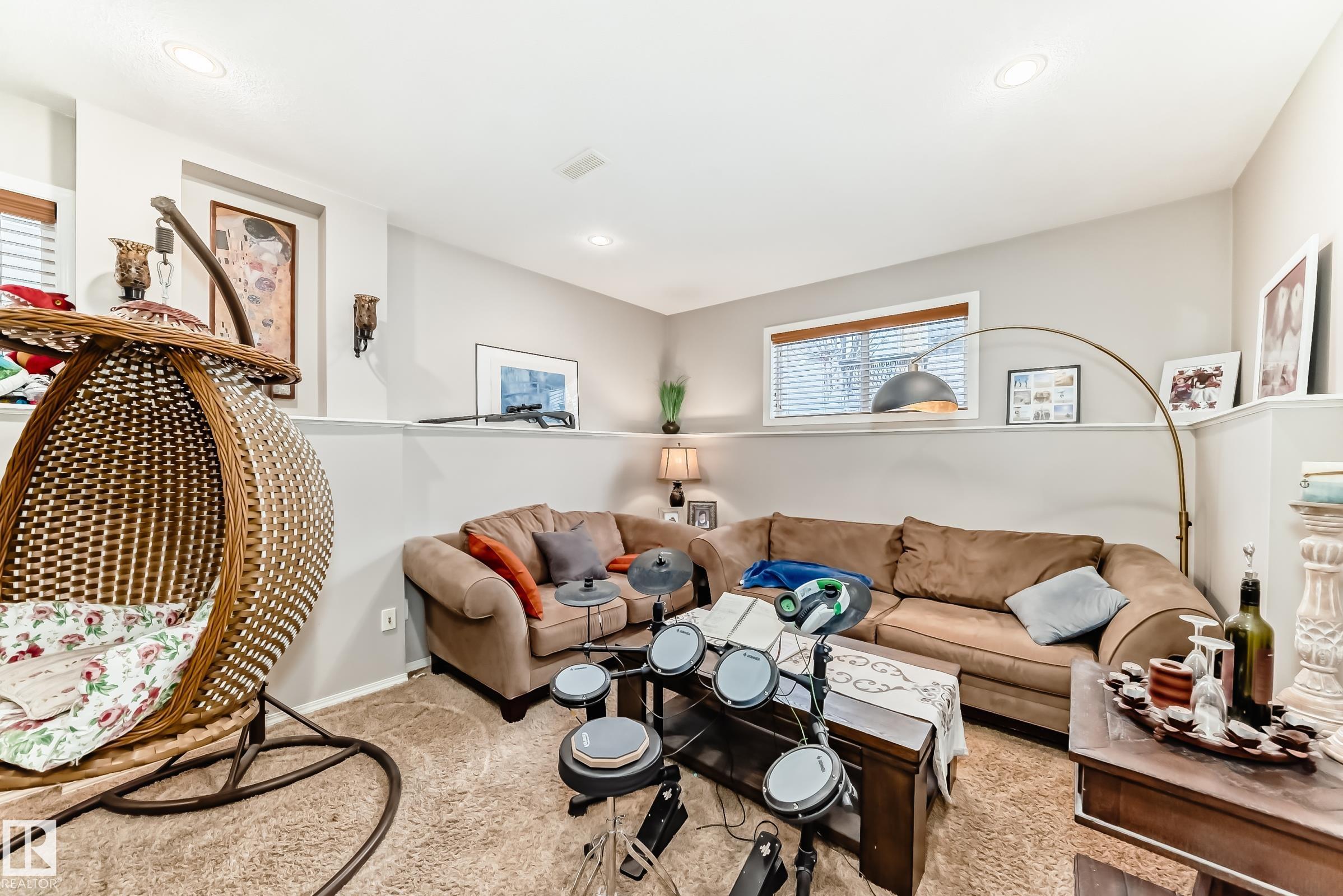 Beautifully upgraded and meticulously maintained 2+1 bedroom, 2 bathroom bi-level in the heart of Terwillegar, steps from the Rec Centre and Leger Transit Station. The main floor features vaulted ceilings, open-concept living, and luxury high-end flooring throughout the kitchen, dining, and living areas. Two comfortable bedrooms and a 4-pc bath complete the upper level. The bright lower level offers full-size windows, a large rec room with wet bar, an additional bedroom with walk-in closet, another 4-pc bath, and generous storage with a separate laundry room. Recent major upgrades include a new 2025 roof shingles on the house, new vinyl flooring and new hot water tank. Exterior features include low-maintenance landscaping with artificial turf, a large brick patio, tiered retaining wall, and a spacious double garage. A move-in-ready home offering comfort, quality, and unbeatable location.