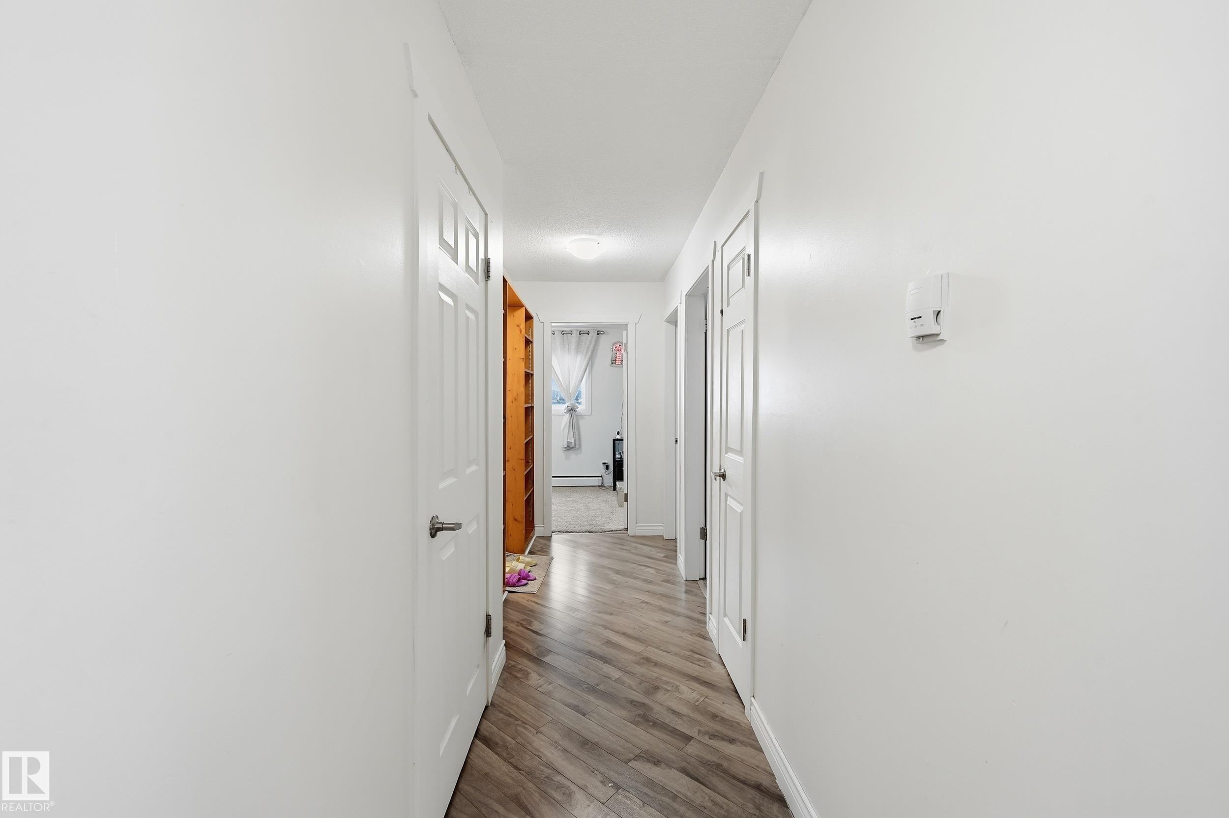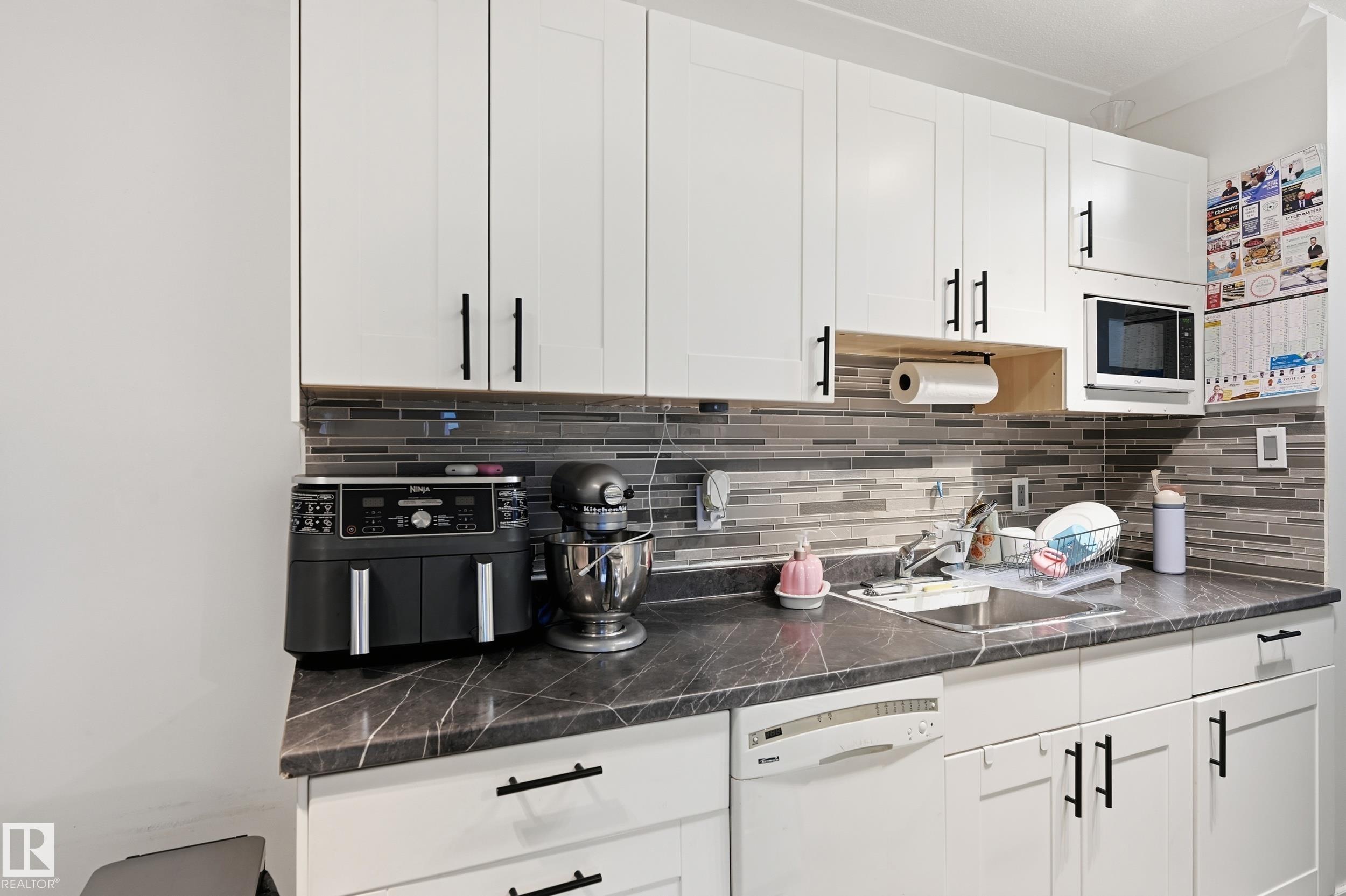 Welcome to Queen Mary Park, a centrally located community with quick access to NAIT, LRT, Downtown, and Grant Macewan. This top-floor, corner-unit 3-bedroom condo is light and bright, featuring south and west exposures and a quiet setting. Freshly painted throughout, the home offers modern flooring and a white kitchen with contemporary backsplash and updated countertops?perfect for entertaining. Enjoy excellent storage with insuite storage featuring built-in shelving and space for a small freezer, plus hallway bookcases ideal for display and organization. The spacious primary bedroom comfortably fits full-sized furniture, complemented by two additional bedrooms for family, guests, or a home office. Located in a non-smoking, pet-free building, this well-kept unit is ideal for comfortable, convenient city living.
