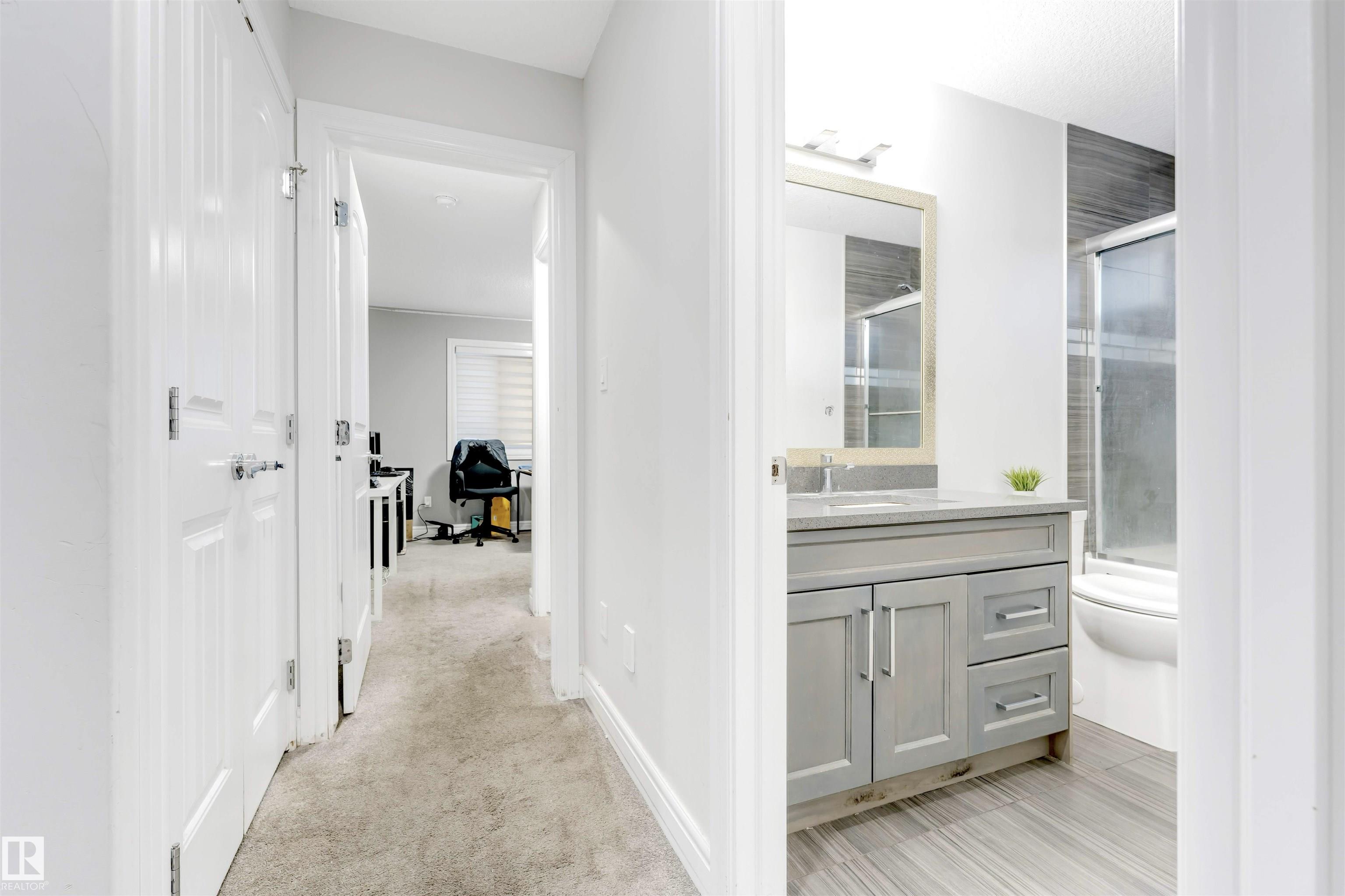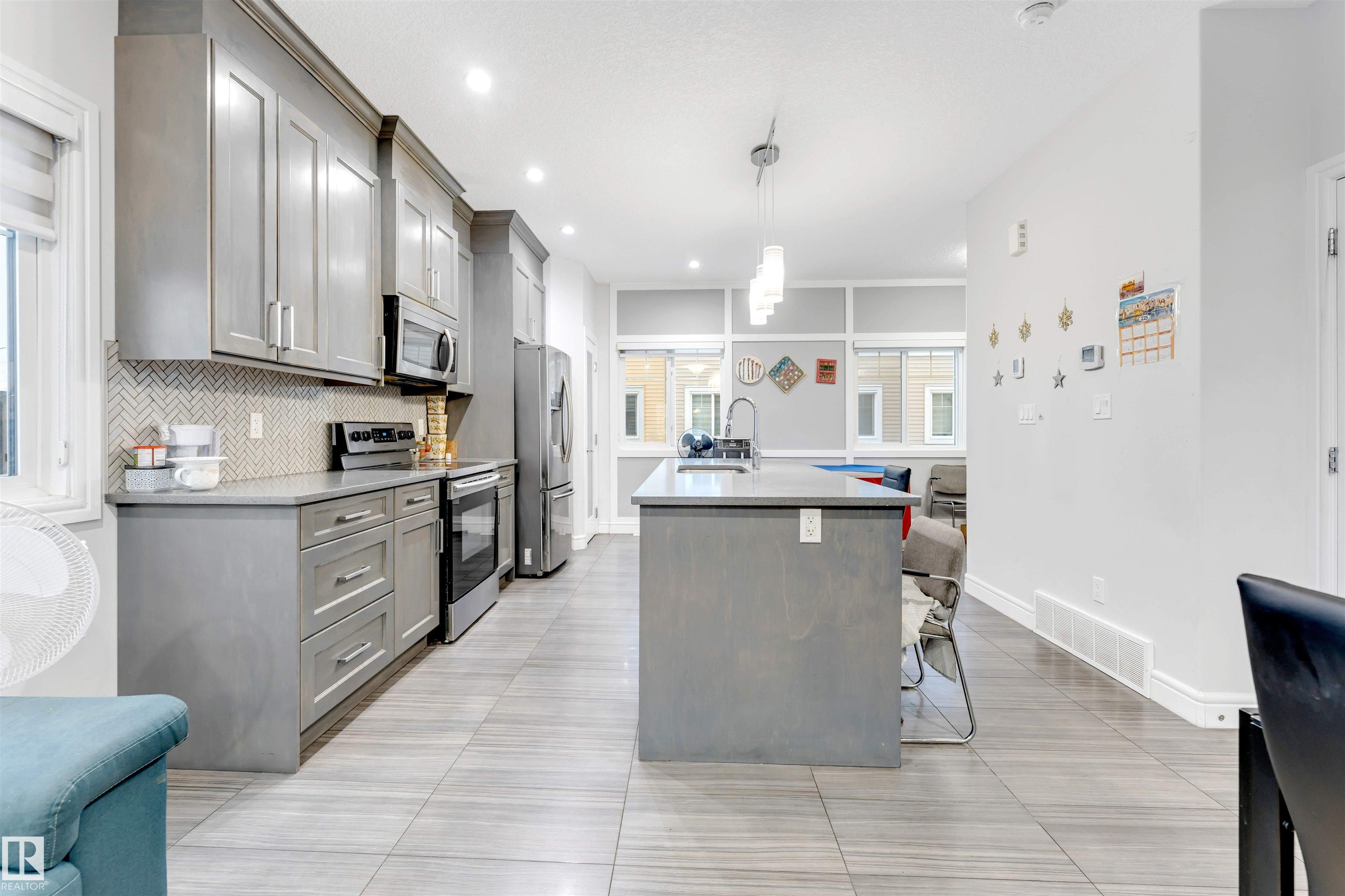 LOCATION LAUREL! Bright and modern CORNER UNIT TOWNHOME in the desirable and family-friendly community of Laurel, offered at an Attractive Price with LOW CONDO FEES. This 3-storey home boasts EXTRA WINDOWS for abundant natural light, an open-concept layout, and a functional kitchen with Quartz Countertops, Stainless Steel appliances, pantry, and a Main-floor Half Bathroom. Upstairs features 3 Bedrooms, 2 Full Bathrooms, and convenient Upper-Level Laundry. Property also includes Finished Double Car Garage Attached with an Office Space on that level. Positioned Right beside Visitor Parking for added convenience. Ideally located close to SCHOOLS, PARKS, PLAYGROUNDS, TRANSIT, SHOPPING AND MAJOR ROADWAYS in a rapidly growing and welcoming Laurel community with excellent amenities. A fantastic opportunity for first-time buyers, families or investors ? A MUST-SEE VALUE IN LAUREL!