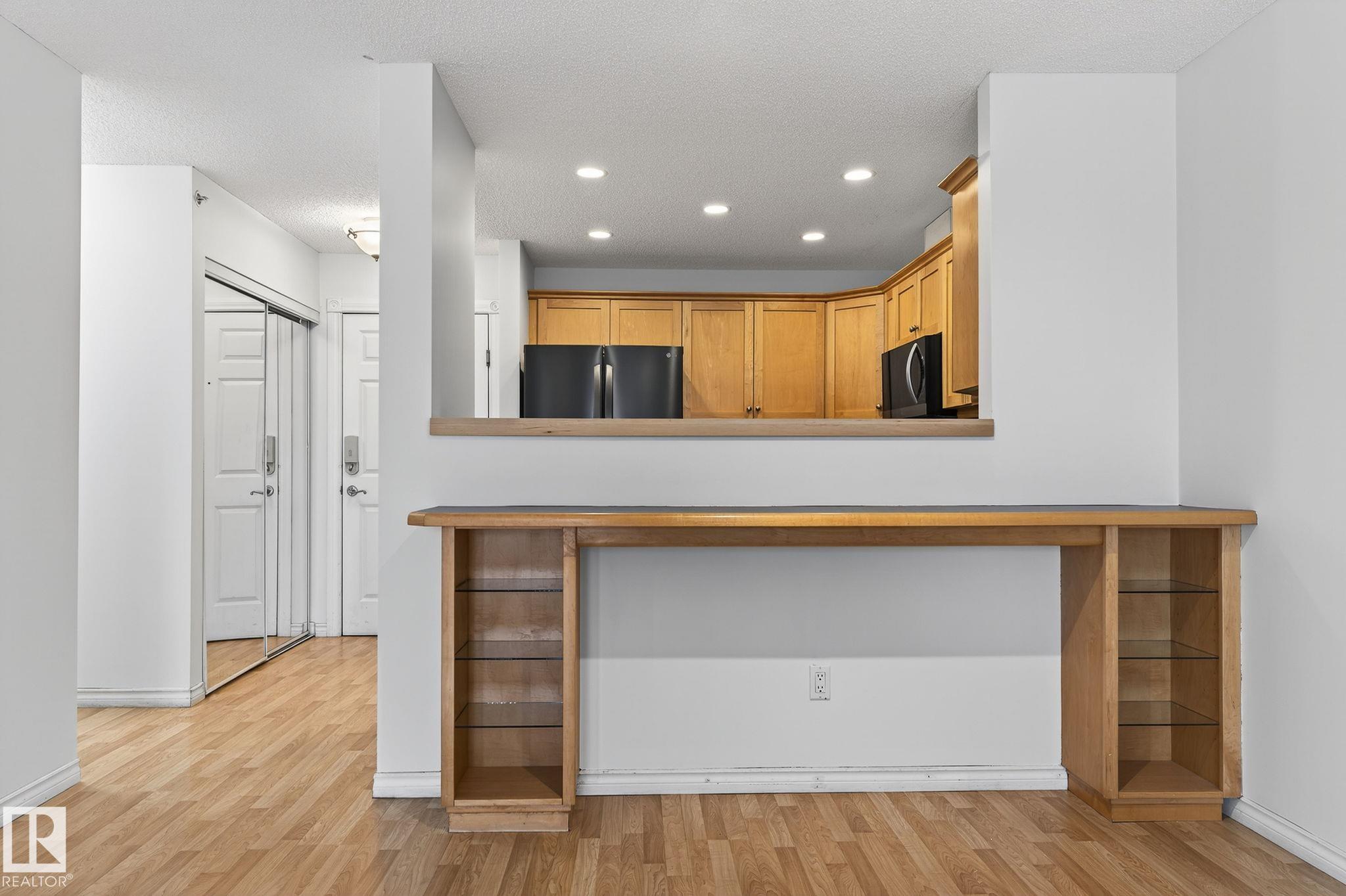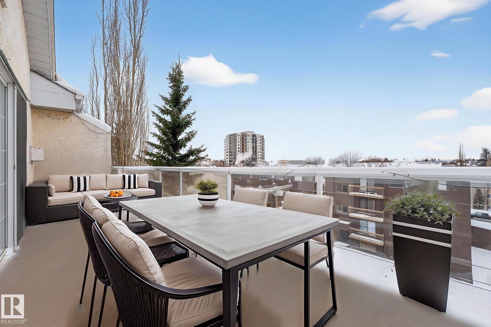 Welcome to Glenora Mansion! one or more photos were virtually satged! This beautiful top-floor, corner 808 sq. ft. 2-bedroom condo offers exceptional privacy, comfort, and an unbeatable location. With stairwells located on one side, there is minimal foot traffic and no neighboring noise, making it ideal for quiet, carefree living. The open-concept layout is bright and inviting, flowing seamlessly to a spacious west-facing patio with a gas BBQ hookup and completely unobstructed open views?perfect for entertaining or enjoying peaceful sunsets. The unit features a full bathroom, in-suite laundry, air conditioning, and single carport parking. Residents also enjoy access to a fully equipped fitness gym within the building. Ideally located near Grant MacEwan University, Rogers Place, Downtown, and LRT/public transit, this home combines convenience, privacy, and style. Perfect location, beautiful views, and looks just as impressive in person as it does in the pictures!