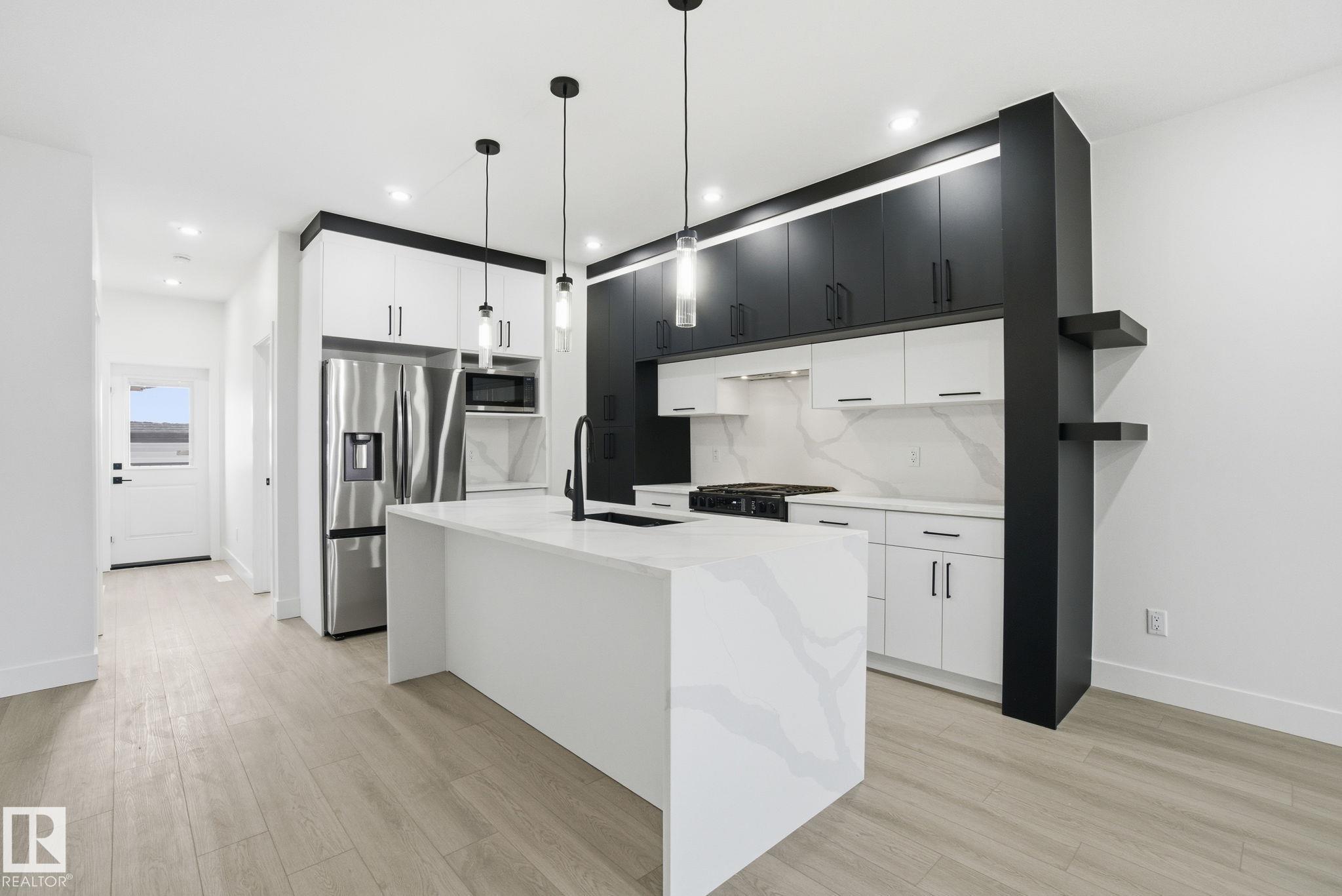 Located in the vibrant community of Delton, this brand-new half duplex offers approximately 1,614 sq ft across the upper two levels. Designed with functionality and income potential in mind, this home includes a 2-bedroom legal basement suite?ideal for rental income or multi-generational living. Open concept main floor living space with electric f/p in LR, large island in kitchen & main floor bedroom with a 3 pc bthrm. Upstairs hosts the primary suite and spa-like ensuite & w/i closet with built-ins. Two other good-sized bdrms, main bth & laundry complete this level. Featuring high-quality finishes throughout, including luxury vinyl plank flooring, ceramic tile, upgraded lighting fixtures, stainless steel appliances, quartz countertops, and 9-foot ceilings on all levels. Additional highlights include a spacious rear deck and a double detached garage. This is a fantastic opportunity to own a thoughtfully designed, income-generating home in a growing neighbourhood.