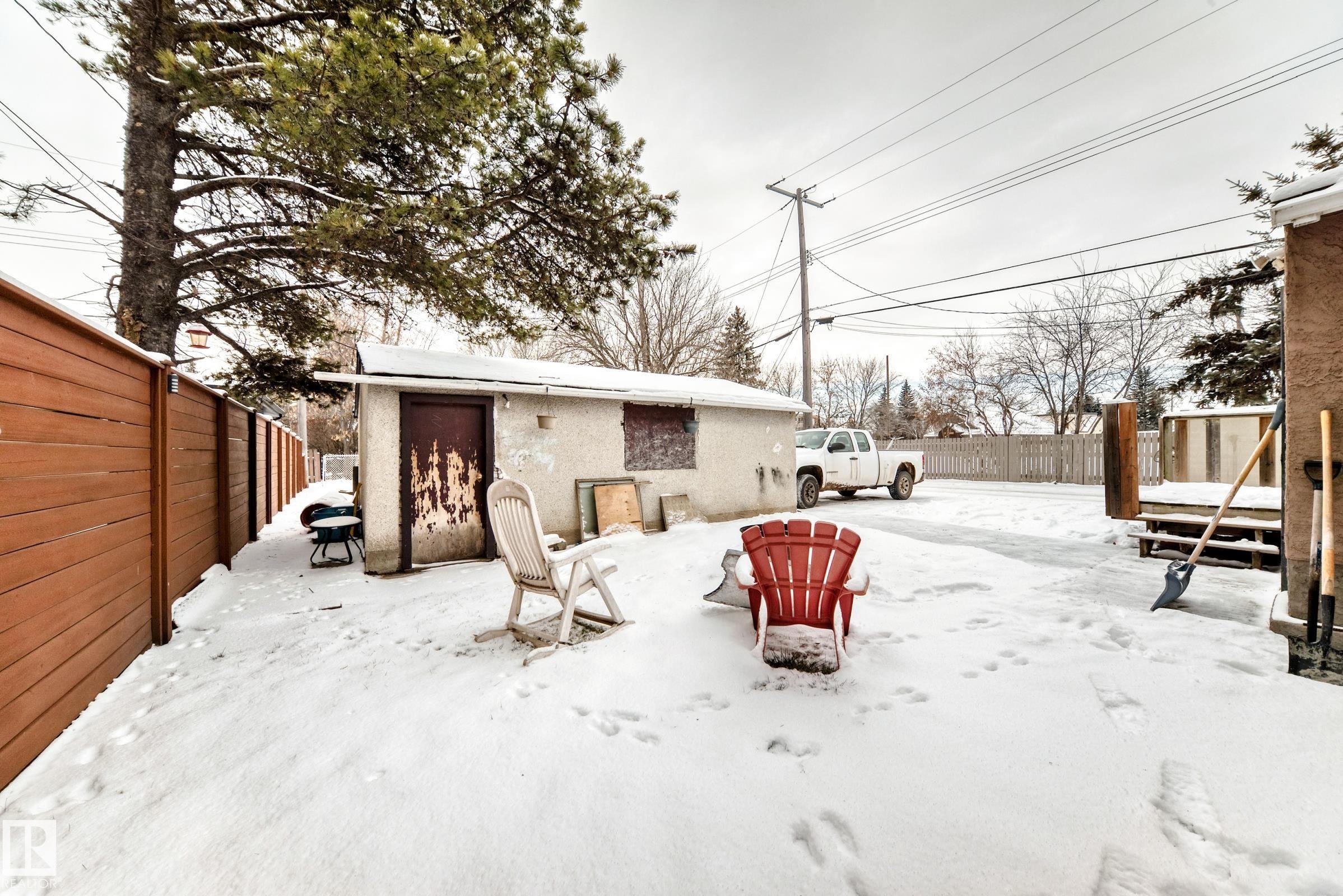 Prime redevelopment opportunity in the mature Sherwood neighbourhood. This 1956 bungalow sits on a generous 50 ft x 125 ft lot, offering excellent potential for infill or future redevelopment. The existing home provides approximately 700 sq ft with 2 bedrooms on the main level, an additional bedroom in the basement, and 2 full bathrooms. Long-term tenant in place for approximately 19 years, making this a suitable land-hold investment while planning future development. Detached garage is used as a storage shed. Ideally located close to schools, parks, public transit, and with convenient access to amenities like Meadowlark Health & Shopping Centre, West Edmonton Mall, and Stony Plain Road.