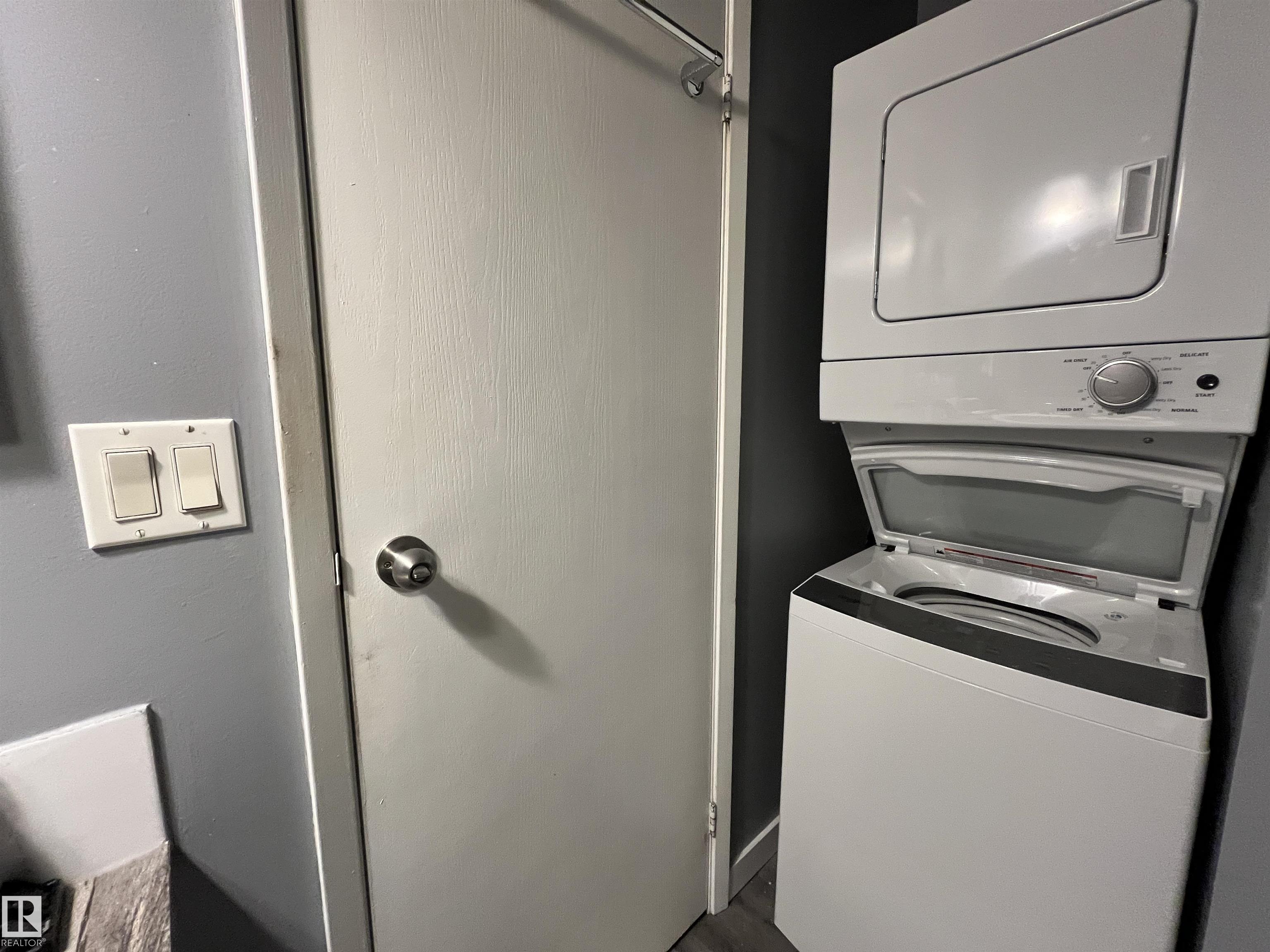 Welcome to this Bright & Private TOP-FLOOR Condo, offering comfort, style, and unbeatable convenience. ONE-Bedroom Condo is move-in ready & thoughtfully updated throughout. Enjoy NEW Custom Blinds & Refreshed Kitchen & Bathroom featuring Brand-New Countertops, along w/ Fully Renovated Bathroom complete with New Stacked Washer/Dryer. Laminate Flooring throughout?no carpet? makes for easy cleaning and a modern look, complemented by fresh paint in every room. A cozy wood-burning, stone-faced fireplace creates the perfect atmosphere for relaxing evenings at home. Condo Additionally offers generous in-suite storage, adding everyday functionality. Location is exceptionally convenient w/Public Transit right outside the Front Door w/ LRT just moments away, commuting is effortless to easy access to the University of Alberta, NAIT, MacEwan University, Downtown along with travels to Anthony Henday and Yellowhead. Excellent Home for students or professionals. Move in ready and Beautifully Maintained! WELCOME HOME