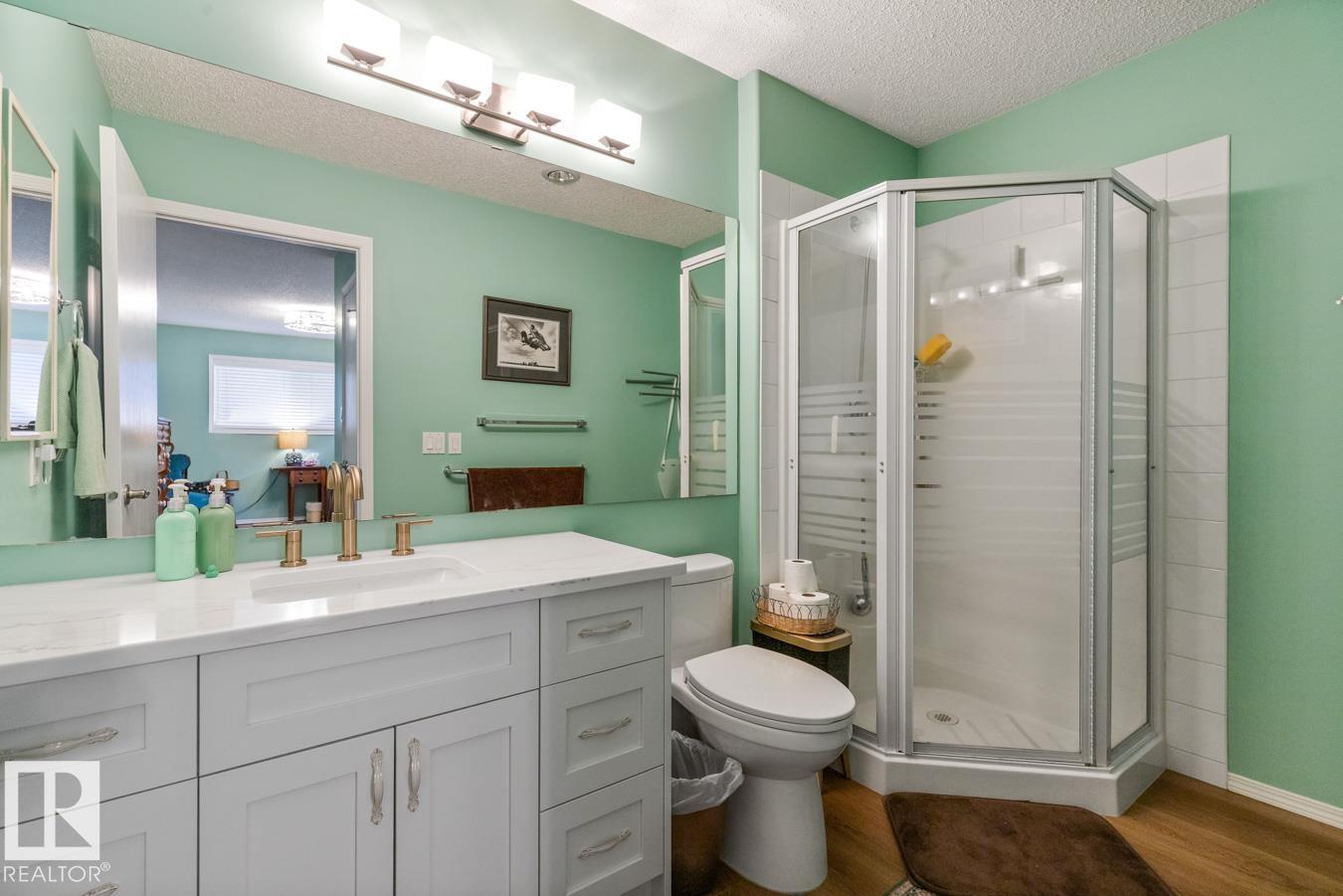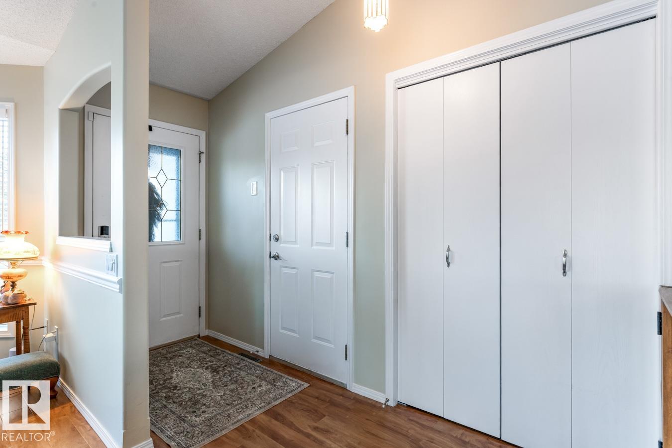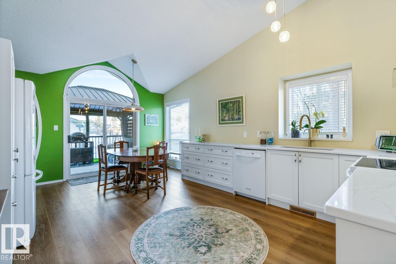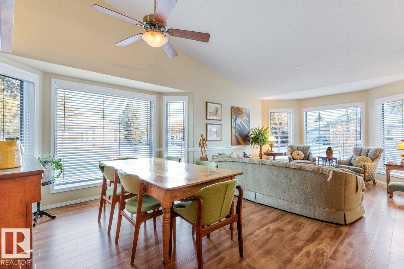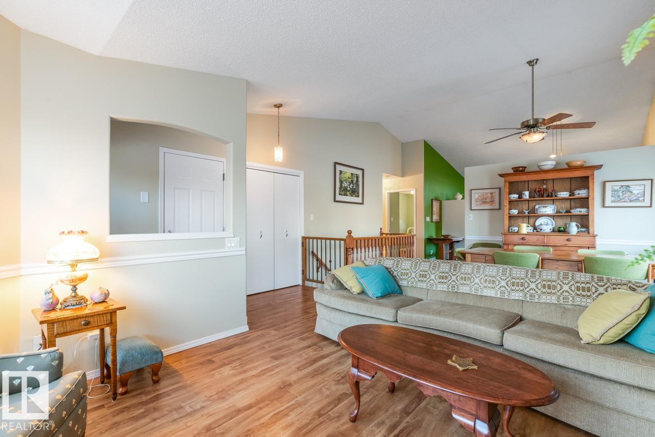 AMAZING FIND IN AKINSDALE - RENOVATED Bungalow! Kitchen features new Alberta-made Cabinetry (white), Quartz Counters, new flooring & plenty of storage. Main Floor incls two Bedrooms, VAULTED CEILINGS & is CARPET-FREE. Bathrooms on this level have new vanities & faucets. MAIN FLOOR LAUNDRY! Fully Finished Basement w/ GAS FIREPLACE, 3rd Bedroom & a large storage room or workshop. HEATED, DOUBLE ATTACHED GARAGE is equipped w/ 220v wiring (electric vehicle). Bonus: AIR CONDITIONING, Water Softener, New Lighting, recently Painted, New Blinds & more! Outdoors there is a spacious, composite Deck w/ Gazebo & gas hookup. Corner Lot lends itself to a bright & sunny space w/ extra windows. Walking distance to Trails, Parks, Groceries, Restaurants, Shops & Pharmacies. Pickleball Court nearby in the community! Quick access to Henday & Downtown Edmonton is an easy 20 minute commute. Quiet neighbourhood. Low monthly HOA fee covers snow removal & lawn care. NOT A CONDO! 18+ age restrictions. Pet Friendly!