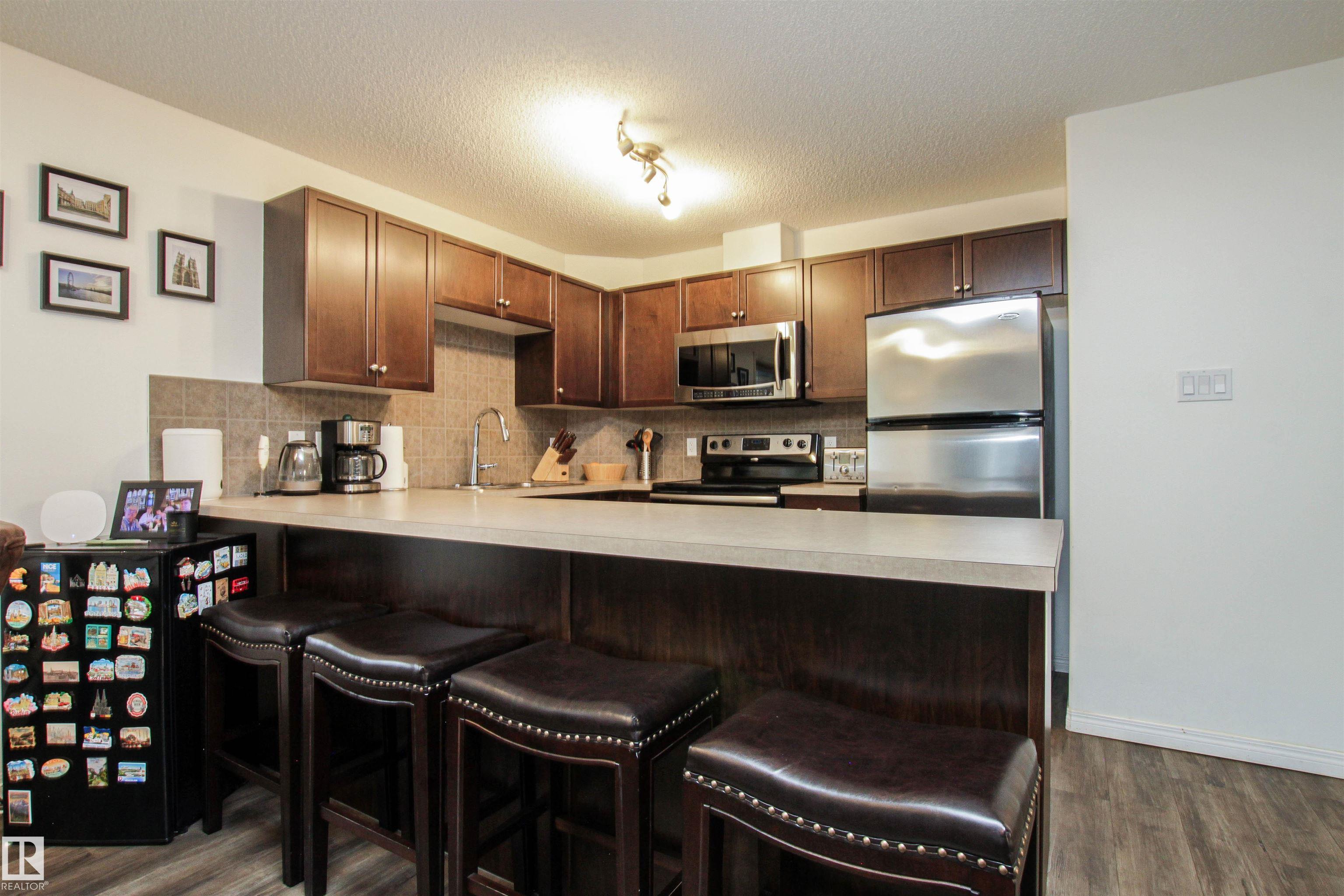 Welcome to this beautifully maintained 2 bedroom, 2 bathroom condo featuring stylish newer vinyl plank flooring and a convenient in-suite washer and dryer. This southwest-facing corner unit offers an abundance of natural light throughout the day, creating a warm and inviting atmosphere.Enjoy the ease of 2 titled parking stalls, and a prime location just steps from shopping, groceries, and public transportation. Whether you?re a first-time buyer, downsizer, or investor, this home combines comfort and convenience in one fantastic package!