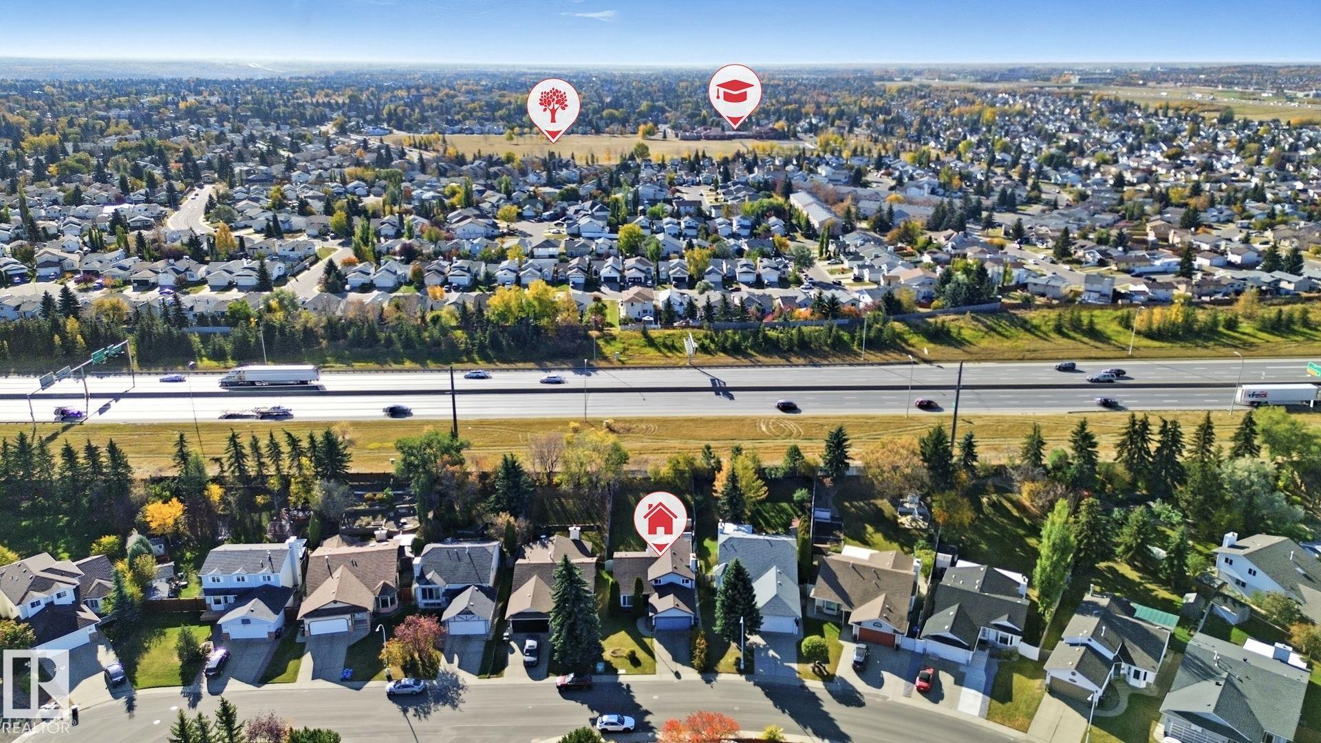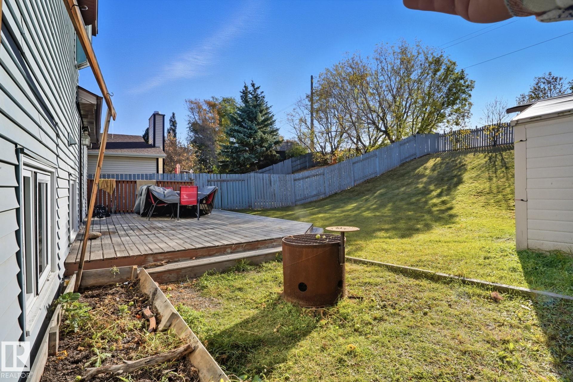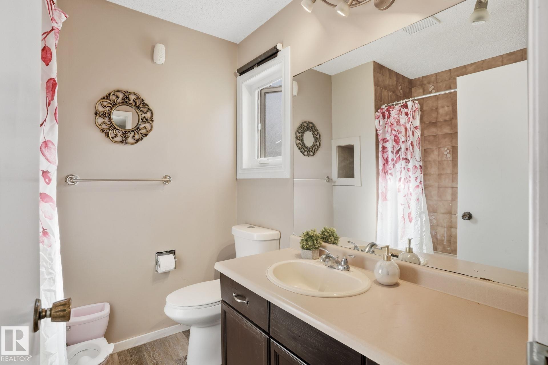 Welcome to this well-maintained 4-level split in the desirable Aldergrove community of west Edmonton. This spacious home offers 4 bedrooms, 3 full bathrooms, and a double attached garage. The main level features formal living and dining areas, while the bright, separate kitchen is enhanced by large south-facing windows and updated cabinetry. The upper level includes a primary bedroom with ensuite, plus two additional bedrooms and a full bathroom. The third level offers a family room with a brick wood-burning fireplace, a fourth bedroom, and another full bath. The lower level provides a large recreation room, ideal for flexible living or entertaining. Recent updates include a new roof (September 2025) and newer washer and dryer. Enjoy the expansive south-facing yard with deck and mature landscaping. Conveniently located near West Edmonton Mall, schools, parks, golf, and public transit.