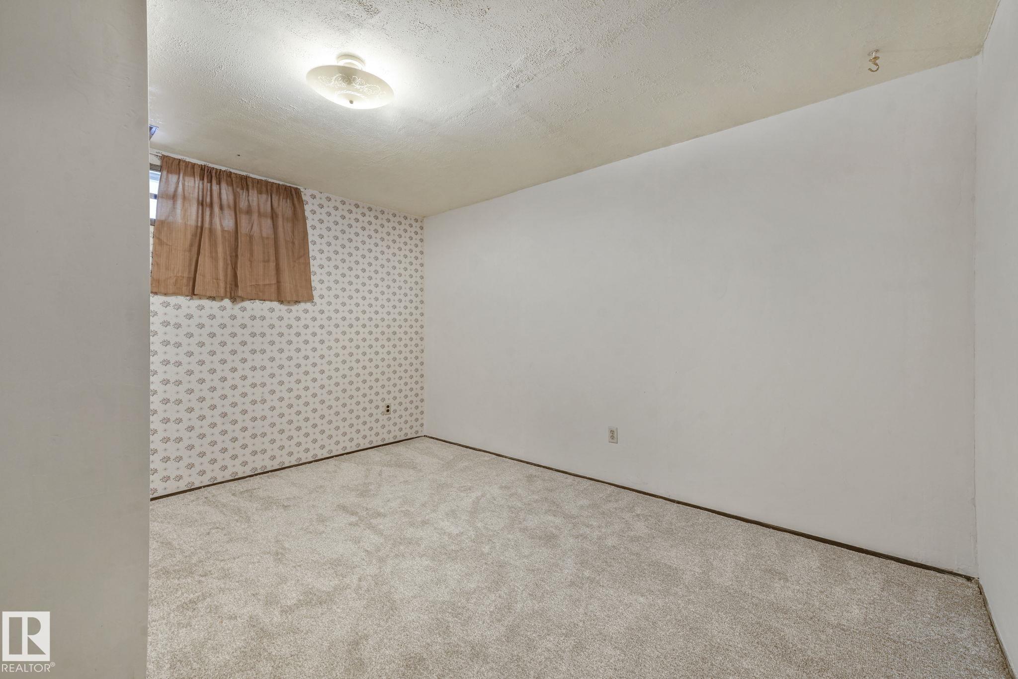 PRIME LOCATION ? WELL MAINTAINED Bungalow, Excellent for first-time buyers, growing families, or smart investors! Nestled in mature neighborhood, desirable & family friendly community of Sakaw, this cozy bungalow will surely entice you! Step into welcoming home featuring new carpet and fresh paint, cozy living room with abundance of daylight, Kitchen, Dinning, a generous primary bedroom, two decent size kids bedrooms, & full 4-piece bathroom. Partially finished lower level offers In-Law Suite Potential with SEPARATE SIDE ENTRANCE, additional Bedroom, Rec room, 3-piece bath, laundry & unfinished space inviting your creativity. Fully fenced south-backing yard & multipurpose parking space accessible thru back-alley for RV or multiple vehicles, or suite-to-needs garage can be built there. Located close to schools, parks, shopping, public transit, Mill Woods Rec Centre, Hospital, easy Anthony Henday access, & places of worship are all located within walking distance or short drive. A wonderful property indeed!