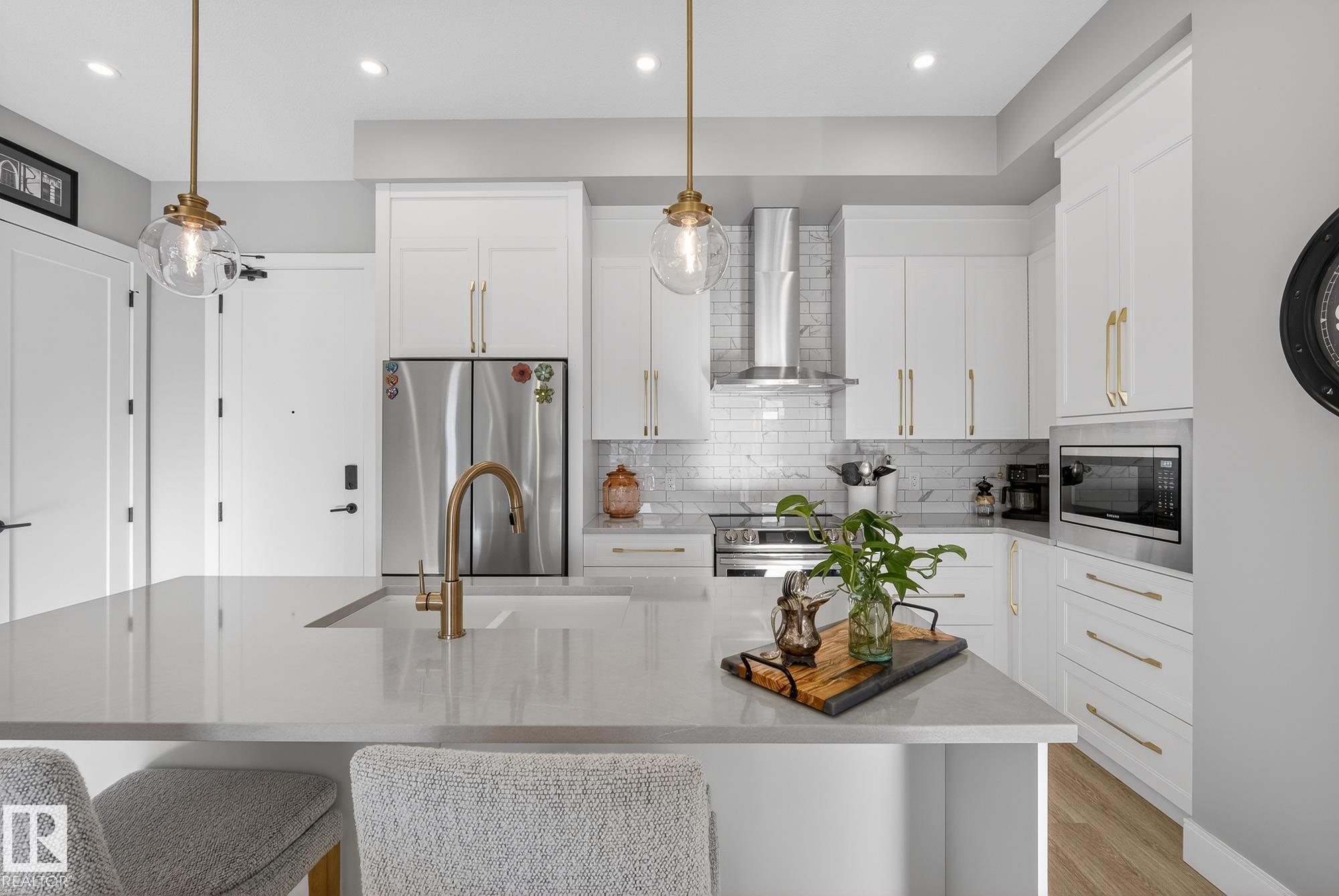 Welcome to The EDGE AT LARCH PARK, located in the beautiful community of MAGRATH. This STUNNING, BRIGHT, well-kept, TOP-FLOOR show-stopper, offers 2 BEDROOMS, 2 FULL BATHROOMS, IN-SUITE LAUNDRY, STORAGE UNIT, 2 TITLED PARKING STALLS (1 heated parkade/1 surface), AC and a SOUTH FACING BALCONY that fills the home with natural light. Thoughtfully designed with HIGH END FINISHINGS and CUSTOM CABINETRY. Situated next to the COMMUNITY GARDENS and along the breathtaking WHITEMUD CREEK RAVINE, you?ll have miles of scenic walking trails right outside your door. Residents enjoy exceptional RESORT-STYLE AMENITIES, including a YOGA STUDIO, FITNESS CENTRE, ROOFTOP PATIO with BBQ, CHEFS KITCHEN, LOUNGE/GAMES ROOM, ARTS & CRAFT room, LIBRARY, 2 GUEST SUITES, FIREPIT, DOG WASH and FENCED OUTDOOR DOG PARK. LOW CONDO FEES that INCLUDE HEAT AND WATER. Enjoy your large balcony & the EXTRA living space in the sunshine! Great neighbours and this OUTSTANDING LIFESTYLE await. WELCOME HOME!