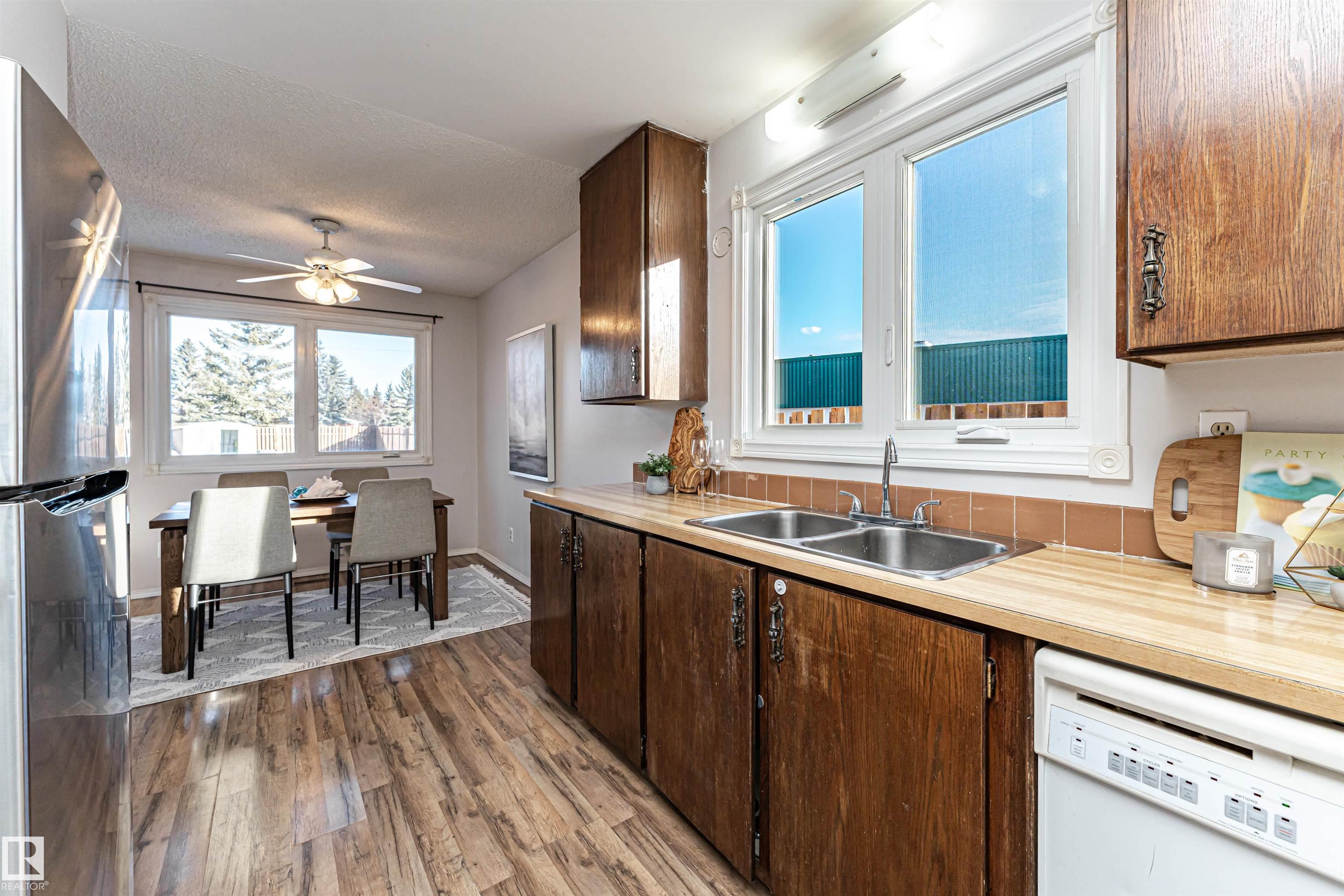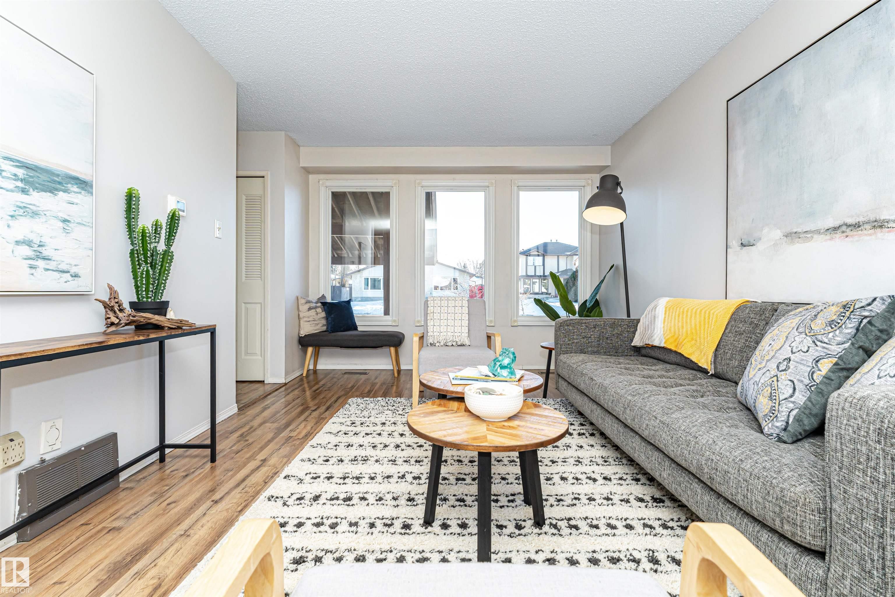 No Condo fees for this charming south-facing half-duplex, it offers the perfect blend of modern updates & a great location. Situated on a massive 25 x 189 foot lot! The main floor has a walk through kitchen with a window over the sink & views of the yard through the large dining room. Living room has 3 big south facing windows giving it a warm glow. Features 3 generous bedrooms upstairs with large closets that are sure to surprise you. The home has two full bathrooms & a fully finished basement provides extra space for family, guests or hobbies. Recent upgrades include NEW ROOF, WINDOWS, FENCE & an updated, HIGH EFFICIENCY FURNACE, delivering energy efficiency & peace of mind. The covered car port keeps the weather off the car. Massive private yard provides space for the most avid gardener, get togethers with family, your own soccer field or an outdoor relaxation haven. Just steps from transit, Millwoods REC Center, excellent schools, Costco & South Common, everything you need is right at your doorstep.