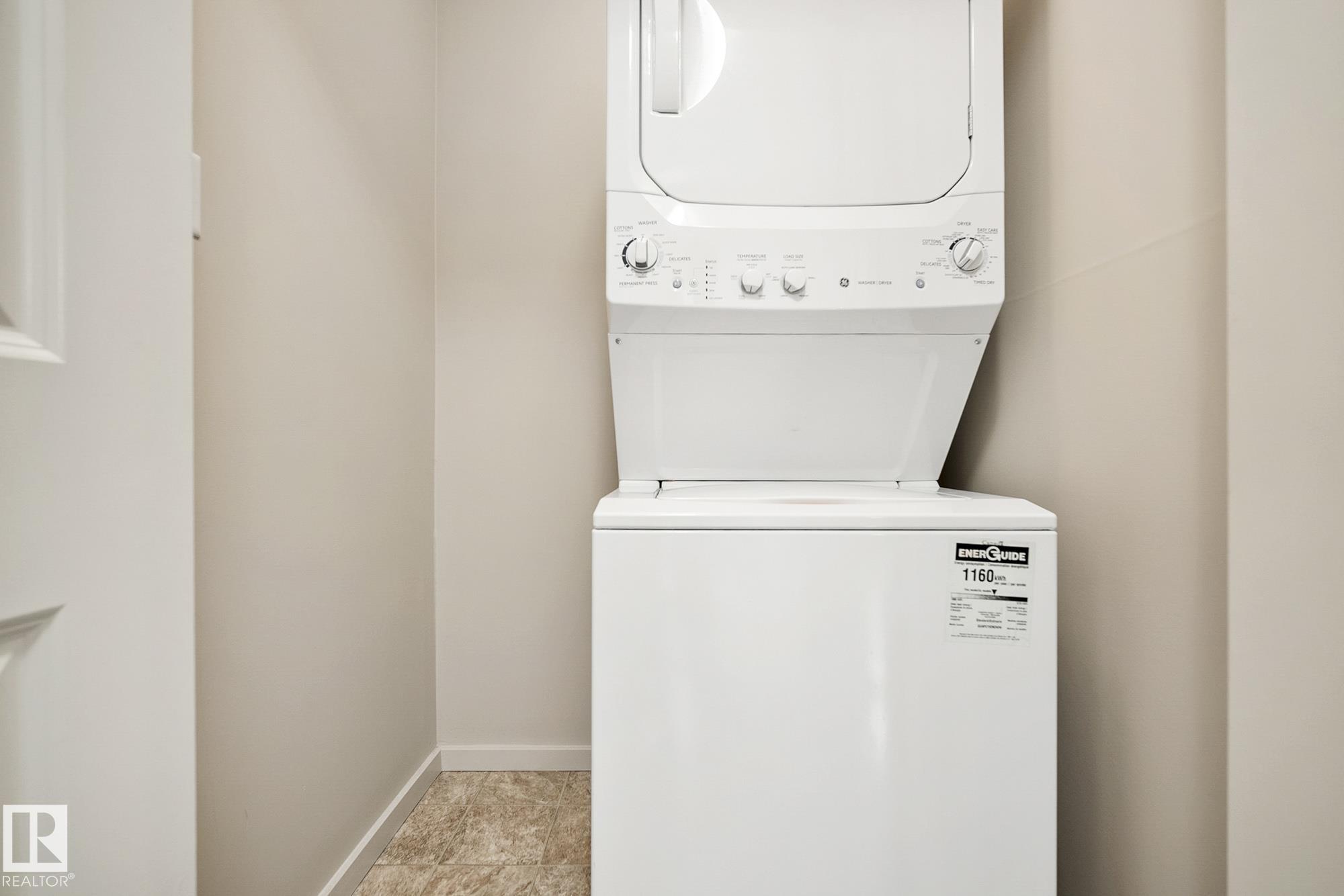 Welcome to Elements at Windermere! This trendy main-floor condo offers nearly 800 sq. ft. of well-designed living space with 2 bedrooms and 2 full bathrooms. The primary bedroom features a 4-piece ensuite and a spacious closet, while the smart layout ensures privacy between bedrooms along with separate living and dining areas. The gourmet kitchen includes stainless steel appliances, a gloss-tile backsplash, and ample cabinet and counter space. Laminate flooring flows throughout the main living areas, and the bright living room is filled with natural light from the walk-out patio door. Additional features include in-suite laundry, low-E argon gas-filled windows, pressurized and air-conditioned corridors, and a video camera entrance system. This unit comes with two titled parking stalls (one underground and one surface). Ideally located in the heart of Windermere, just steps from schools, shopping, recreation centre, walking paths, and ponds. A great opportunity for first-time buyers or investors!