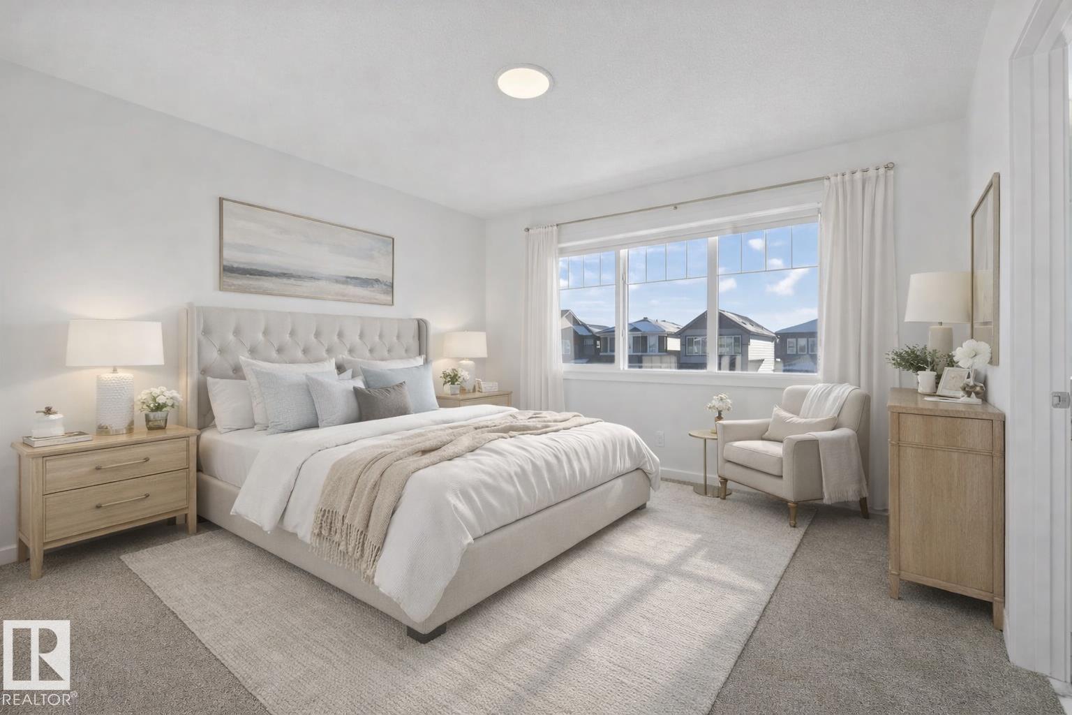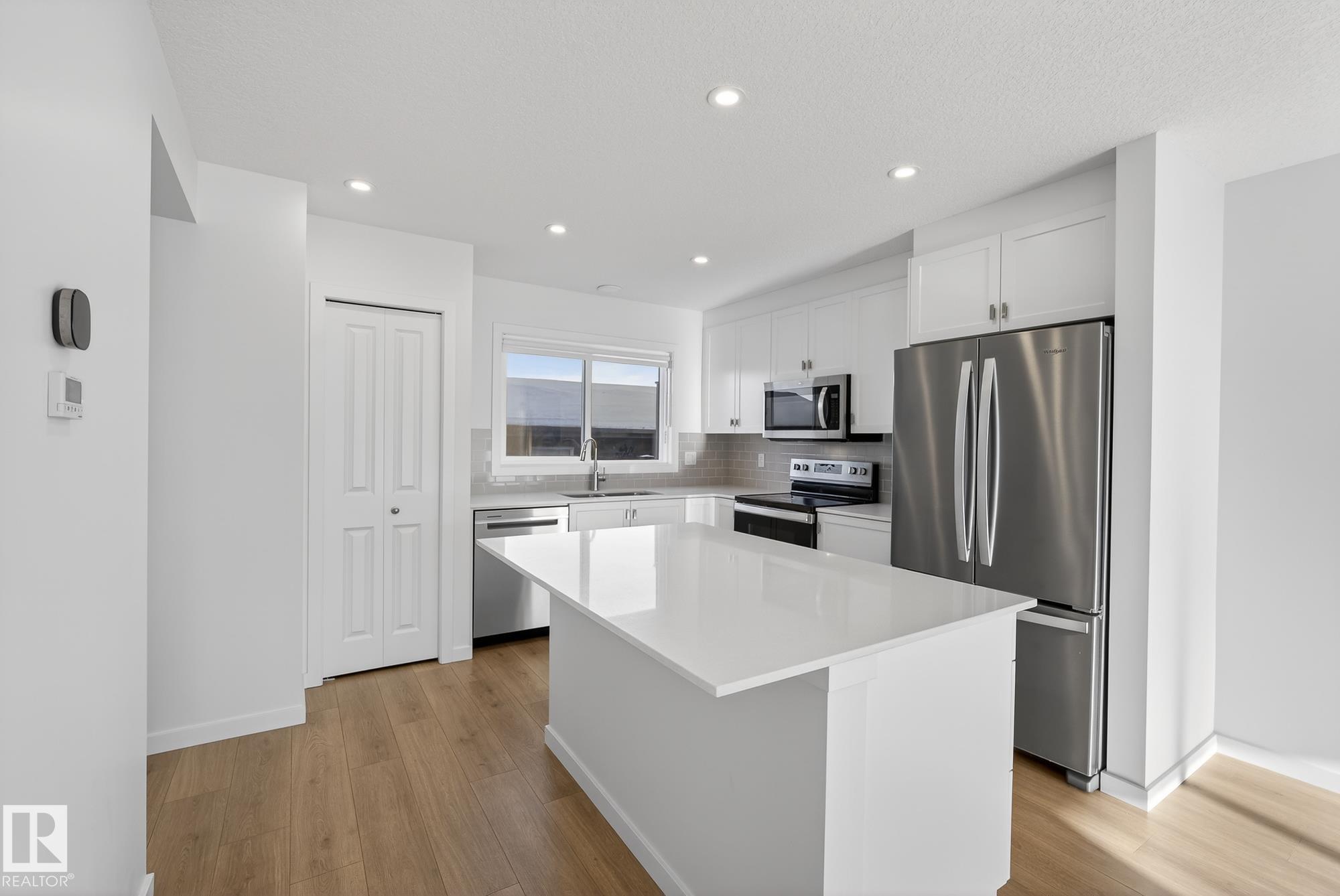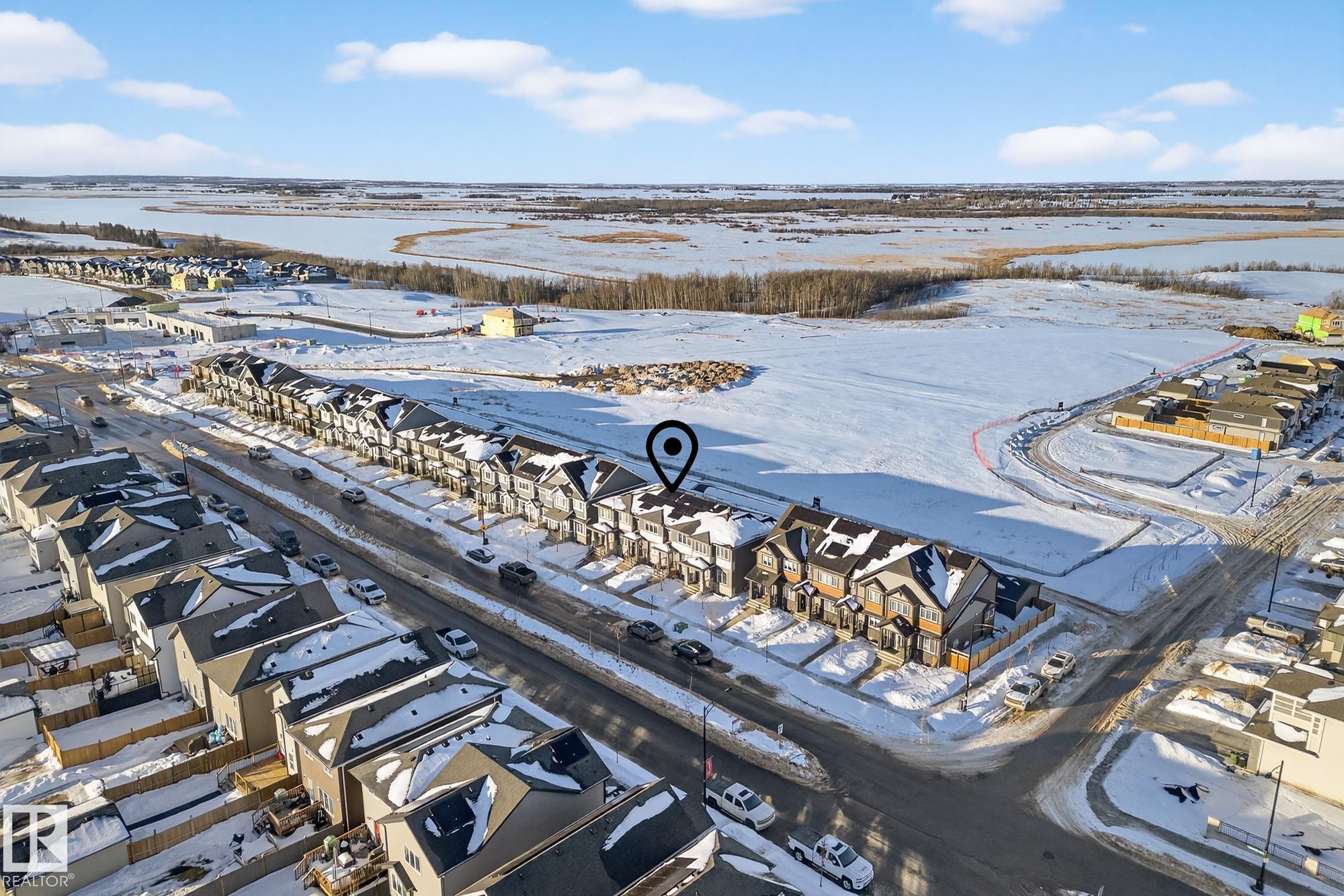 Tucked in the rapidly developing area of Trumpeter is this stunning almost new townhouse with ZERO CONDO FEES. Tankless hot water, a high efficiency furnace, solar panels with ability to sell back to grid, triple pane windows, and air conditioner. The unfinished basement is ready for your own custom development with flooring laid down throughout. The home features an open concept living area that flows into the kitchen where there is a beautiful large quartz island with a breakfast bar ledge on one side and a half bath off of the kitchen near the backdoor. The second floor holds the primary bedroom with a walk in closet and 3 piece ensuite. Also upstairs, bedrooms 2 and 3 are both good sized. The house offers upper level laundry. A double detached garage off of the back alley offers room for parking and storage. Community playground just to the east and Lois Hole Provincial Park and Big Lake to the north. Great highway access to Anthony Henday!