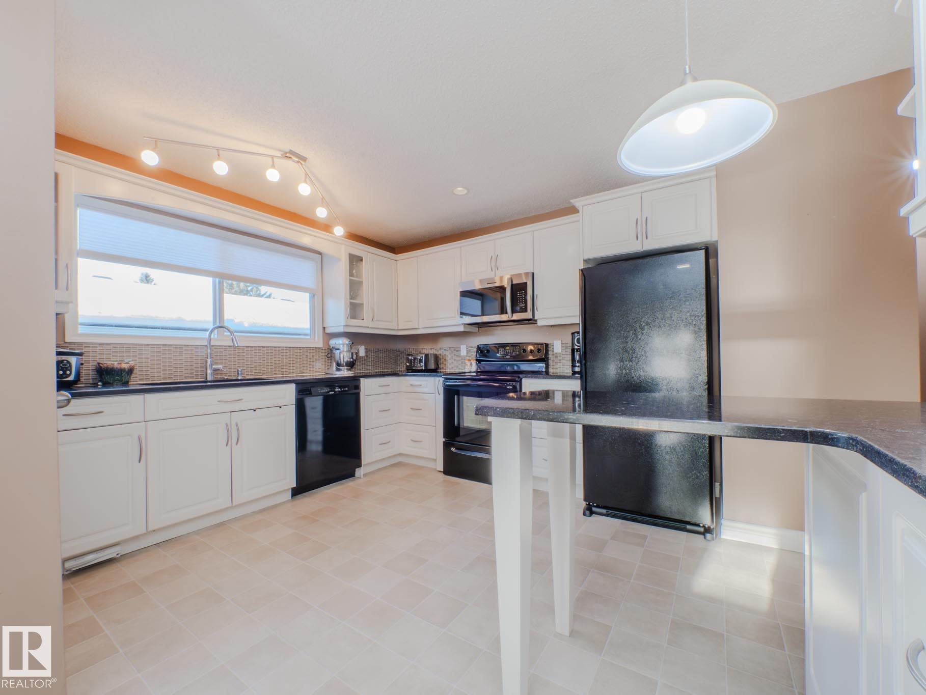 CORNER LOT BUNGALOW! Step inside this cute-as-a-button bungalow tucked away in the desirable community of Sweet Grass.Inviting living room is anchored by a charming white brick fireplace with custom built-in shelving, creating a cozy yet functional focal point. Large windows flood the space w/ natural light. Bright & elegant dining room showcases crown moulding & decorative wall decals. Functional kitchen ft. timeless white cabinetry, black appliances, mosaic tile backsplash & ample counter space.Peninsula w/seating is perfect for morning coffee. Primary suite offers walk-in closet with custom built-ins & well-designed ensuite w/separate sink area. Main floor is completed by 3 spacious bedrooms and full bathrm w/undermounted sink & dark wood vanity. Fully finished basement ft. rec area w/ bar, generous bedroom, full bathrm, ample storage & separate work shop. Outside, enjoy a WEST-FACING, fully landscaped backyard with hot tub, double detached garage &RV parking. Come in,fall in love & call it home!