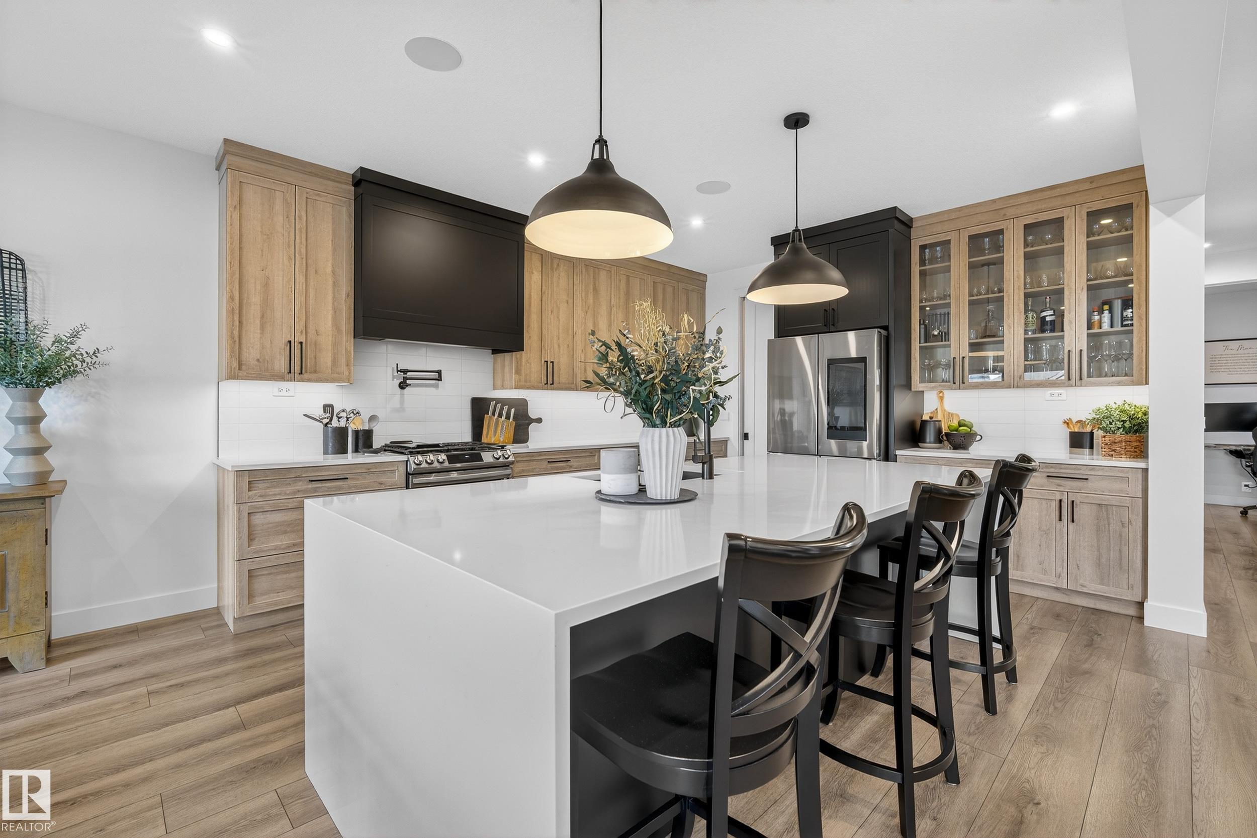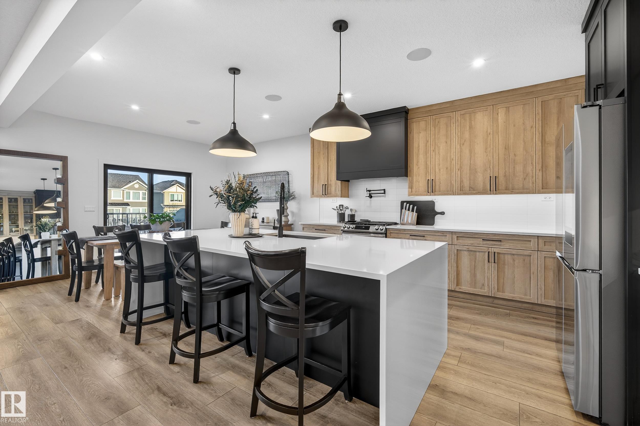 Stunning 2-storey walk-out in Aspen Trails, built by Launch Homes. This 2,308 sqft property offers luxurious living w/ a clear emphasis on quality & attention to detail, backing directly onto green space. The main floor features an open-concept w/ vinyl plank flooring throughout, a living room open to below, & a dining area that opens onto the upper deck. The chef?s kitchen is a standout, finished w/ SS appliances, a large island, tons of cabinetry & walkthrough pantry. Upstairs offers three bedrms, including the primary suite w/ a walk-in closet & spa-like 6pc ensuite, along w/ the convenience of upper-floor laundry. The walk-out basement continues the level of finish w/ a 4th bedroom, a 4pc bath, a dedicated gym, & a custom wine room built beneath the stairs. The backyard is finished with low-maintenance landscaping, a putting green, & a hot tub. Additional features include central air conditioning and an epoxy-finished garage floor. Located close to parks, schools, shopping, and walking trails.