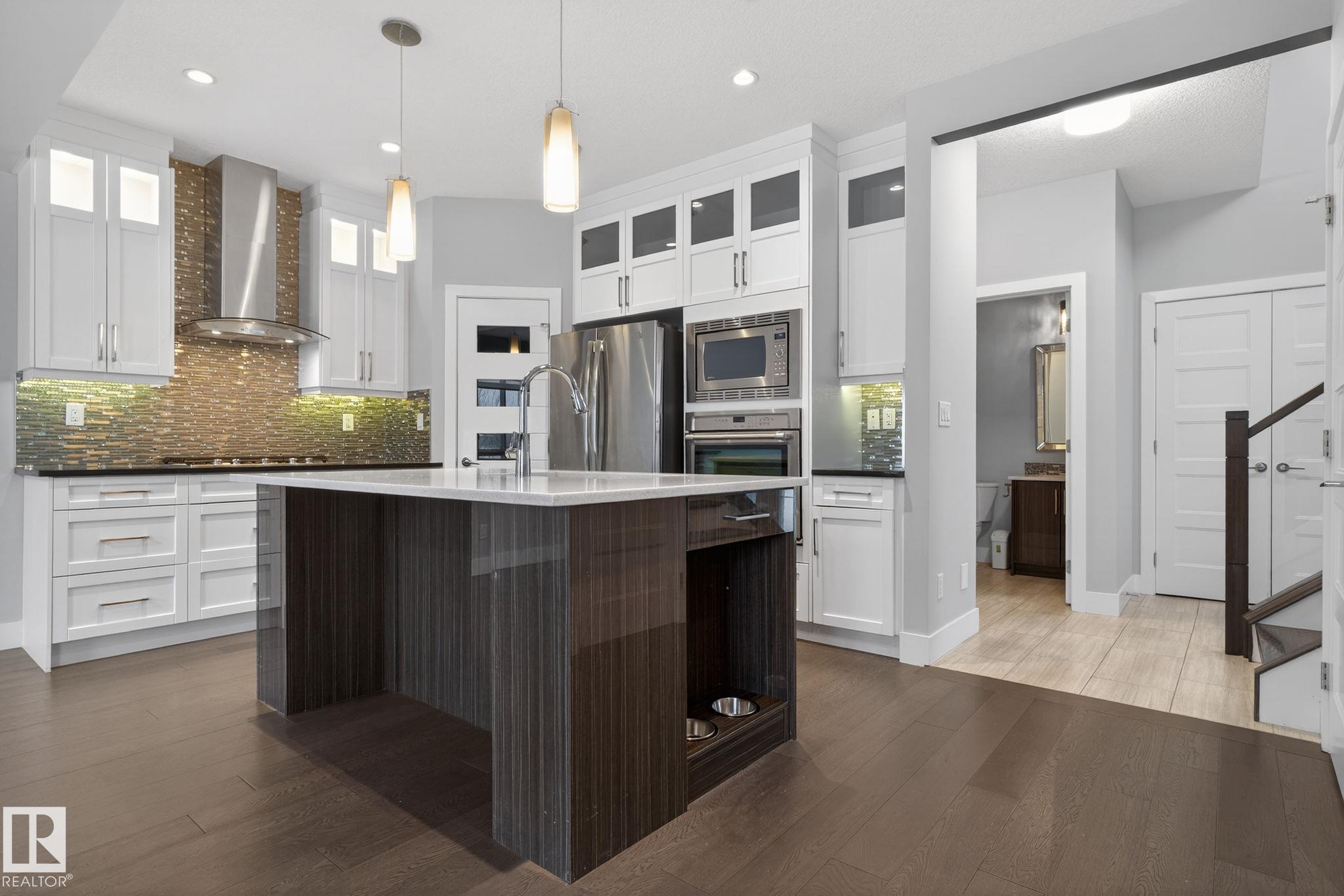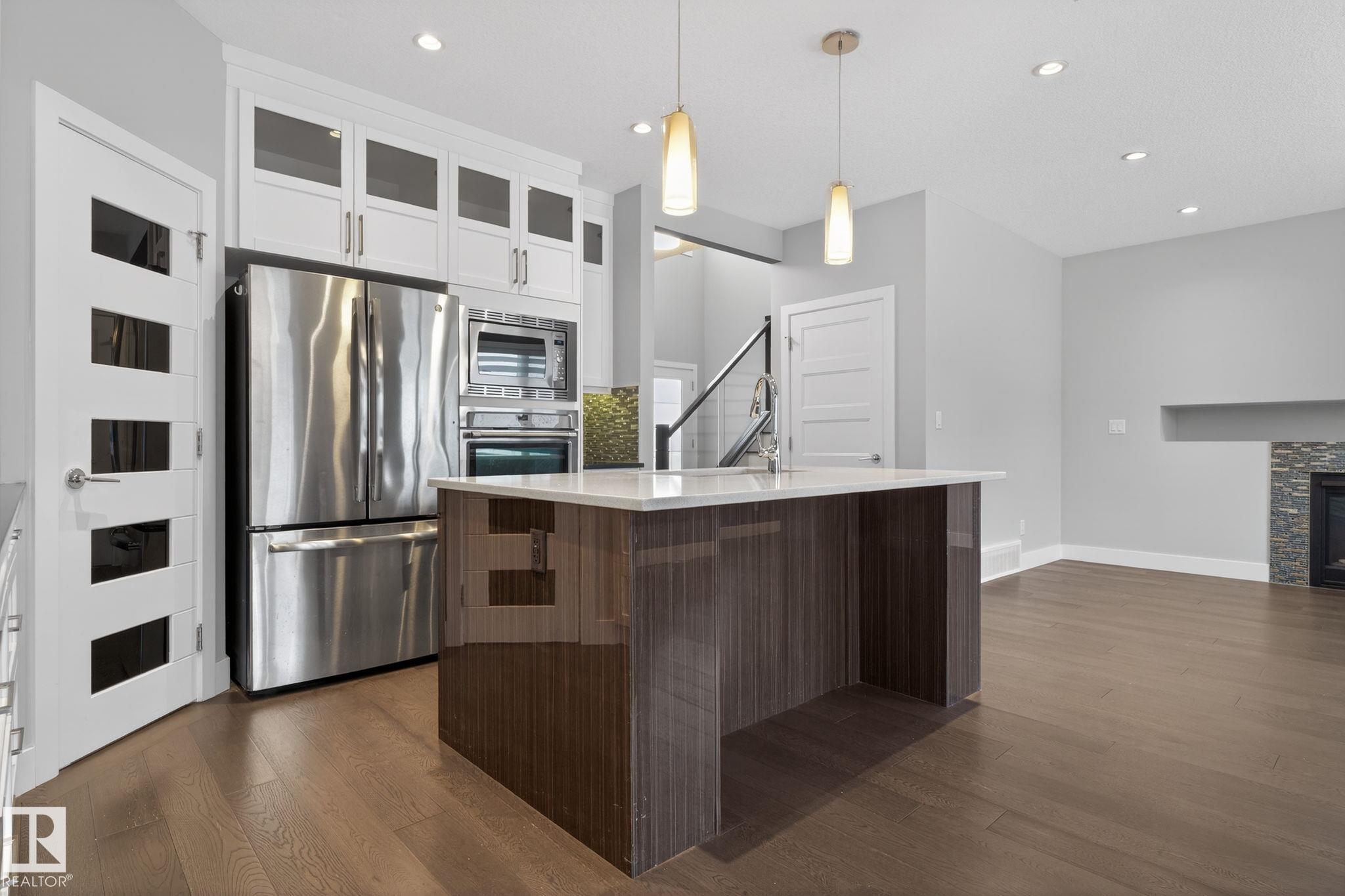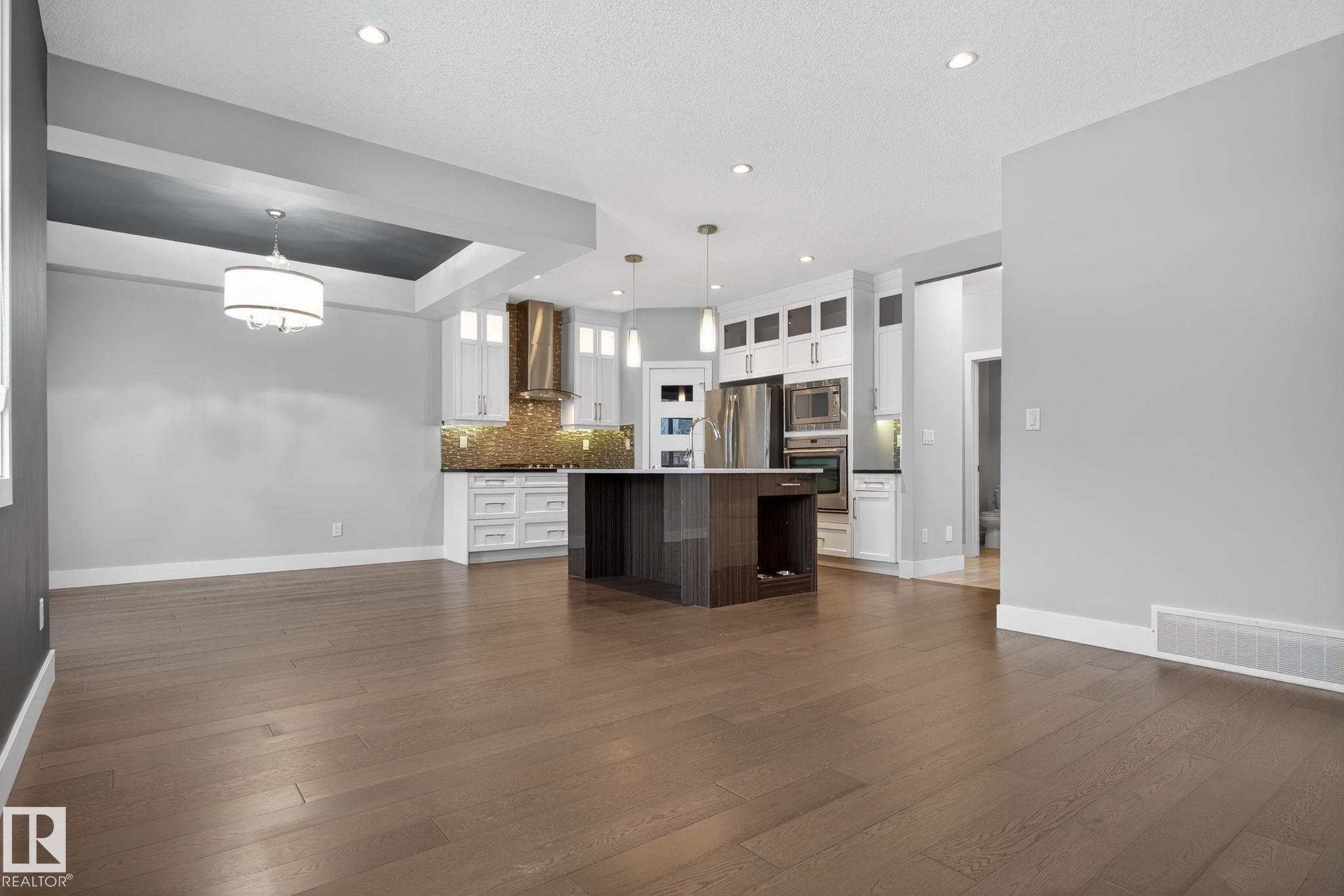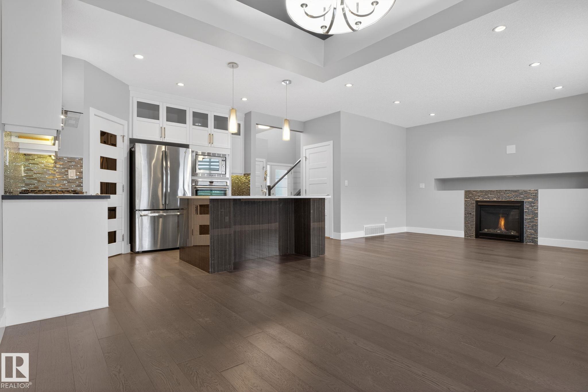 Fully upgraded, modern styling, corner lot, huge yard, finished basement, immaculately maintained, the superlatives are endless for this perfect family home in the booming community of Chappelle. Accent walls throughout in a stunning royal blue color. Flooring is exquisite in a mix of dark and light hardwood. An open concept living room with fire place, dining room and kitchen with an island main floor. With a half bath and a large side pantry that have stand up washer/ dryer and room for storage lead out to the attached garage. Upstairs you will find 2 good sized bedrooms and a full bathroom. Along with a grande master bedroom with a long walk in closet with a beautiful barn door, ensuite with his and hers sinks, standing shower with seat and a jetted tub. The fully finished basement features a massive rec room with bar, full bath, and a den tucked away for quiet work or undisturbed gaming. Out the back door is a deck with lots of space for a bbq and patio furniture along with a good sized yard.