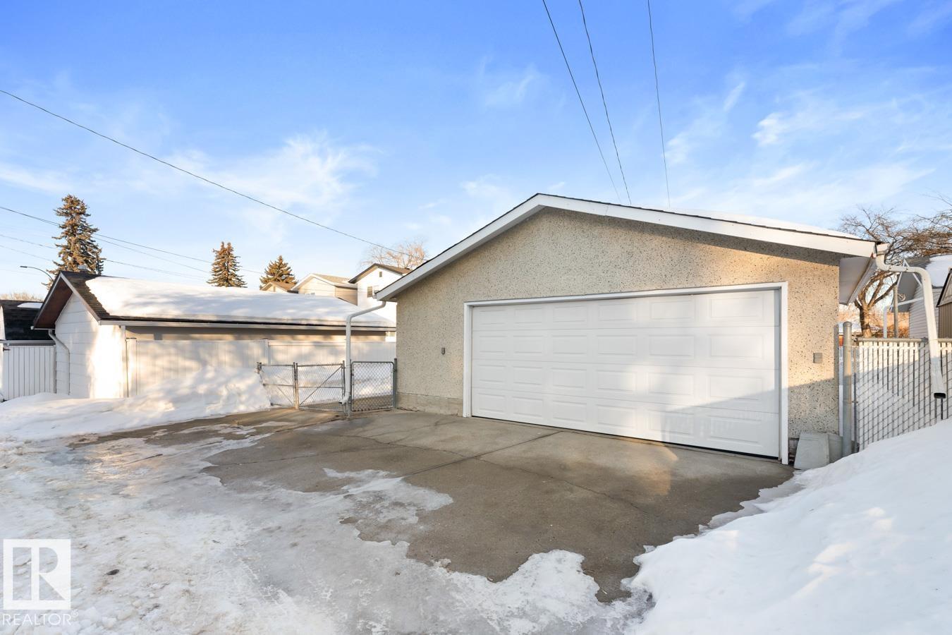 Well-maintained bungalow in Beverly Heights, just steps from the stunning river valley, trails, and nearby local gems like Kind Ice Cream, Candid Coffee, and more. The bright main floor features hardwood throughout, a spacious living room with oversized windows, and a functional kitchen with ample cabinetry and an eat-in dining area. Three bedrooms and a 4-piece bath complete the main level. The mostly finished basement offers a separate entrance, large family room, additional bedroom, 2-piece bath, laundry with newer washer/dryer, and storage. Enjoy the large backyard with green space, covered deck, RV pad, and oversized double garage. Notable updates include newer basement windows, roof (2023), garage door, deck rails/paint (2023). Located on a quiet street in a vibrant community?just minutes from downtown?this is a fantastic opportunity for first-time buyers or families looking for a solid home in a central neighbourhood.