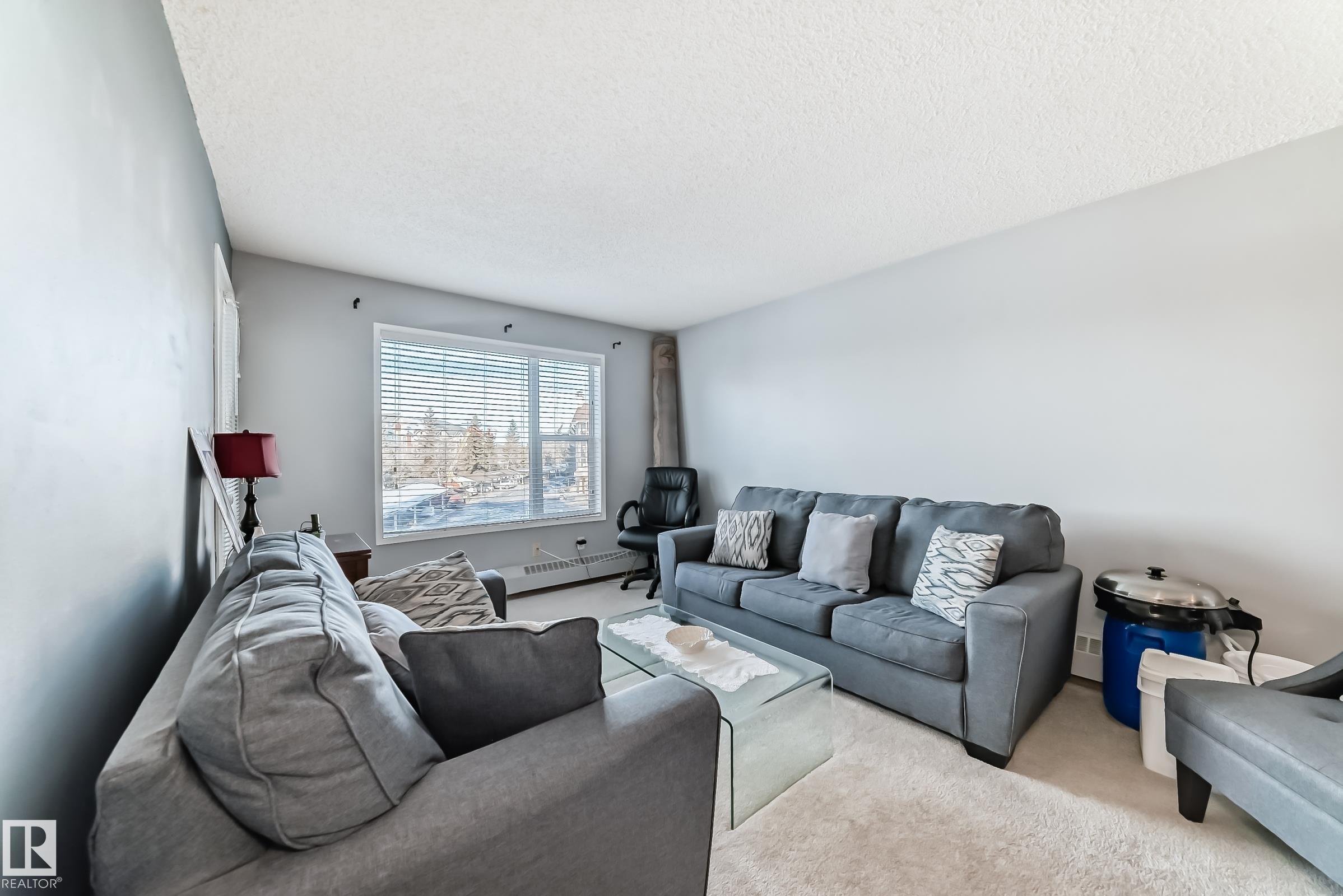 Impressive corner unit w/a thoughtfully designed layout, flooded w/natural light. The open, spacious L/R includes a dedicated D/R area and flows seamlessly into a versatile kitchen featuring ample cabinetry, a window for added brightness, & a fun chalkboard accent. The o/s primary bedroom offers a walk-in closet and a 4pc ensuite, while the generously sized second bedroom is ideal for guests or a home office. A second 4pc bath adds everyday convenience. Step outside to your private balcony, conveniently located off the L/R & overlooking green space & parking. Additional highlights include in-suite laundry & storage and an energized parking stall. The true standout is the unbeatable location. Enjoy quick, gated access to the Edmonton Brewery District, a vibrant lifestyle hub with trendy shops, dining, breweries, fitness studios, and groceries. Just minutes from Grant MacEwan, transit, the Ice District, countless urban amenities, this home offes the perfect balance of comfort, convenienience & city living!