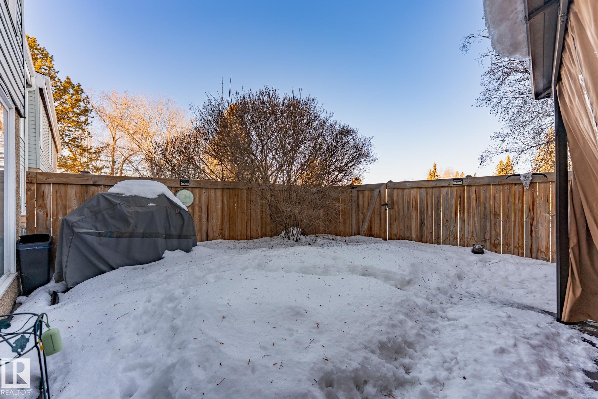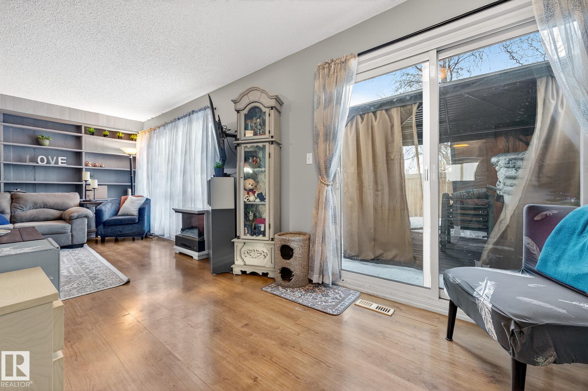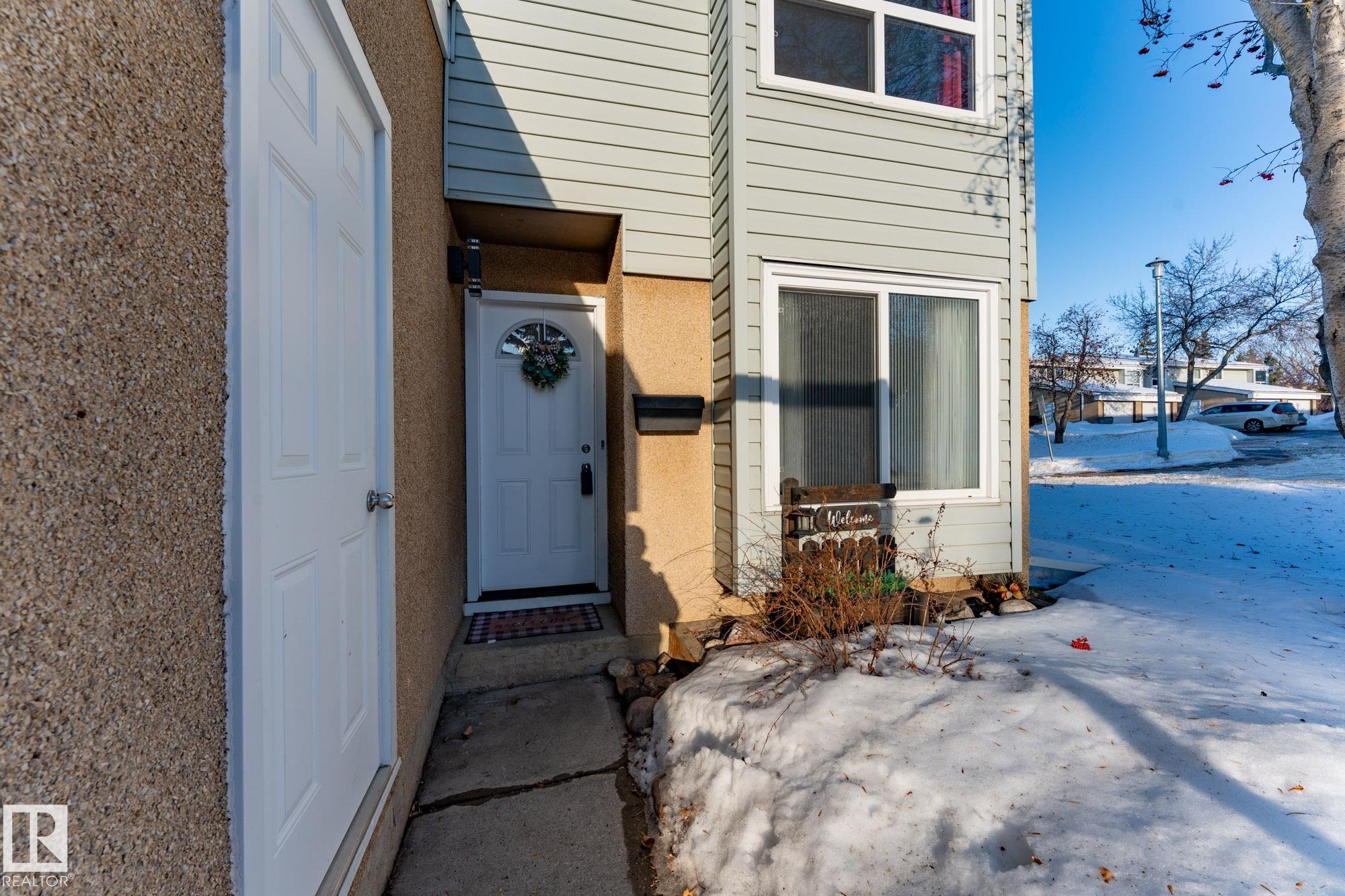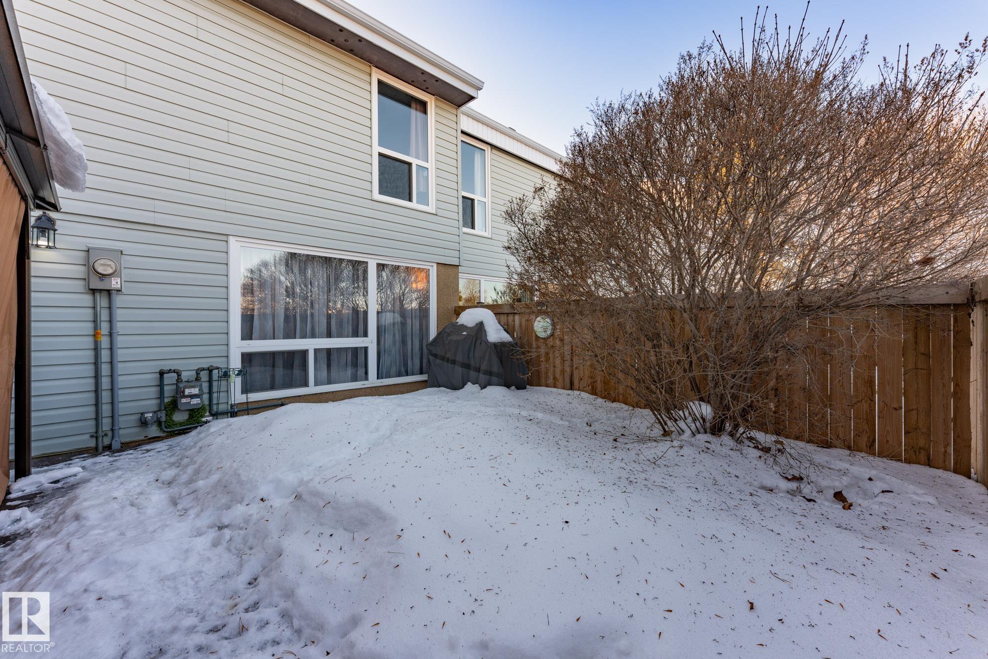 END UNIT in desirable Grandin! This beautifully updated home offers 4 bedrooms, 1.5 baths, and a fully finished basement. Bright open layout with updated lighting, fresh paint, newer appliances, and new carpet on stairs and landing. Enjoy a private fenced yard with painted deck and new gazebo backing onto trees and community gardens. Major upgrades include 100 amp electrical service, updated wiring, new washer & dryer, and bathroom improvements. Condo association upgrades include new eavestroughs, downspouts, and reinstalled windows. Attached garage. Only 2 minutes to the Henday!
