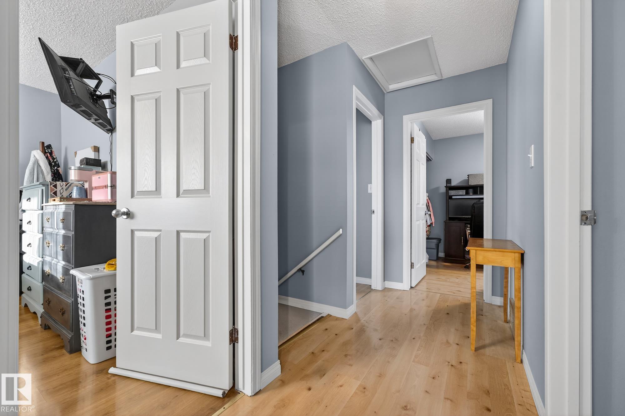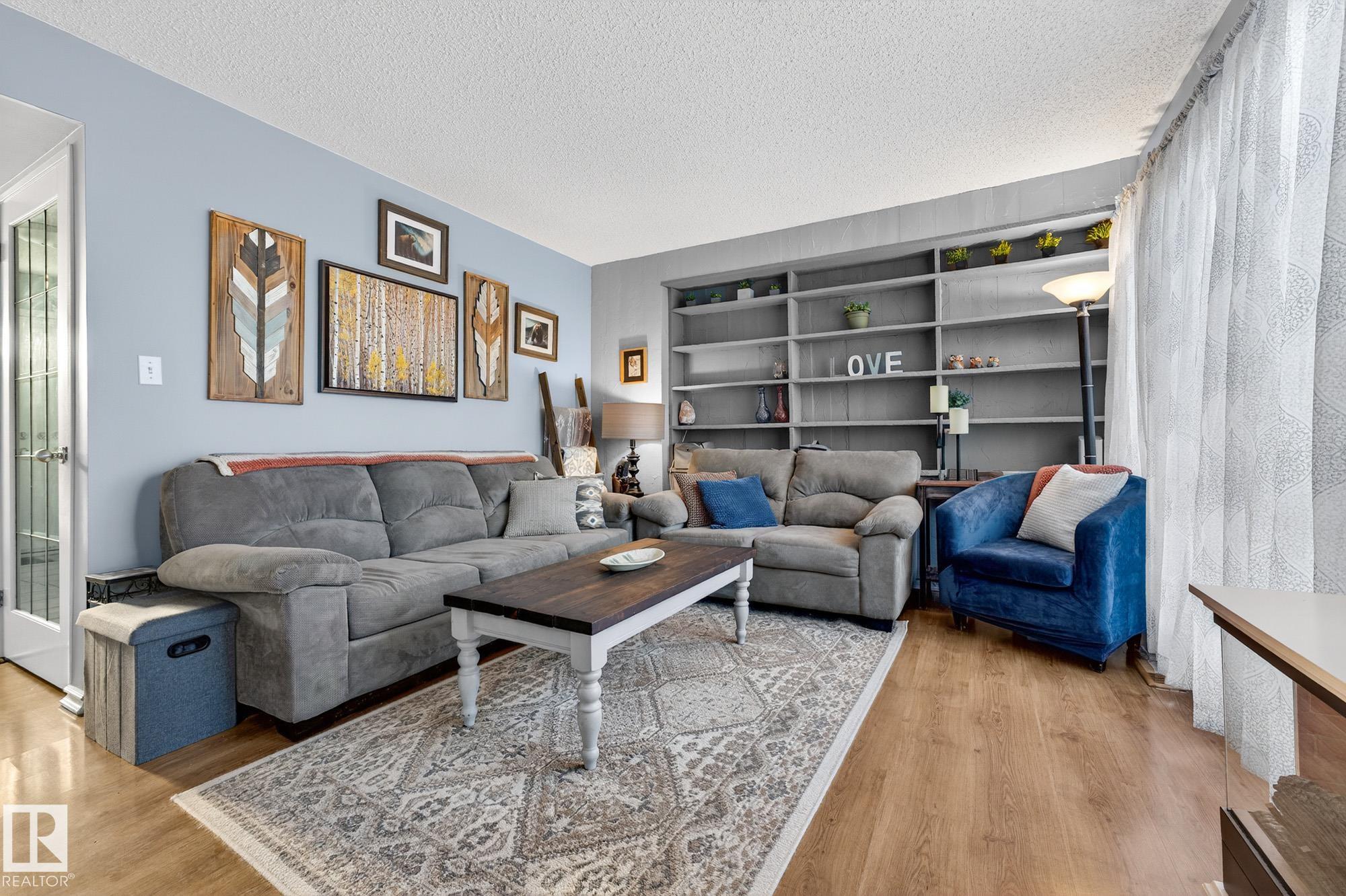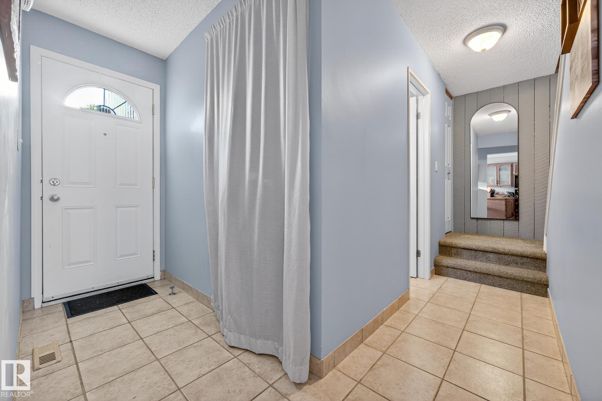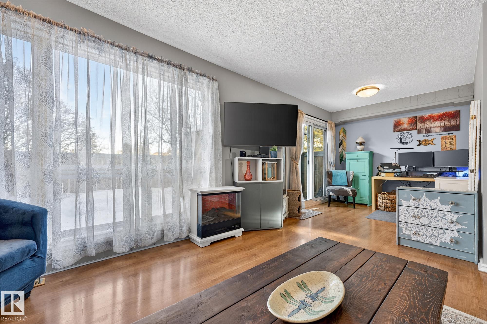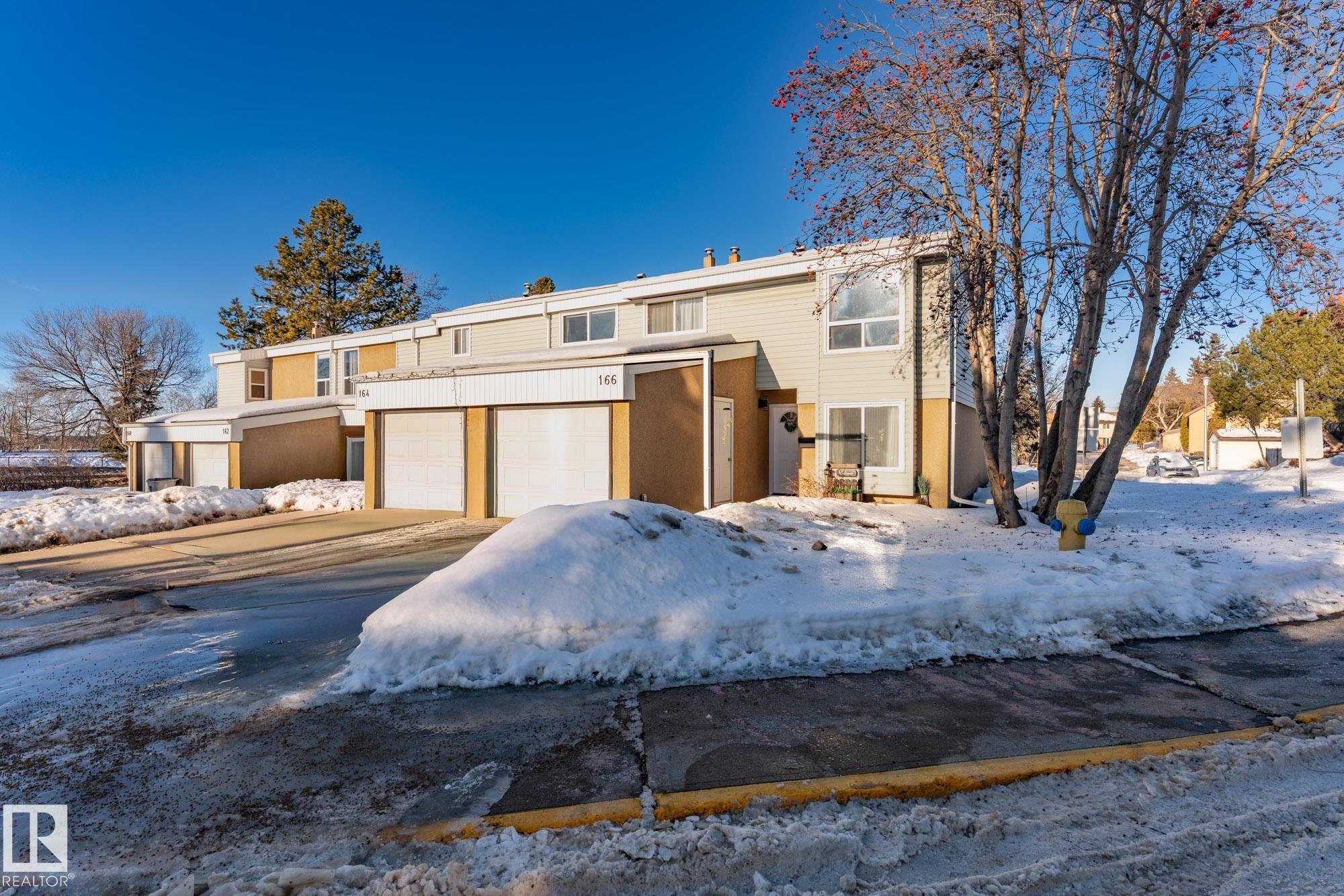 END UNIT in desirable Grandin! This beautifully updated home offers 4 bedrooms, 1.5 baths, and a fully finished basement. Bright open layout with updated lighting, fresh paint, newer appliances, and new carpet on stairs and landing. Enjoy a private fenced yard with painted deck and new gazebo backing onto trees and community gardens. Major upgrades include 100 amp electrical service, updated wiring, new washer & dryer, and bathroom improvements. Condo association upgrades include new eavestroughs, downspouts, and reinstalled windows. Attached garage. Only 2 minutes to the Henday!