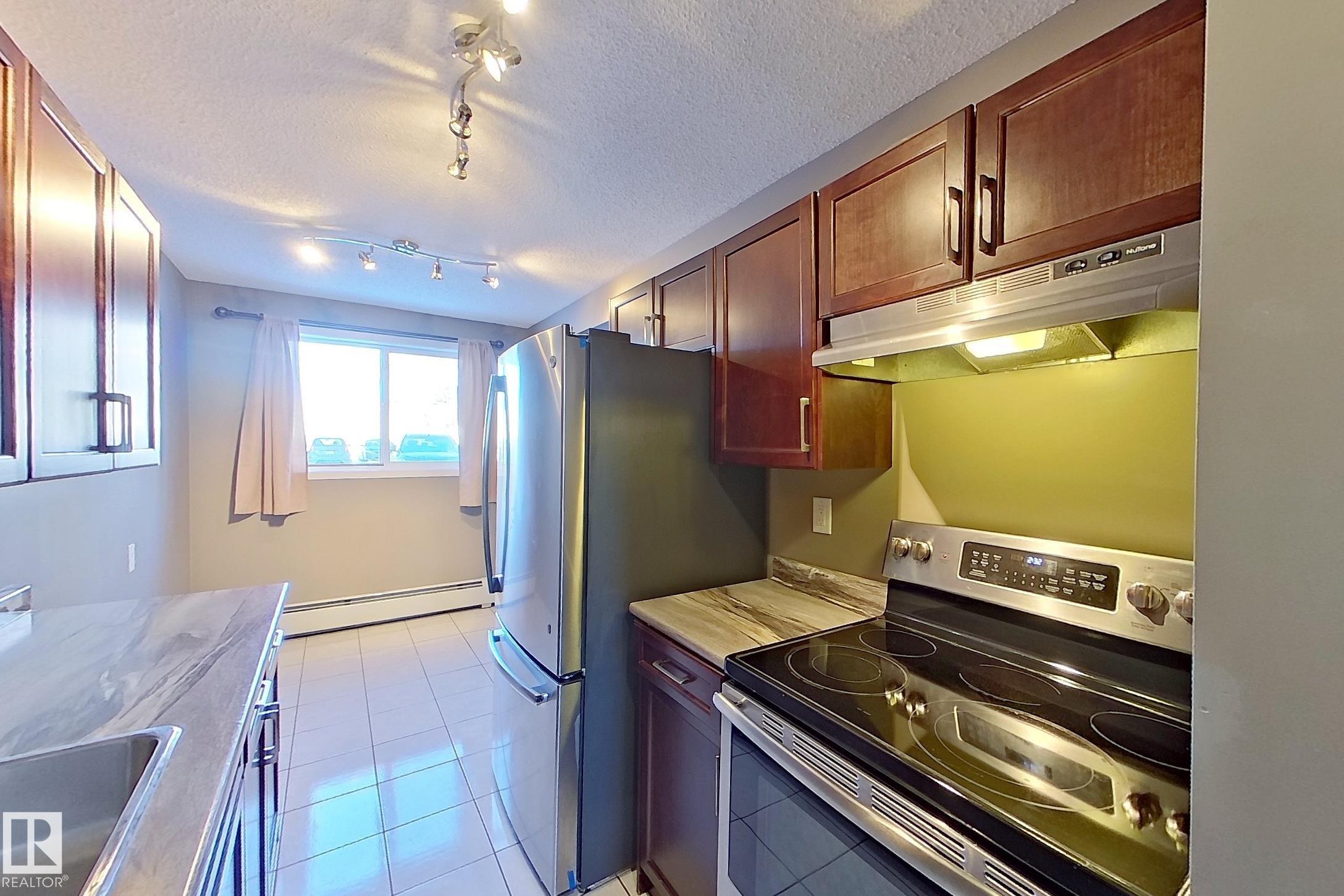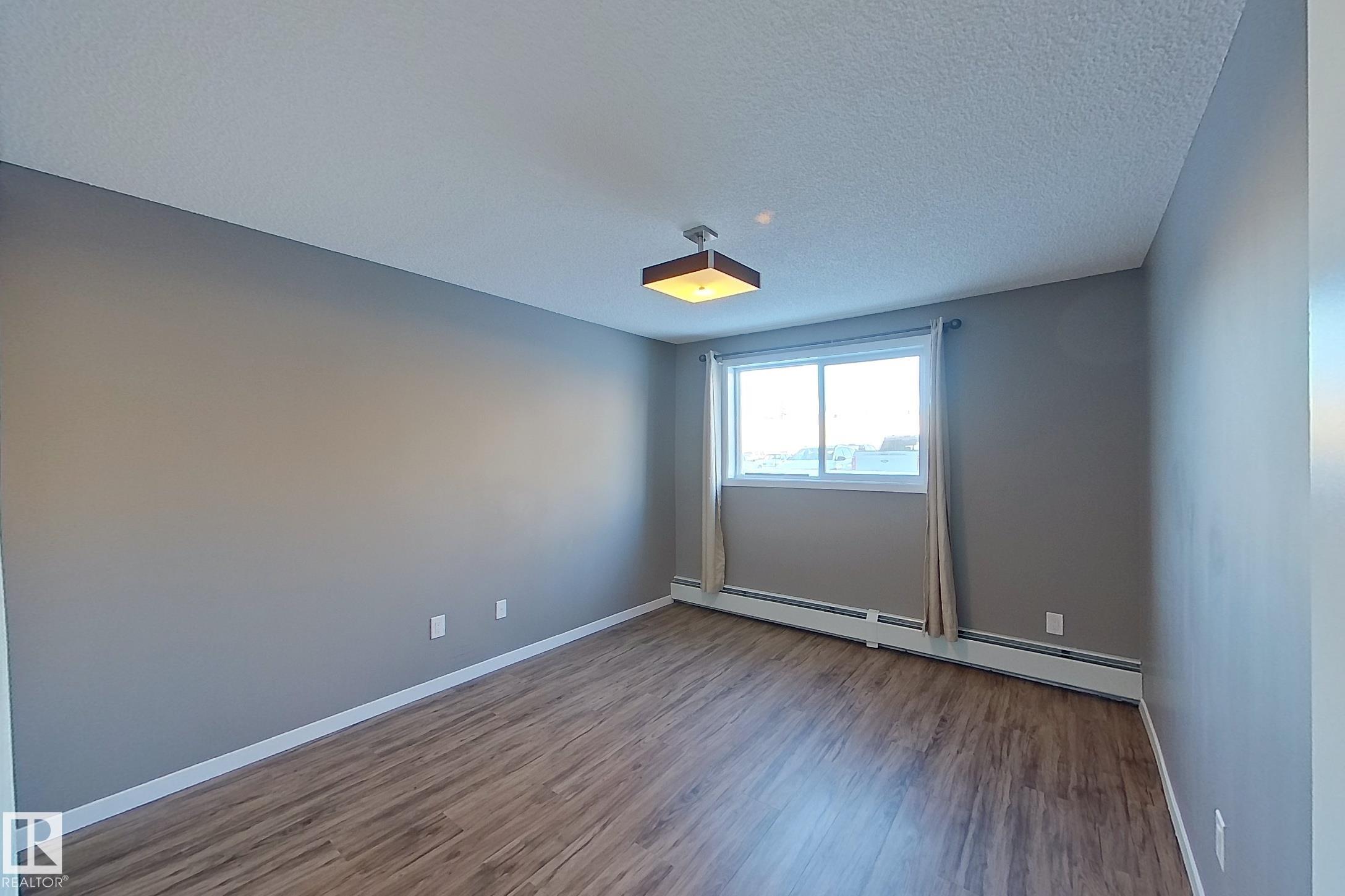 MOVE-IN READY. CONDO FEES INCLUDE UTILITIES! Heat, water & sewer, electricity, and a powered parking stall (#54). This spacious, modern two-bedroom main-floor unit has been tastefully renovated and features vinyl plank flooring, fresh paint, updated fixtures, a renovated 4-piece bathroom, newer appliances, and updated kitchen cabinetry and countertops. Enjoy the added convenience of main-floor living with patio door access, allowing you to easily walk groceries directly into the unit?no stairs or elevators required. The primary bedroom accommodates a king-size bed and includes a large closet with organizer. The unit also offers a dedicated storage room with space for dry goods and/or chest freezer, linen closet plus an additional storage cubby ideal for seasonal items. 2025 property taxes: $937.85. Card-operated laundry is located on the same floor. Conveniently located near shopping, Caernarvon Elementary School, Edmonton Islamic Academy, the YMCA, and the future LRT extension. Immediate possession!