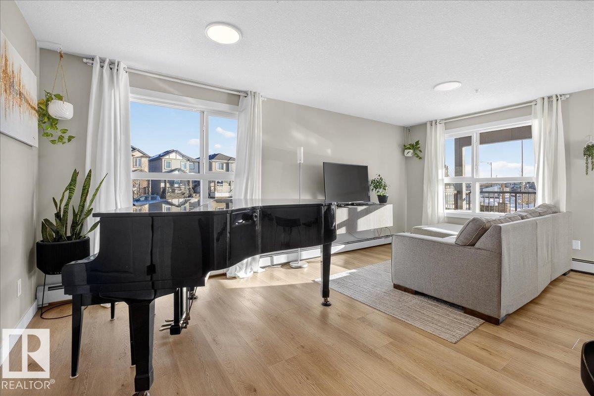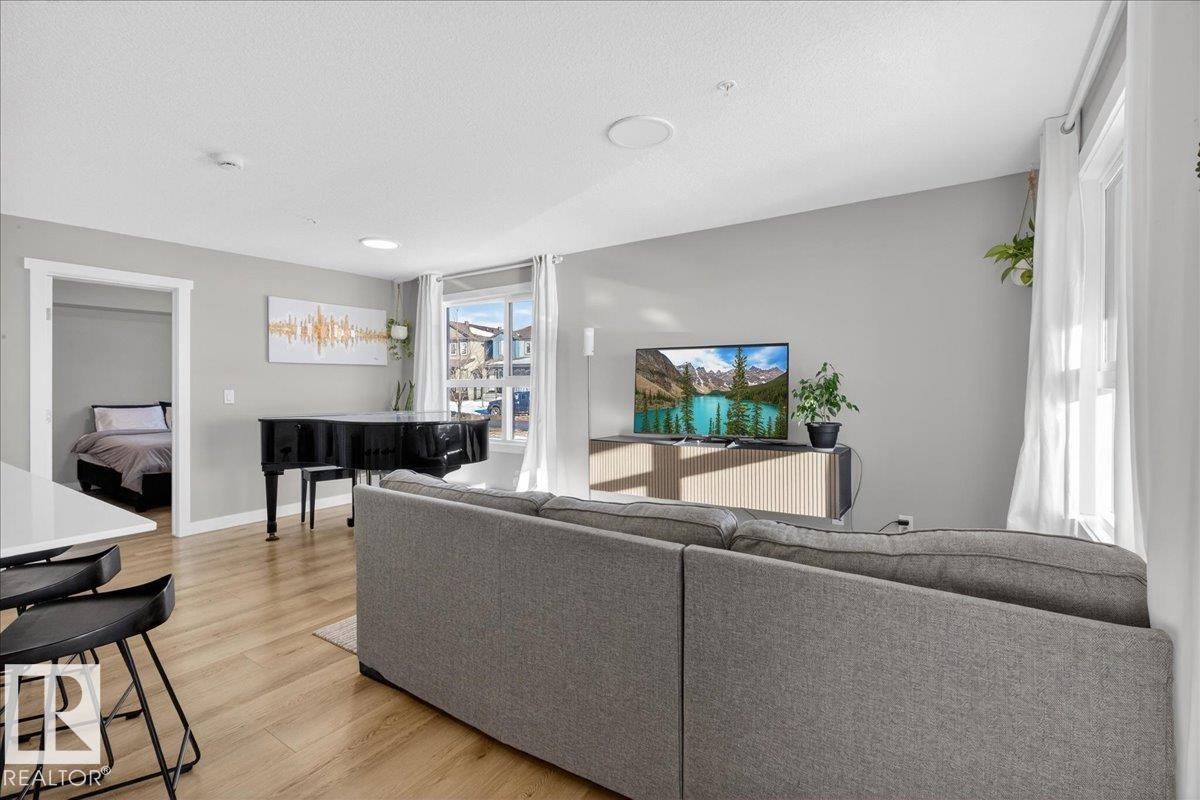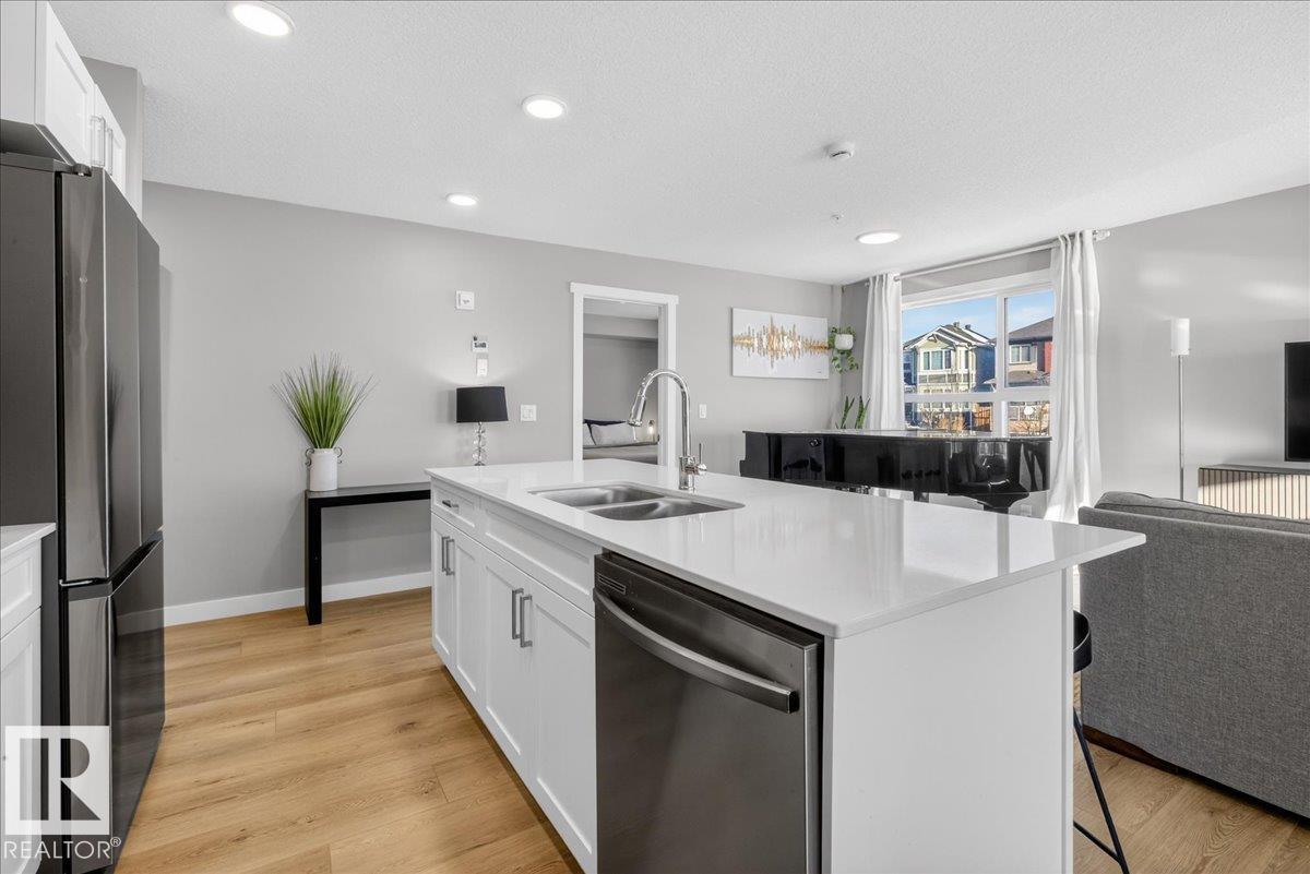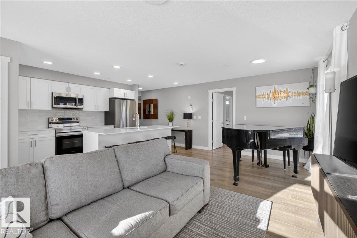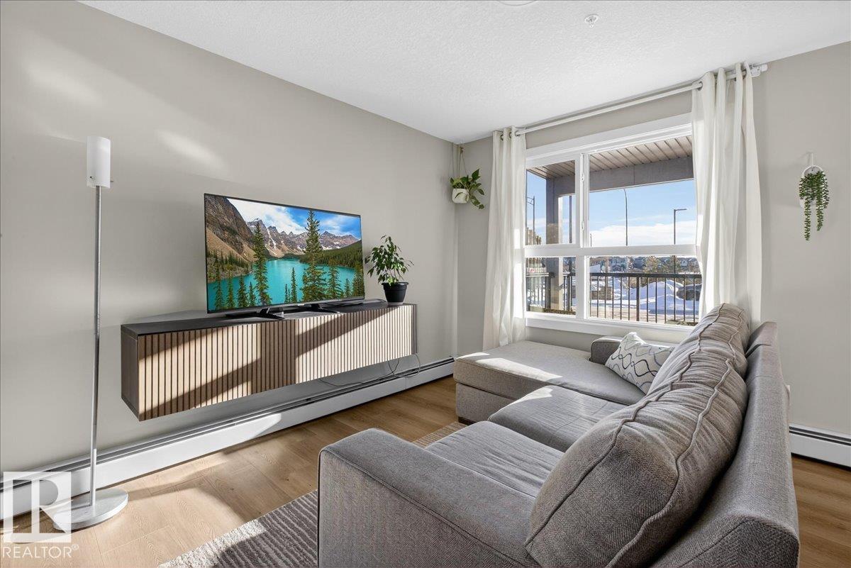Welcome to this stunning end-unit condo in Tamarack, featuring 2 spacious bedrooms, 2 full bathrooms, and an open concept layout filled with natural light from large windows. Step out onto your private patio and enjoy relaxing with beautiful views. This home comes with 2 titled underground parking stalls and includes air conditioning, heat, and water for your convenience. The kitchen boasts modern finishes, ample cabinet space, and a functional layout perfect for everyday living. Ideally located, you are within walking distance to FreshCo, Tim Hortons, Meadows Recreation Centre, library, and scenic walking trails, making it easy to enjoy both amenities and outdoor activities. Perfect for first-time buyers, downsizers, or anyone looking for a low maintenance, move-in ready home with all the conveniences of urban living in a vibrant community.