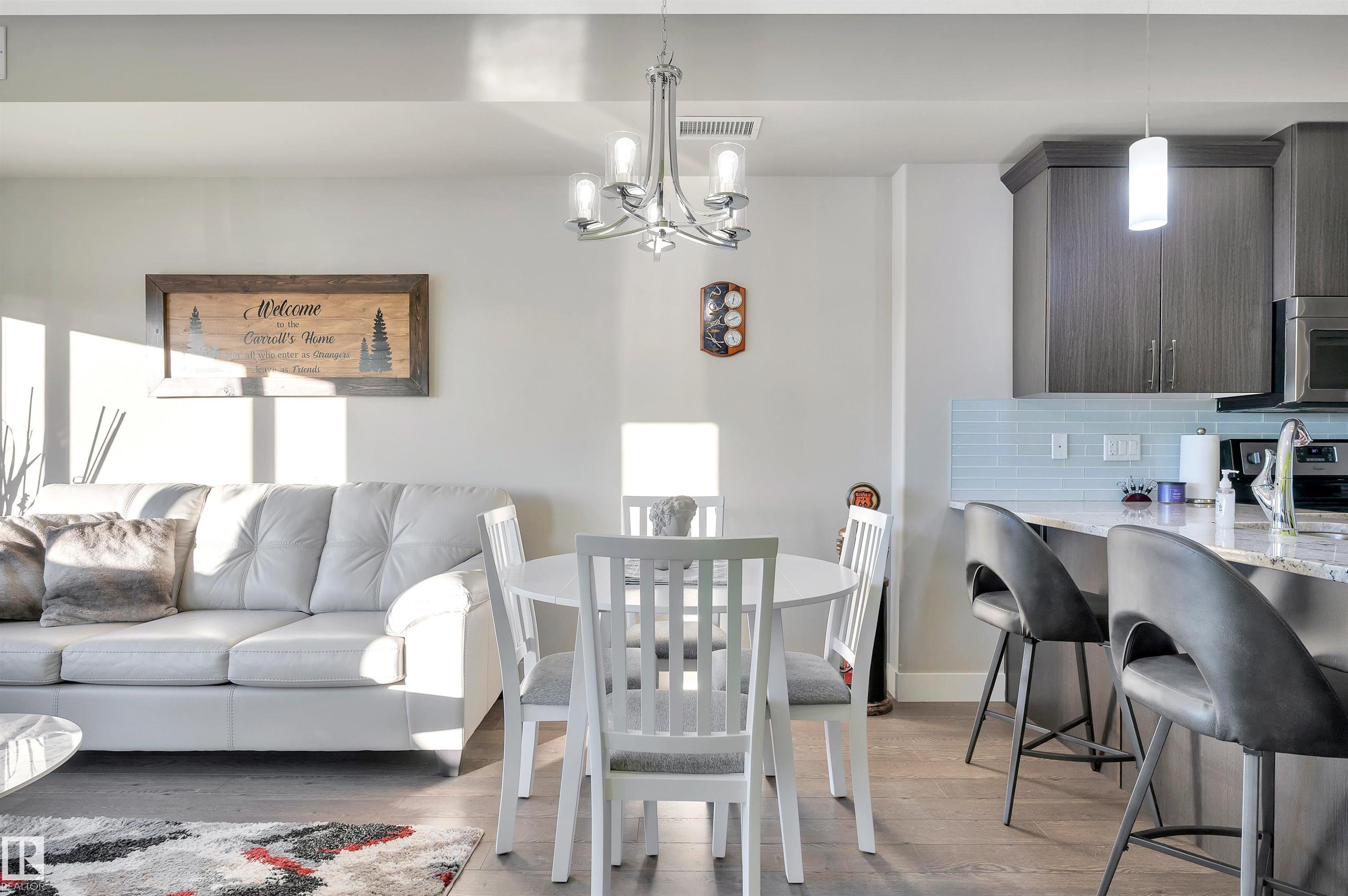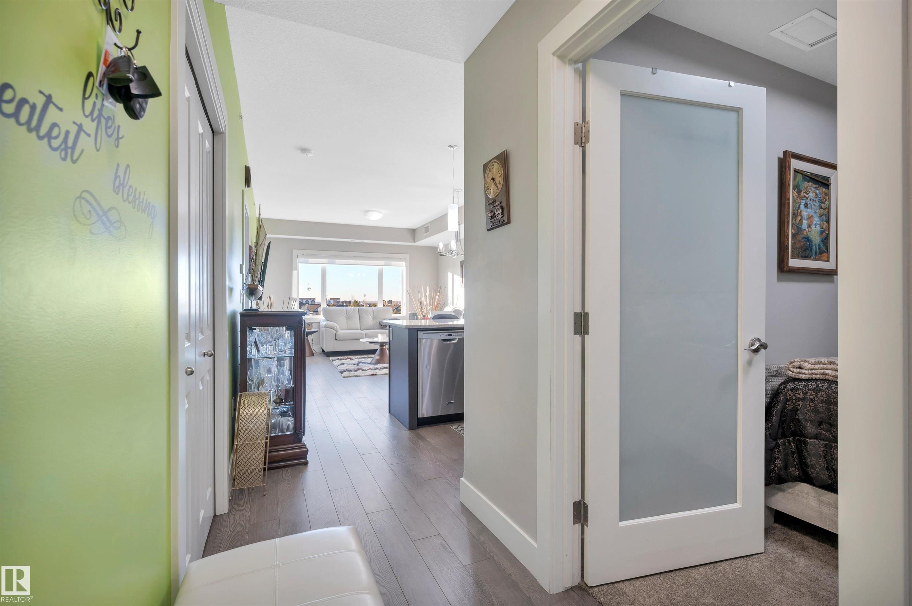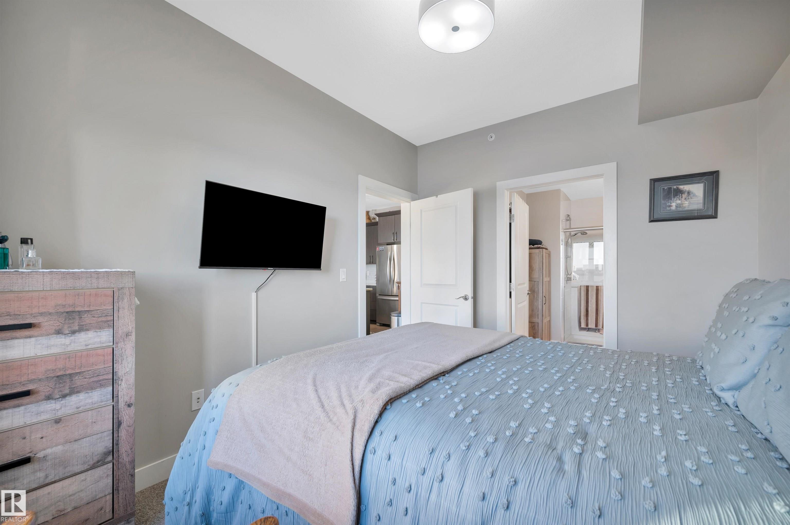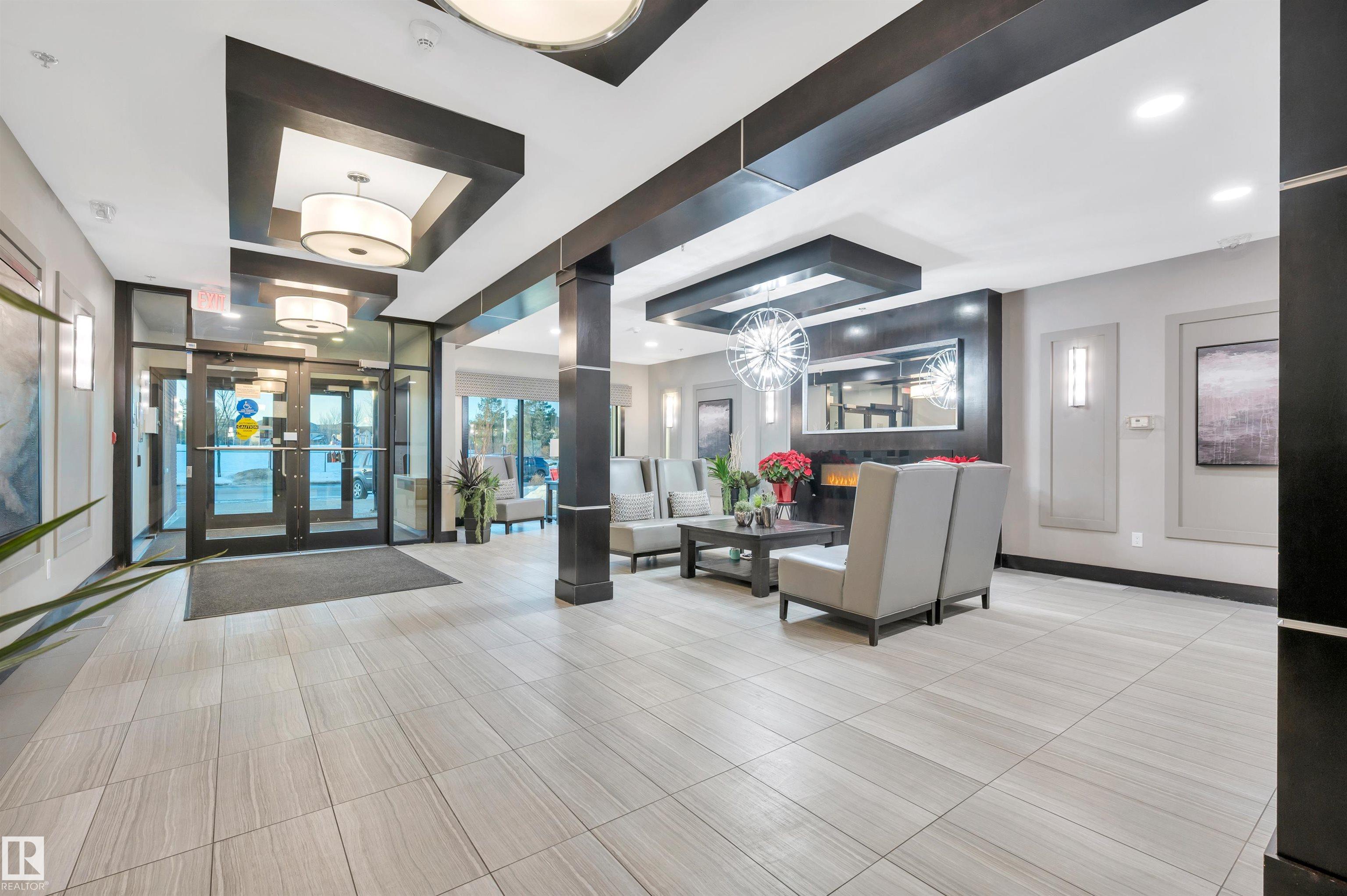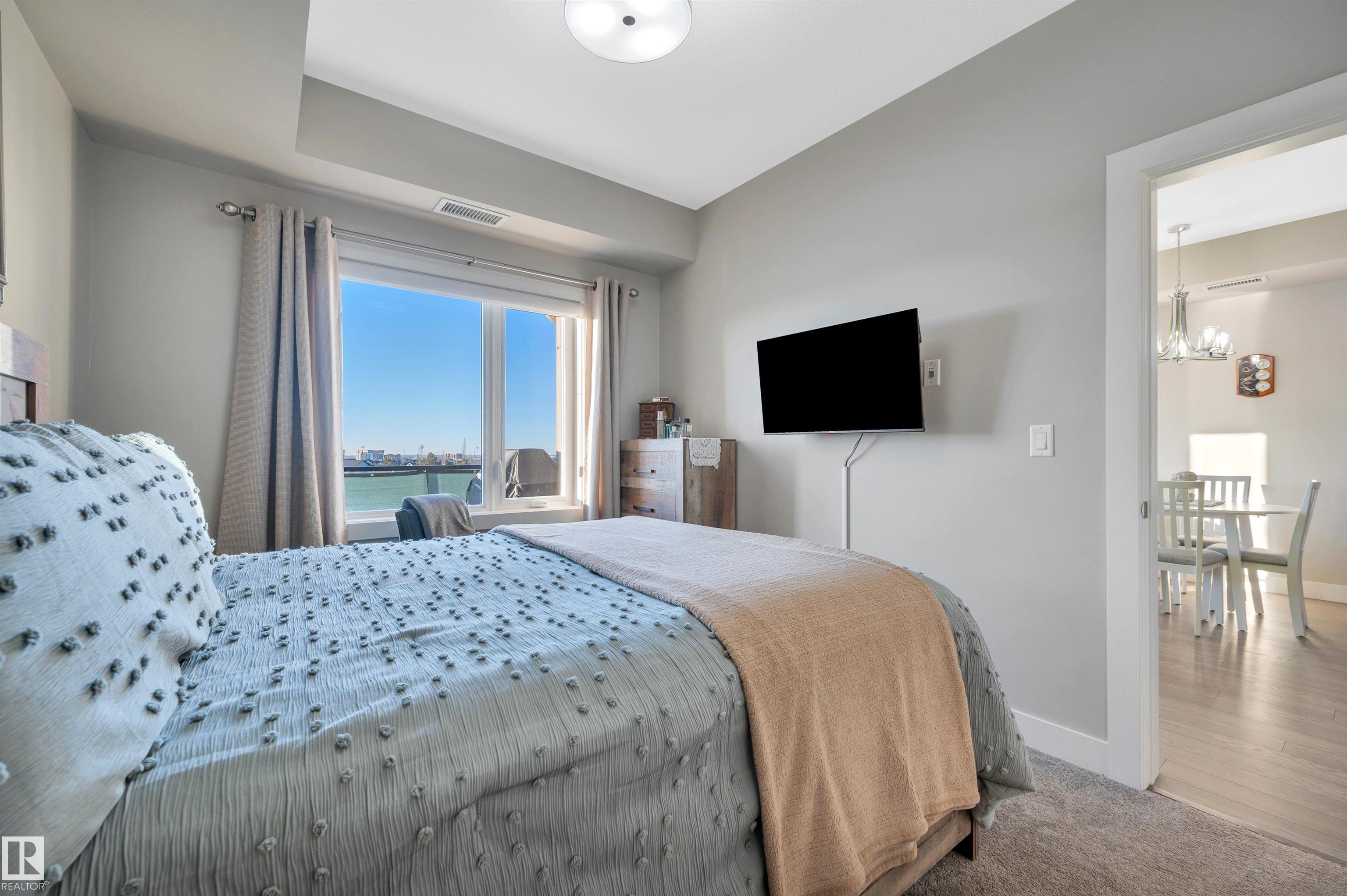 Welcome to this beautifully maintained top-floor condo offering comfort and convenience. Enjoy the covered patio overlooking Eton Park and green space?perfect for relaxing or entertaining. This air-conditioned unit features an open-concept layout with laminate flooring, one spacious bedroom, and a versatile den. The primary bedroom includes a 3-piece ensuite, while a 2-piece powder room houses in-suite front-load laundry, furnace, and A/C behind sliding doors. The modern kitchen offers granite countertops, stainless steel appliances, and an 8? peninsula island. The bright living room opens to a west-facing balcony with gas hookup. Building amenities include a fitness room and guest suite. One heated underground parking stall (#1) with storage cage (S47) is included. Condo fees cover all utilities except power and communications. Ideally located steps from walking trails, Emerald Hills Shopping Plaza, and the hospital?this is a must-see!